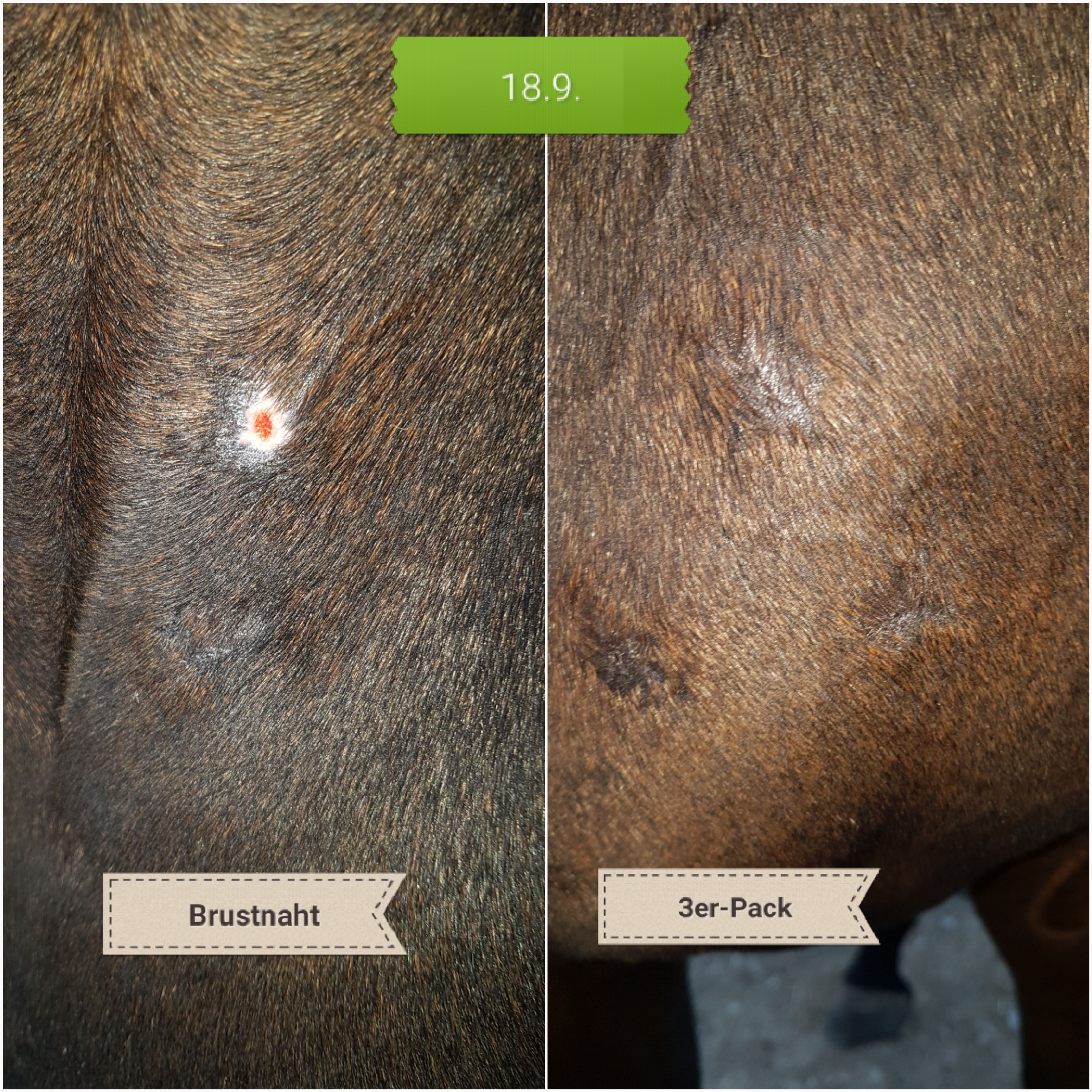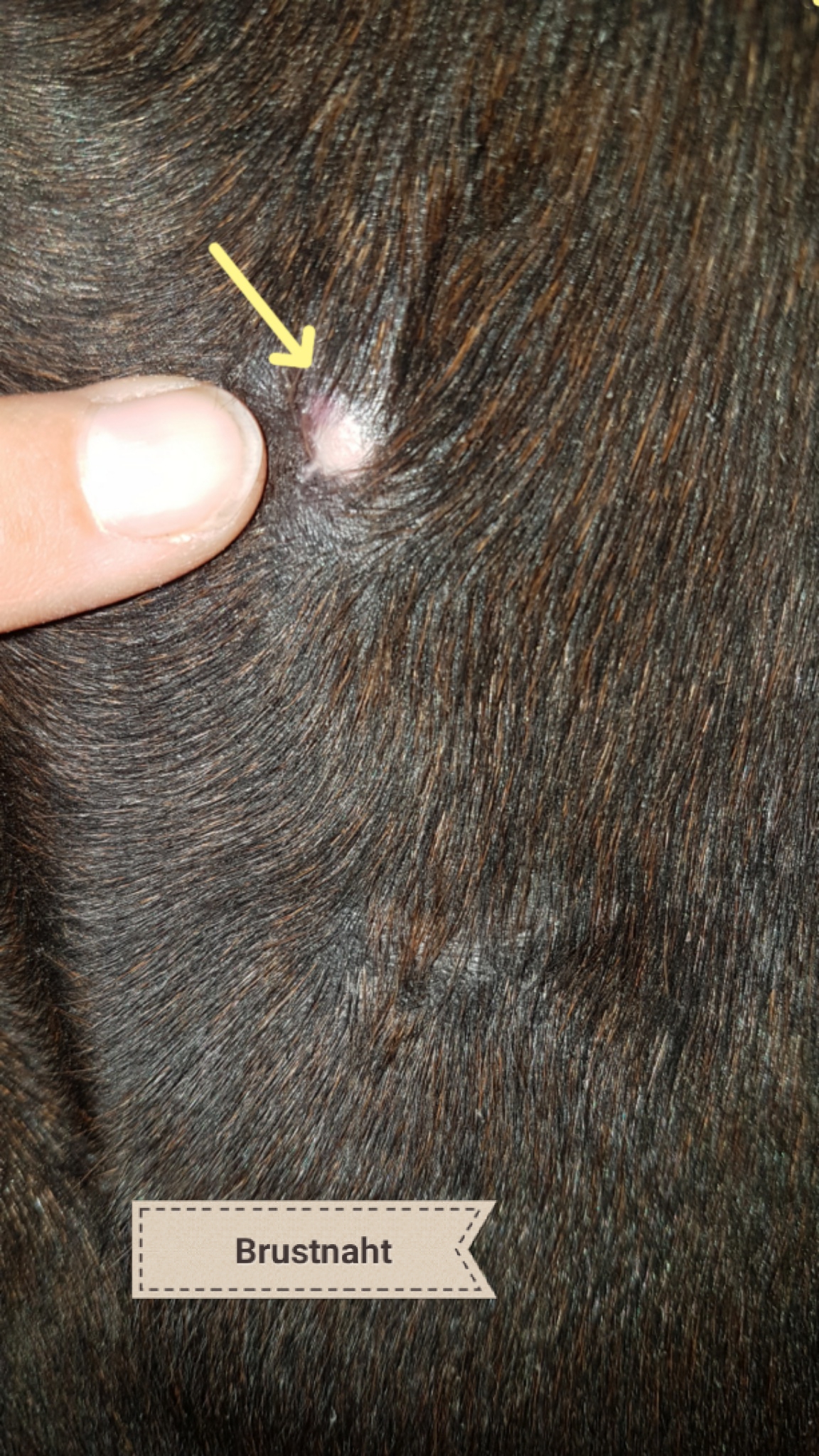 Brust: die rote Stelle ist wirklich nur noch winzig klein, war heute aber etwas erhaben. Habe noch nicht geschmiert, warte zu, was passiert. Wenn ich mir ansehe, wie es vor 10 Tagen ausgesehen hat... puh!