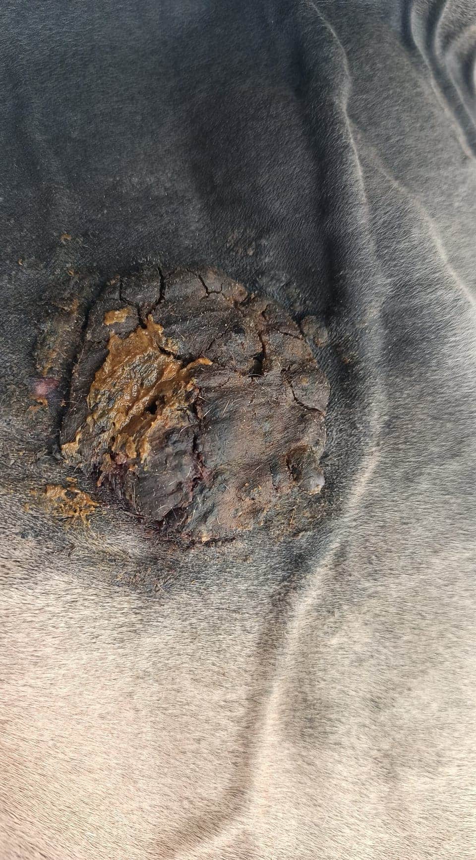 Sarkoid 1: Pause. Nicht schmieren bis die Kruste abfällt. Dann sofort weiter, aber verdünnt (1:2). Bitte unbedingt ein Foto machen, bevor Du schmierst, wenn die Kruste ab ist, damit wir einschätzen können, ob gesunde Haut darunter liegt oder wie es aussieht.