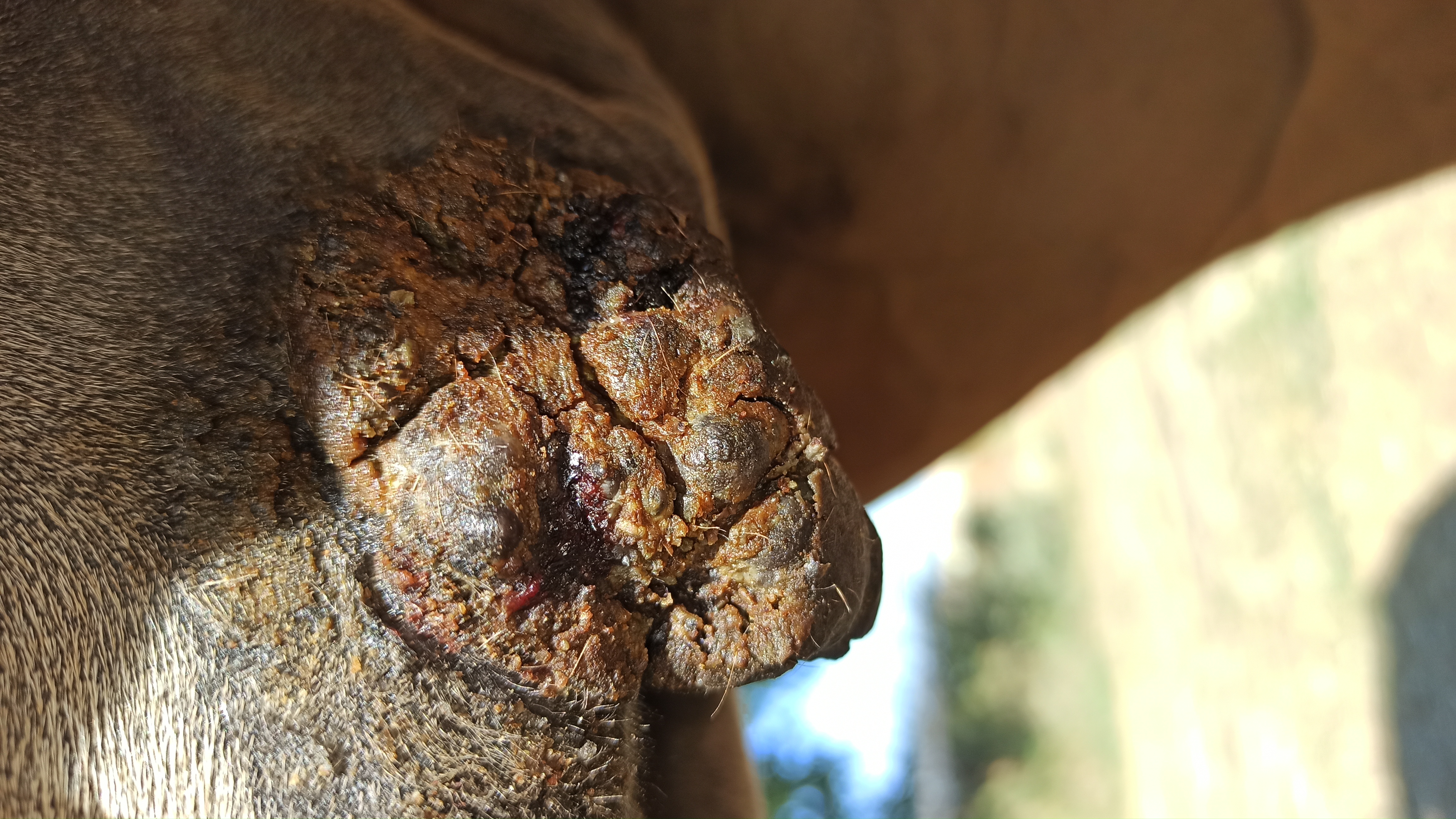 Das Sarkoid 1 ist angeschwollen und hat eine Kruste. was soll ich machen.