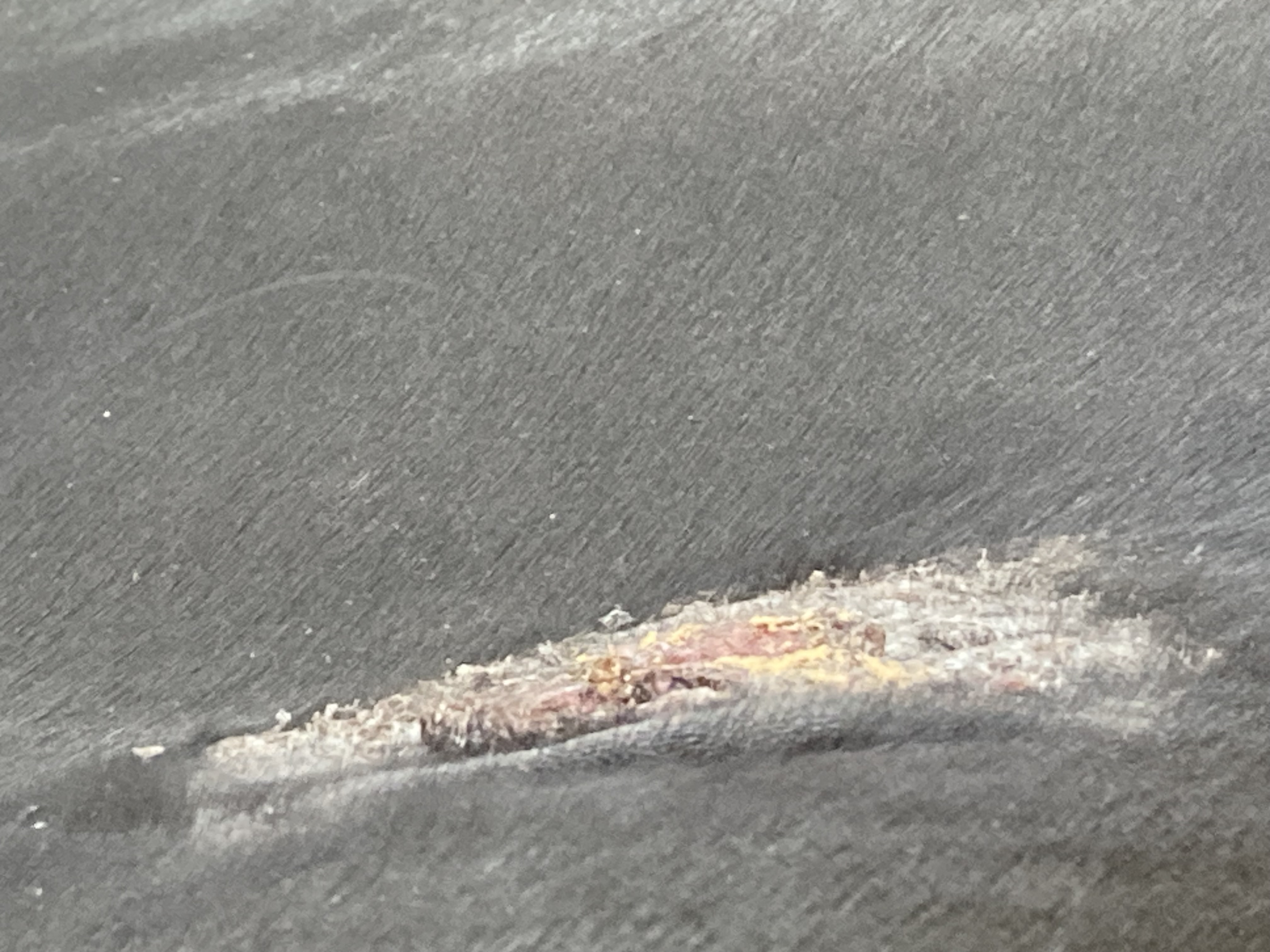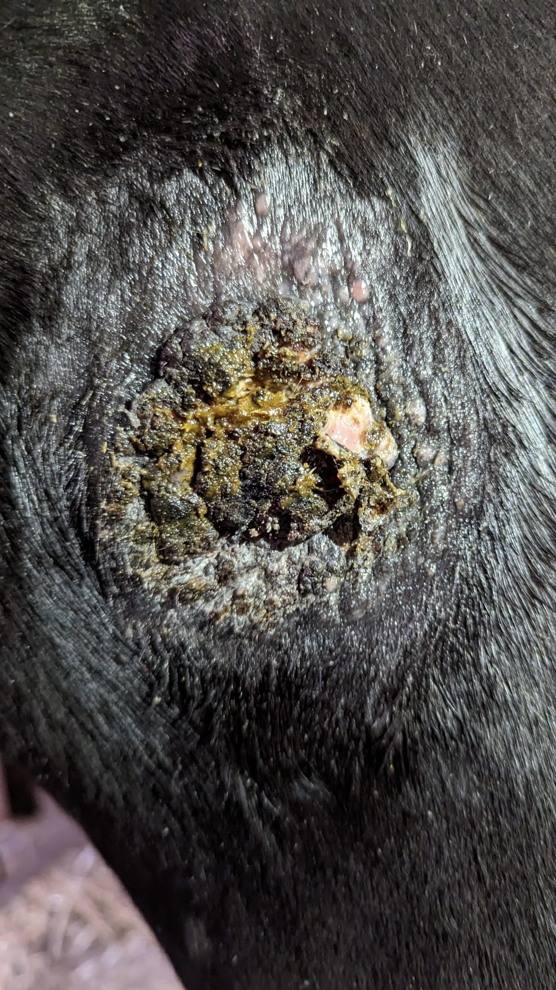 Ja, es ist eine Kruste. Gestern sah es noch ganz anders aus. Keine dicke Kruste sondern eine rot-braune Kruste die in der Mitte eingefallen war und die Ränder waren etwas erhaben. Hätte ich man ein Foto gemacht 🙈.
