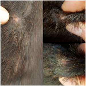 An der Achsel sprießen mehr und mehr Haare und in der Gurtlage ist auch nur noch ne kleine Ecke schuppig. Das ist im Moment das einzige Sarkoid, was noch CompX abbekommt. Hier habe ich das Gefühl, dass es immer kleiner wird. Beim Rest warte ich, in welche Richtung es sich entwickelt.