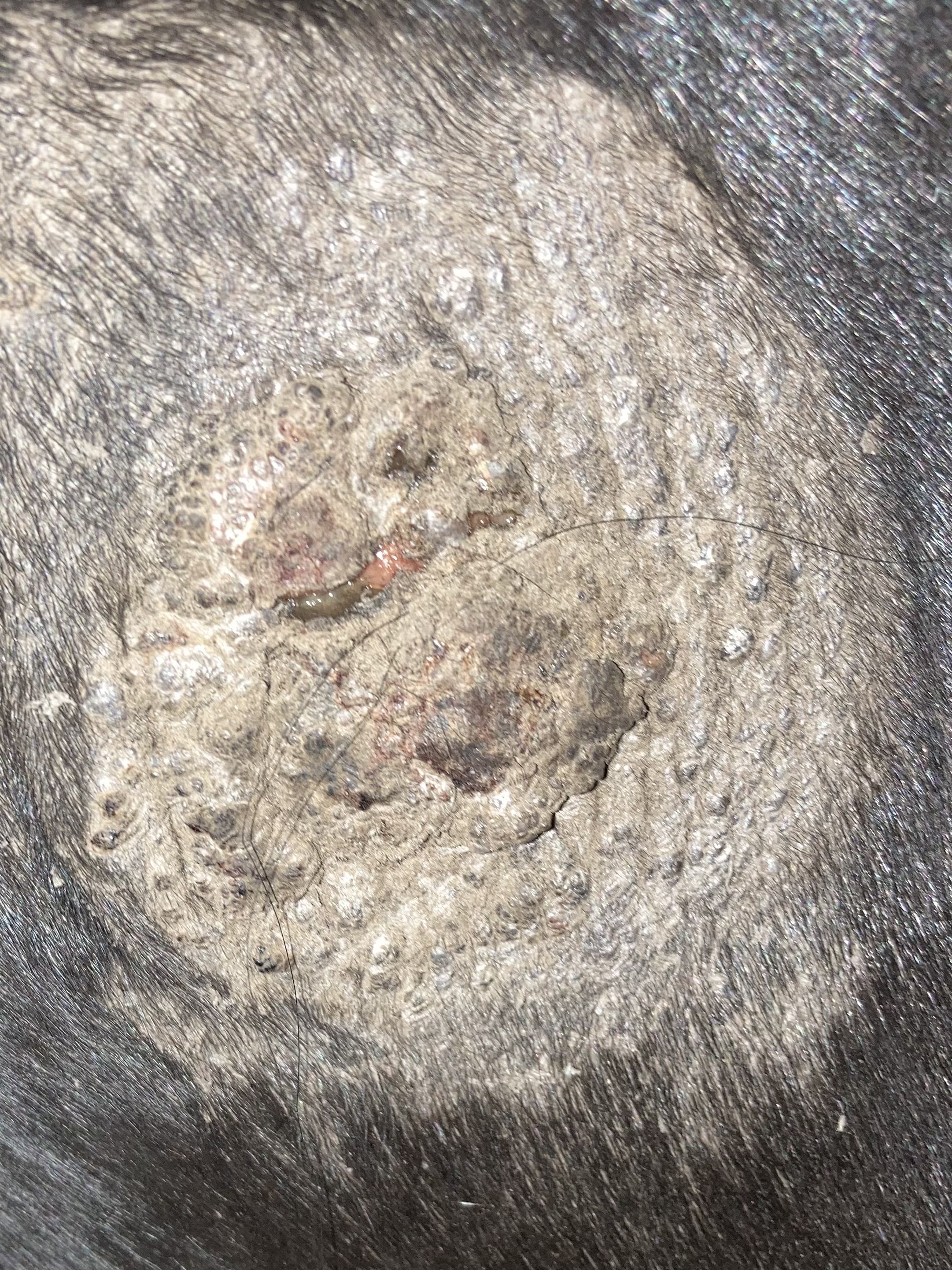 Moin ihr Lieben. Rat befolgt und anbei ein Foto von heute Mittag. Die Kruste fällt langsam ab ohne dass sie gekratzt hat. Wie soll ich jetzt weiter?