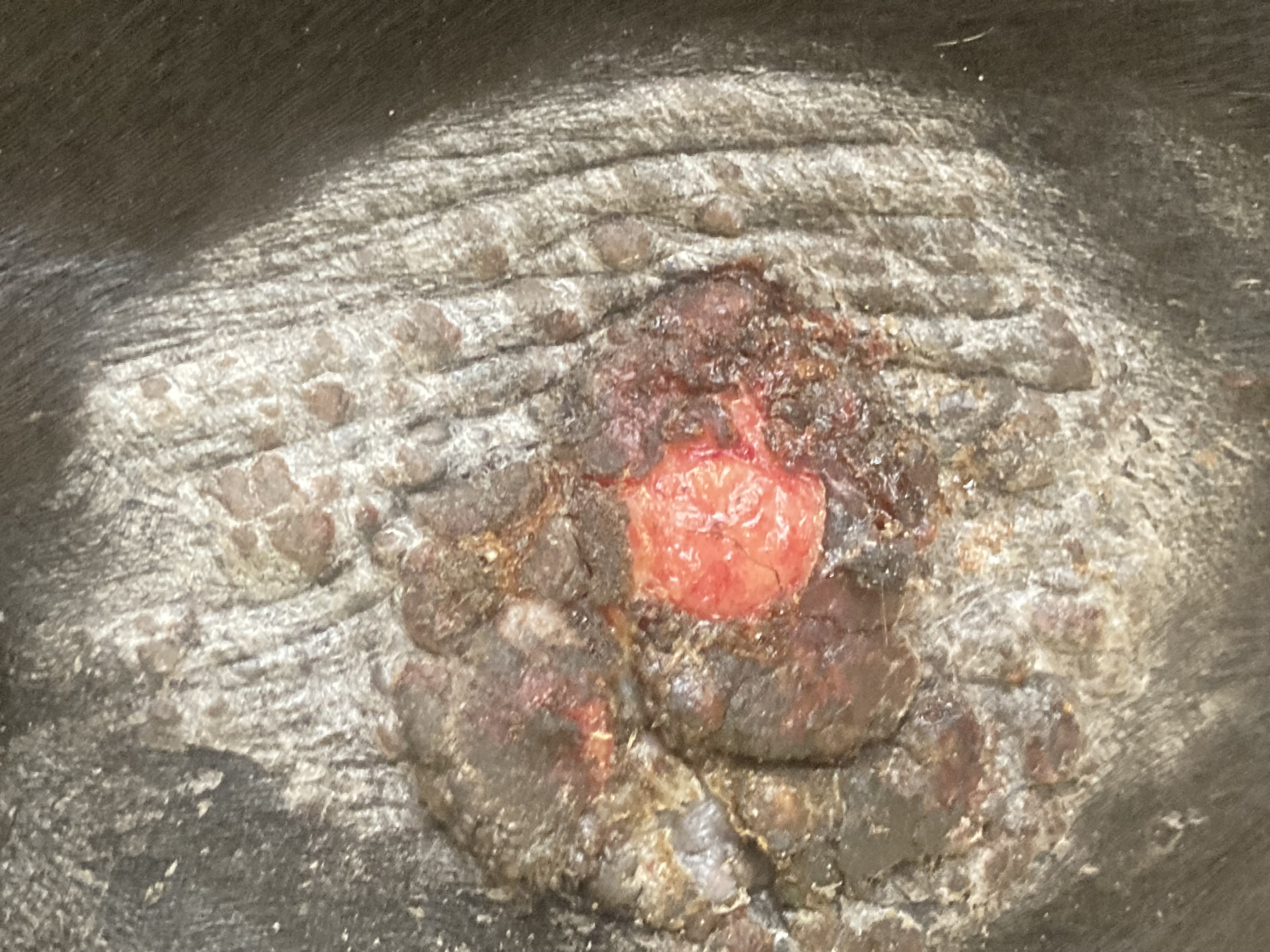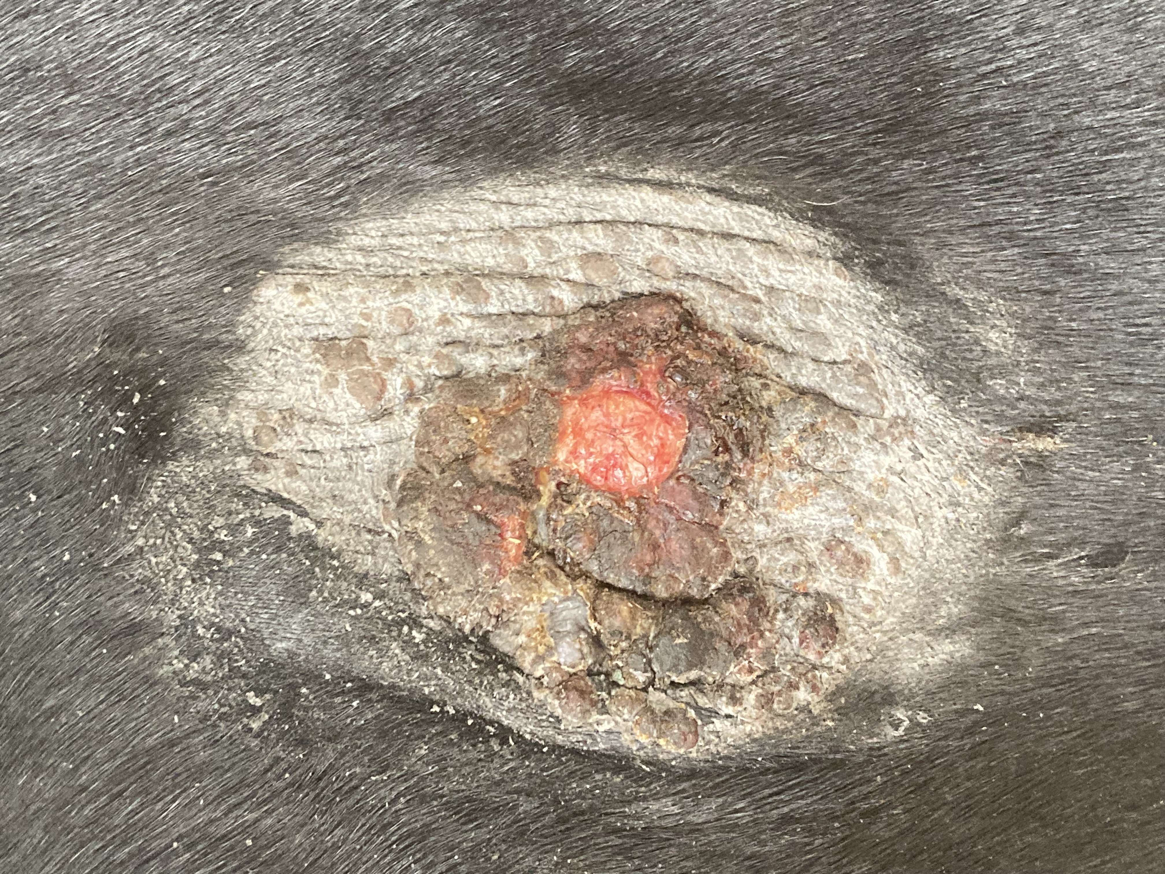 Moin. Anbei ein aktuelles Foto von heute. Habe die letzten 2 Tage 1:2 geschmiert und heute bin ich 1x vorsichtig mit 1:4 komplett drüber gegangen. Wollte erst noch einen weiteren Tag mit 1:2 aber ich finde da kommt gutes Heilfleisch durch und ich habe Angst, dass gesundes Gewebe zerstöre. Was meint ihr?