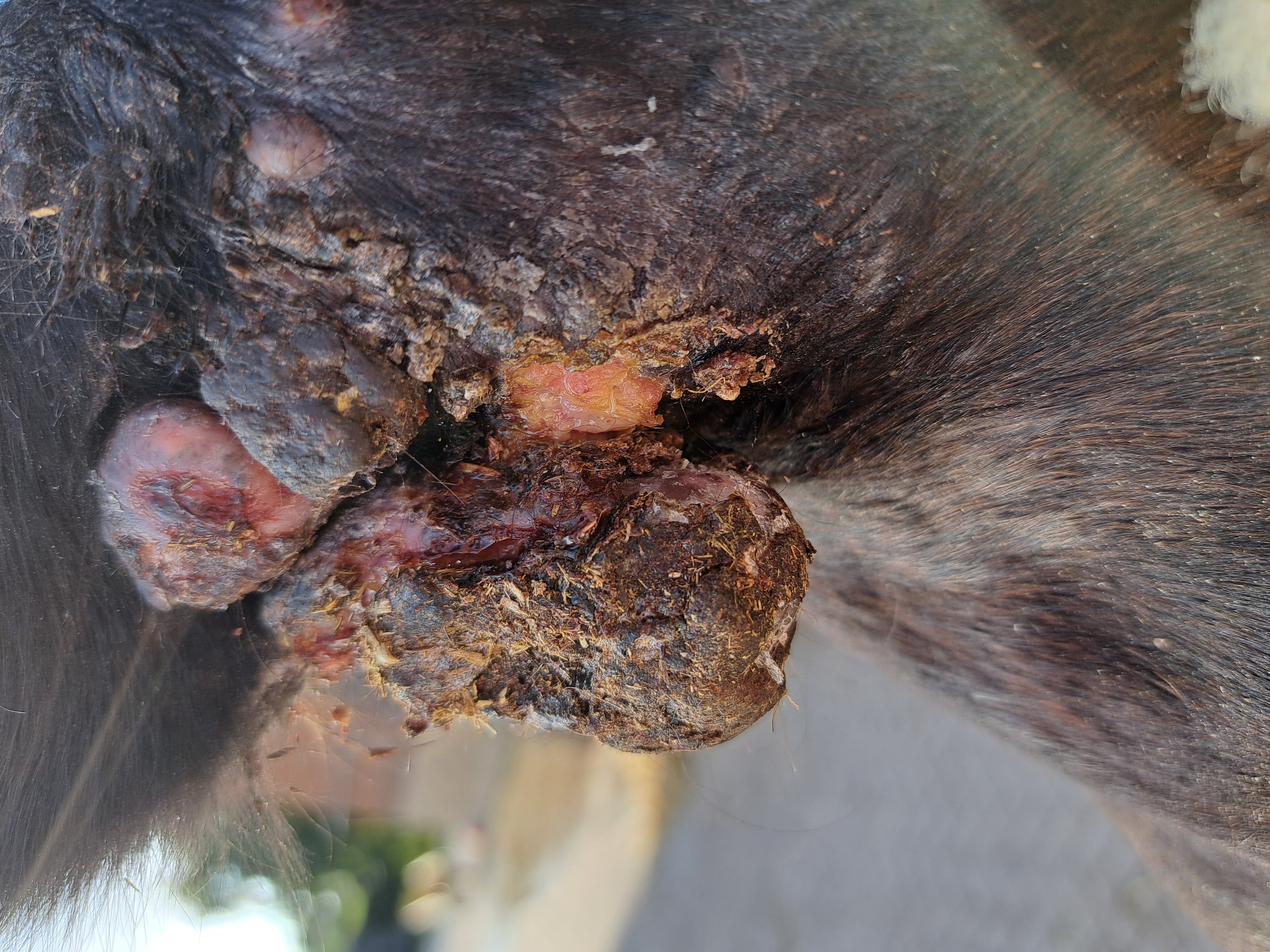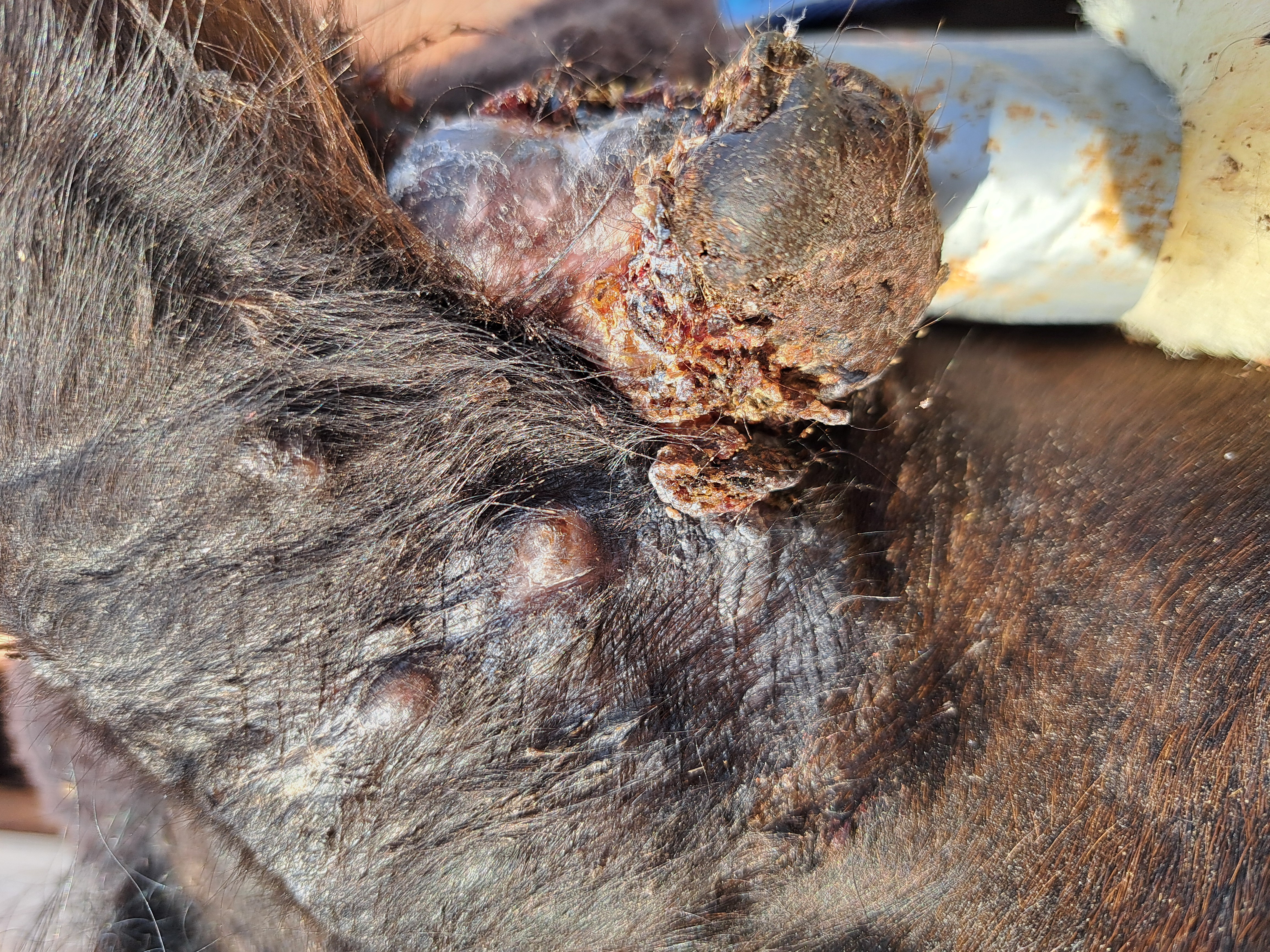 Am Ohr ist zumindest die Kruste ab, die Fotos sind aber ein paar Tage alt. Habe vergessen aktuelle zu machen...