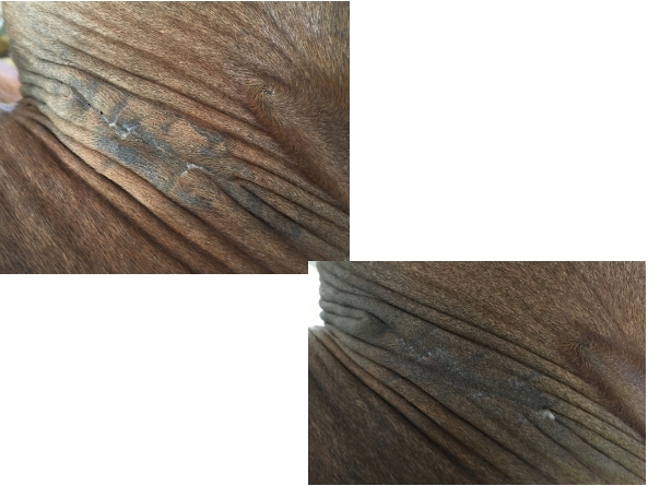Der TA hatte die Stelle geschoren, damit man im Winterfell besser sehen konnte und mit der Salbe besser auftragen konnte.