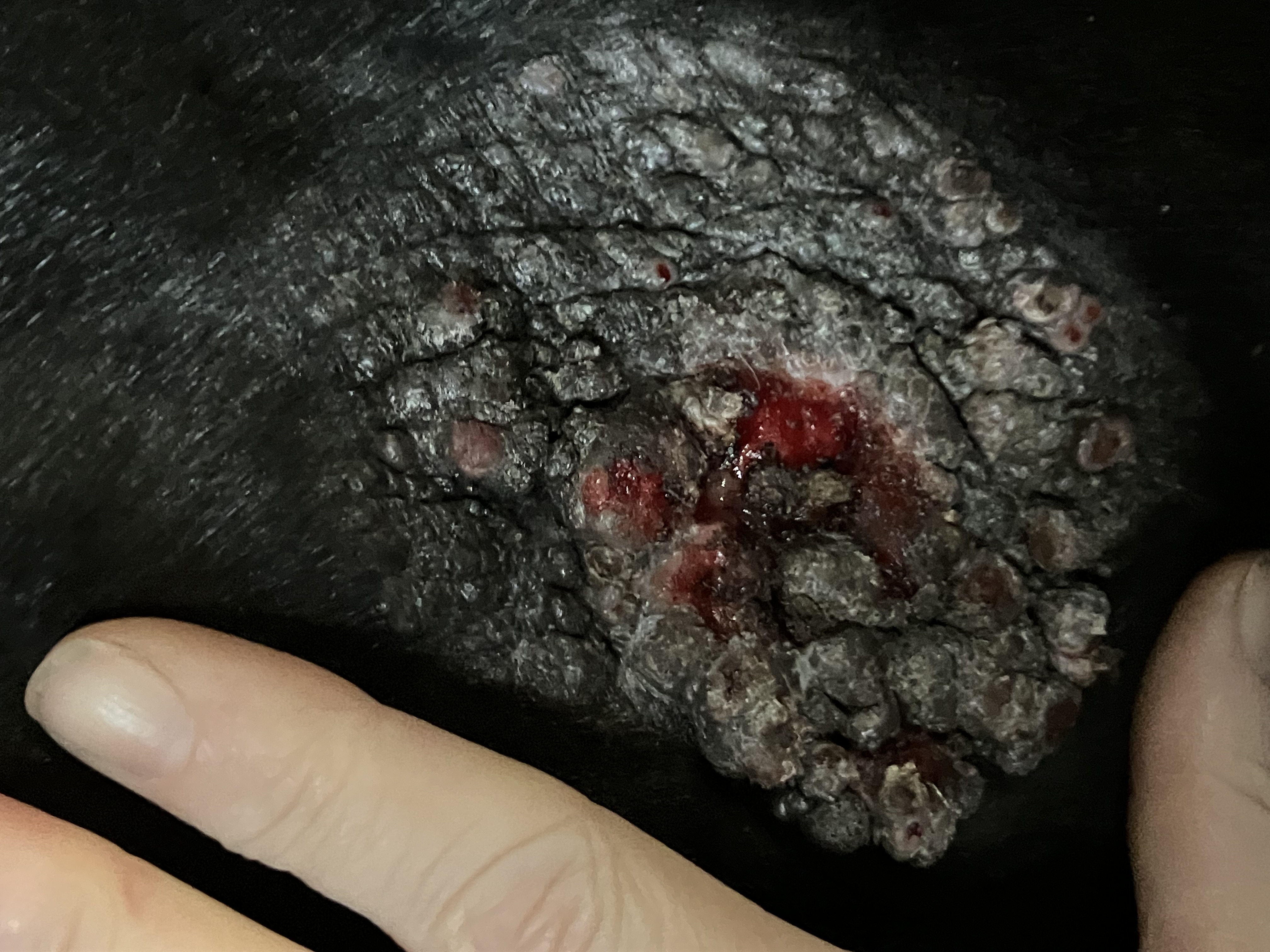 Hallo ihr Lieben. Gestern habe ich mal 1:2 aufgetragen und so schaut es heute aus. Die Kruste löst sich und es eitert, denke das ist doch gut oder?