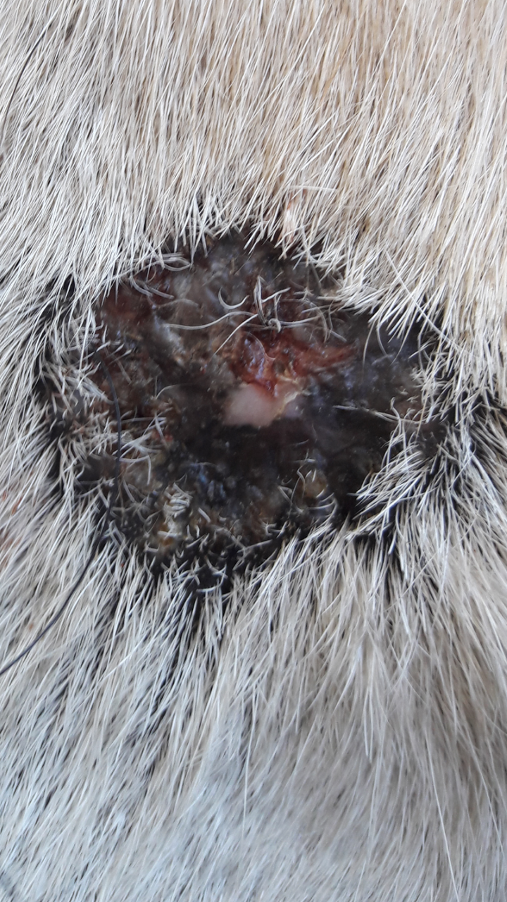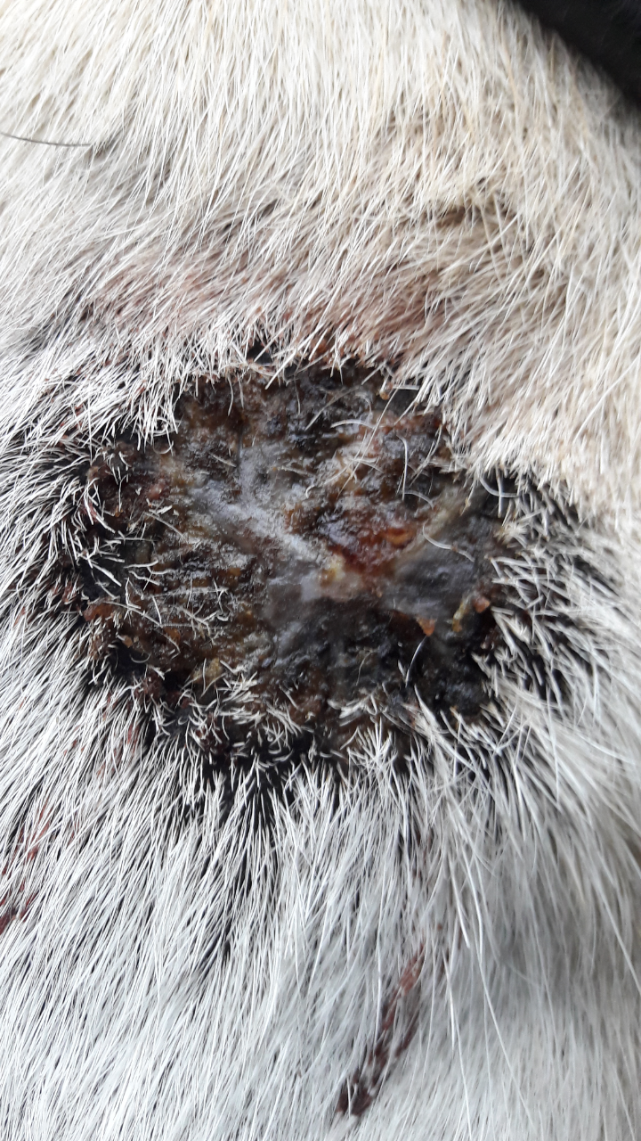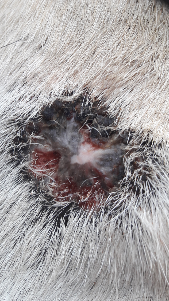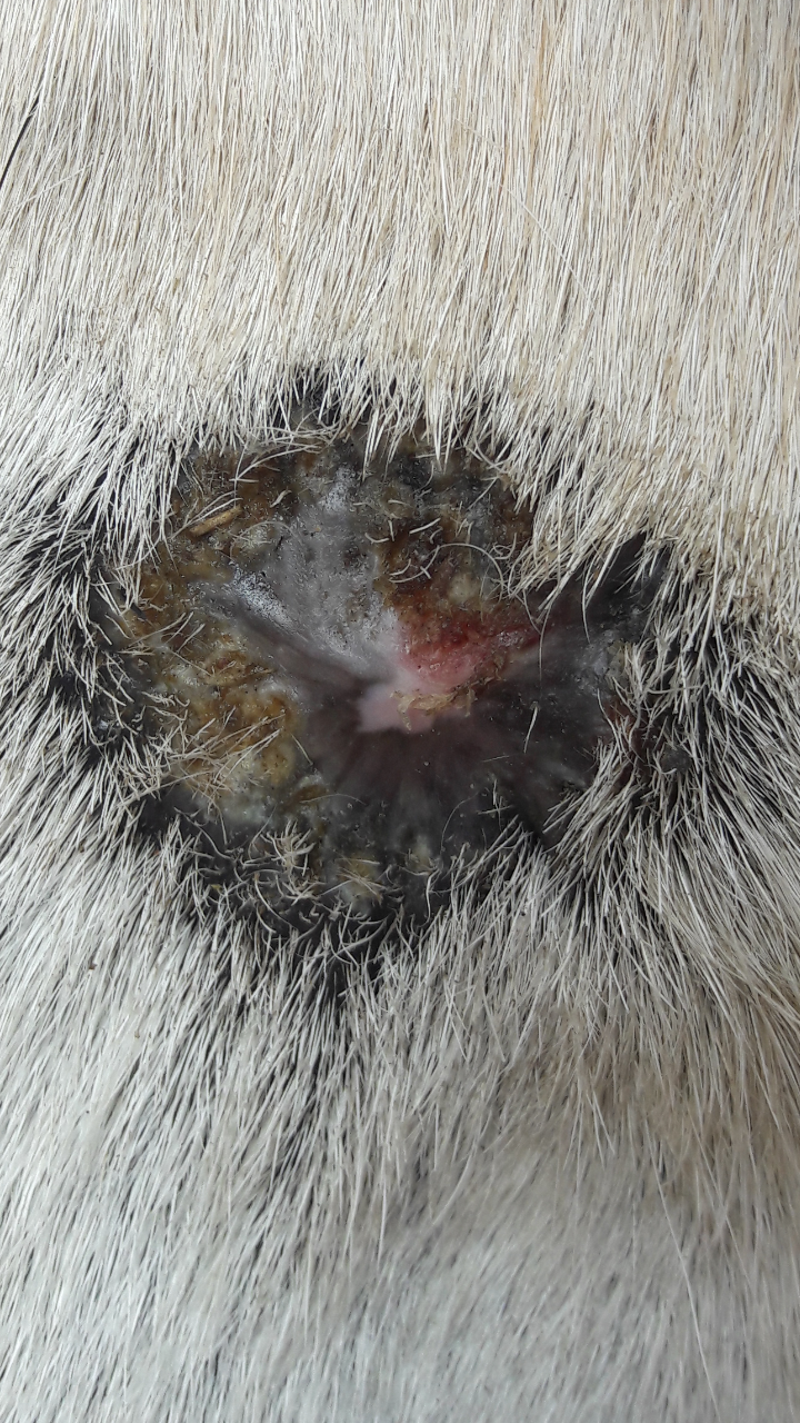 Als es bei uns so aussah habe ich einfach ganz normal weiter geschmiert. Ich bin davon ausgegangen das so ein Sarkoid ja nicht nur oberflächlich auf der Haut sitzt. War es zu offen und sichtlich unangenehm habe ich einfach etwas stärker verdünnt geschmiert.