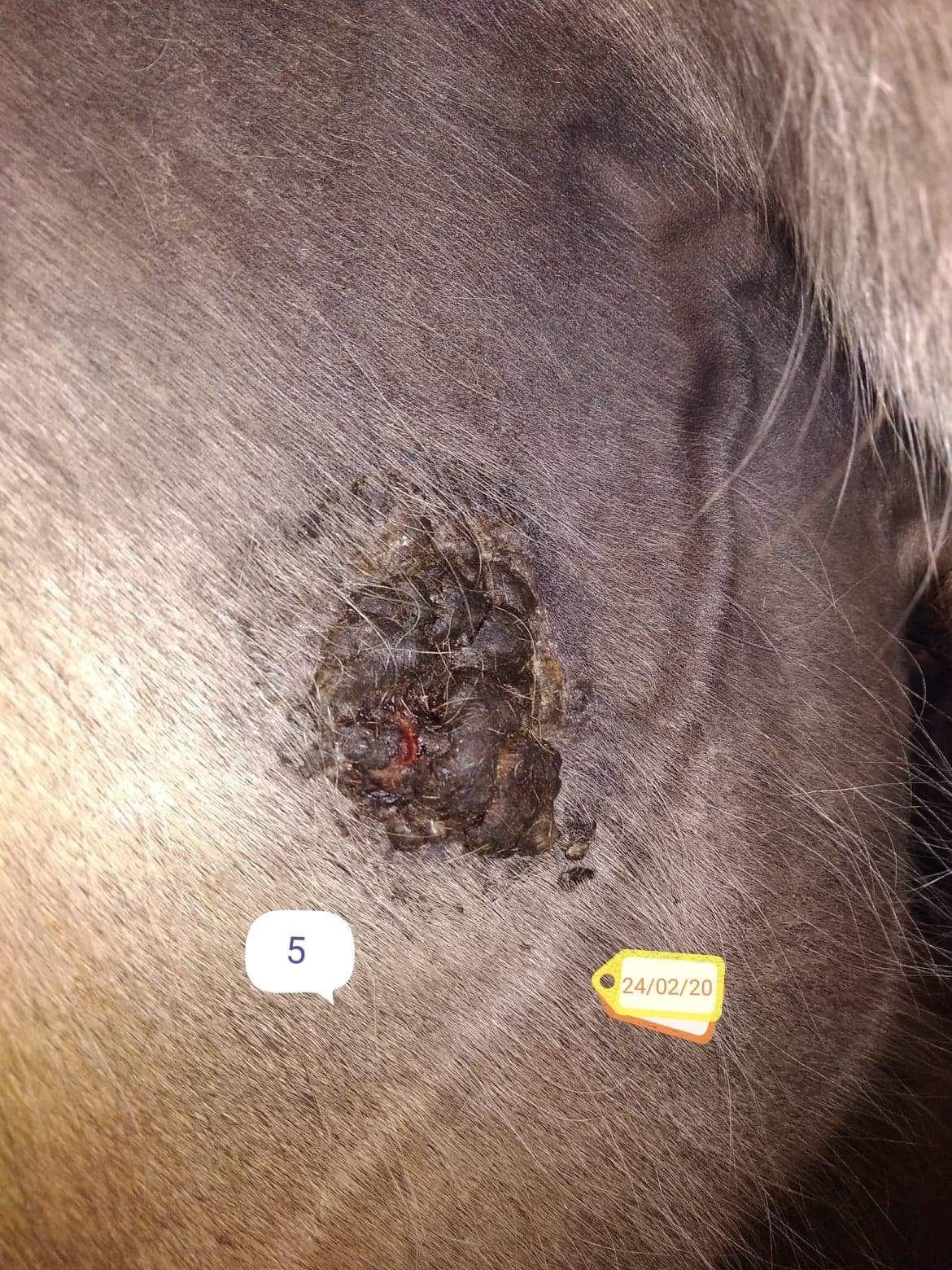 Dein Pferd hat die Sarkoide zum Teil seit 2017 und sie haben eine ziemliche Größe erreicht. Es wird daher schon eine Weile dauern bis hier große Fortschritte zu sehen sind. Im Winter ist die Reaktion auch oft langsamer. Die CompX zieht das Sarkoid "nach oben", es kann also auch so aussehen als ob das Sarkoid größer wird.