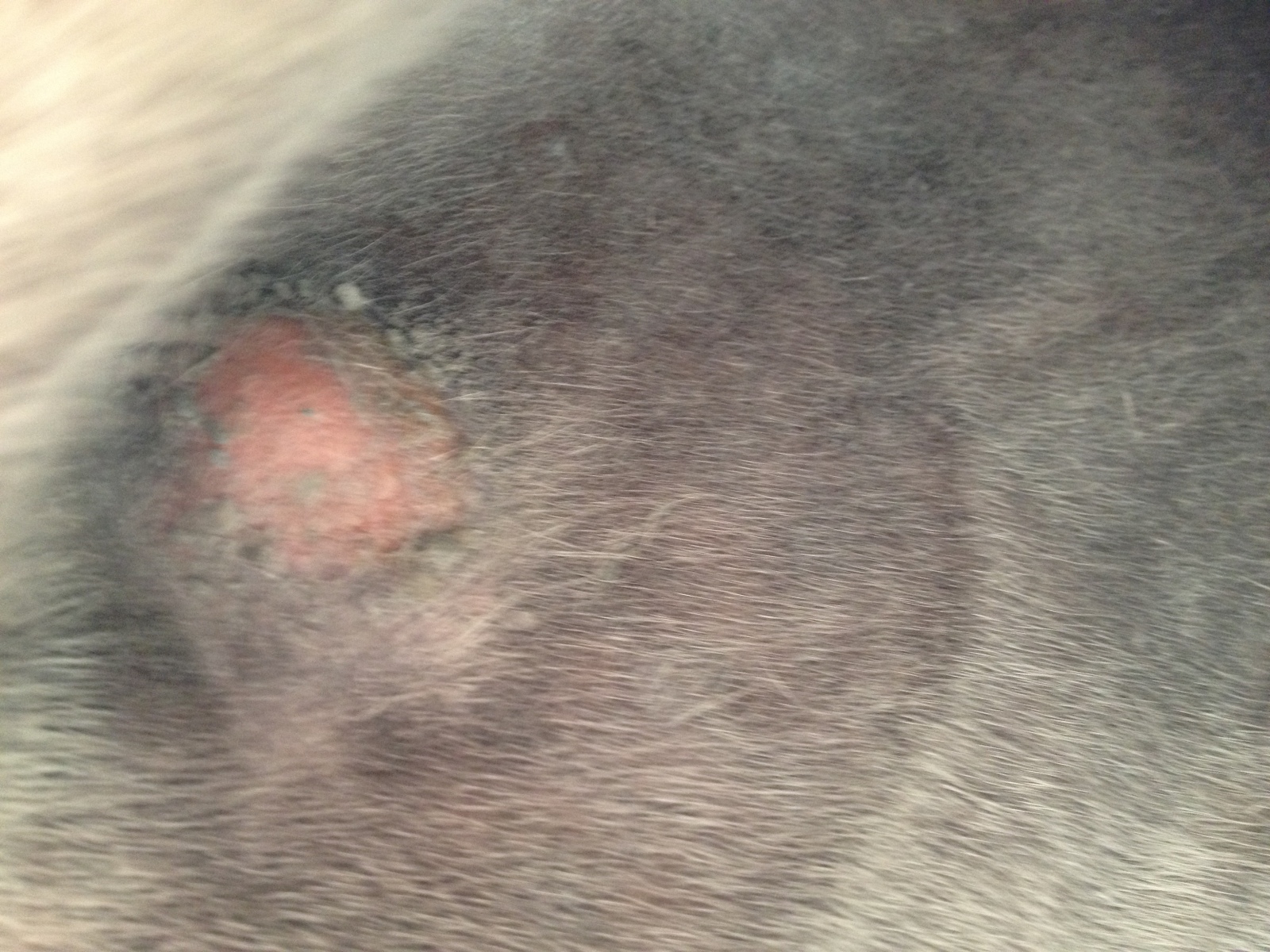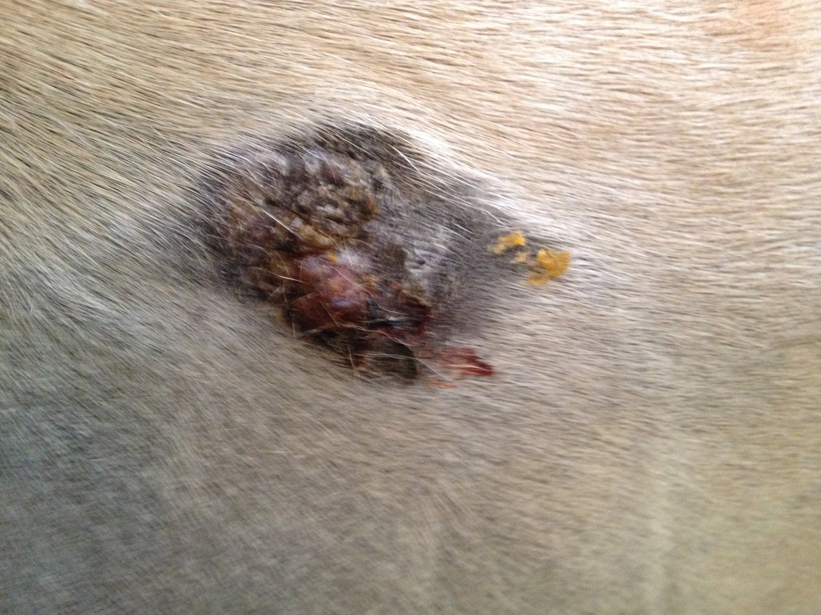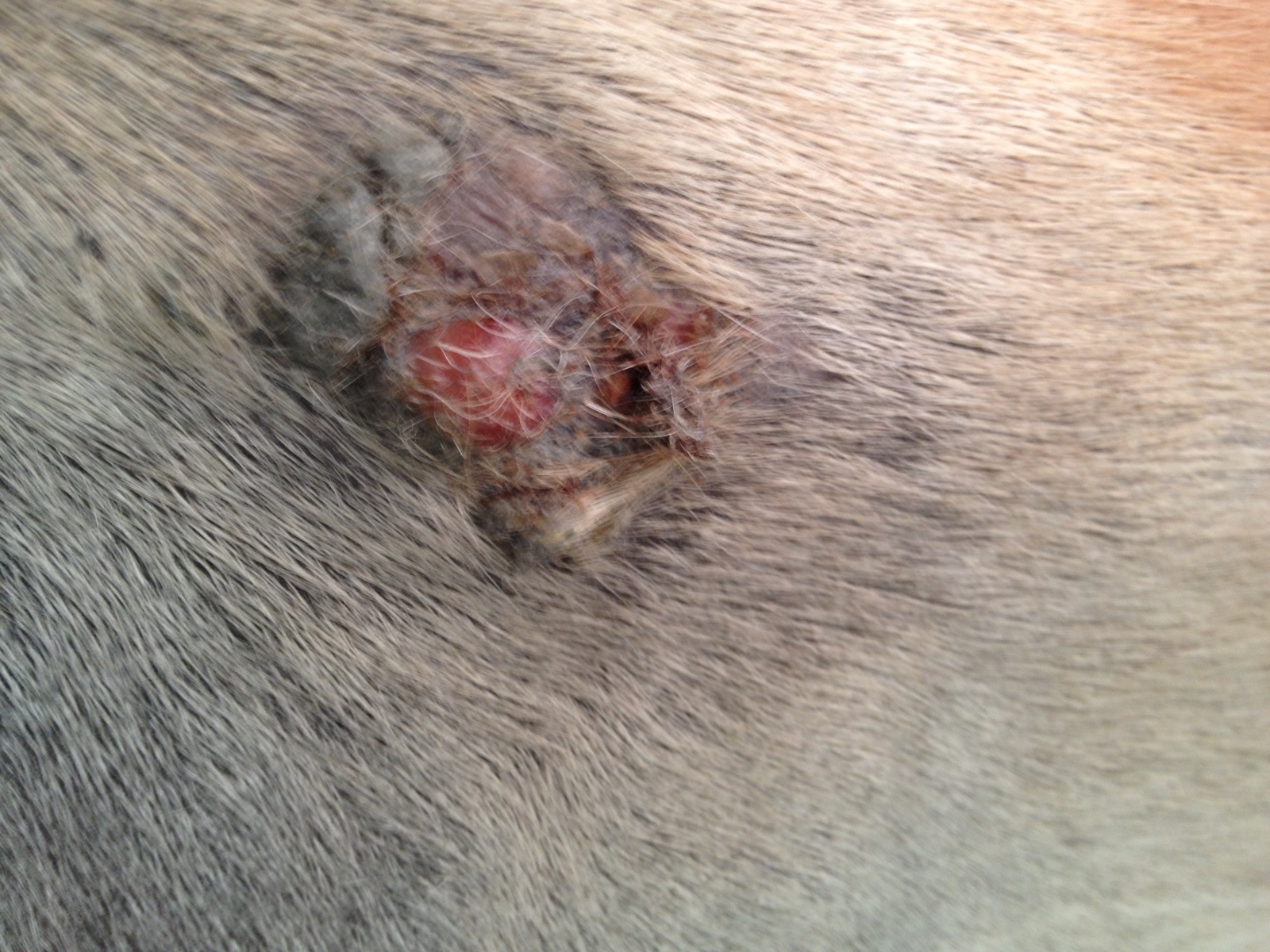 Sarkoid 1 Hinterbein (Stiel) jetzt wo das Fell weg ist sieht man auch neben "Stiel" das mini Sarkoid unter der Haut