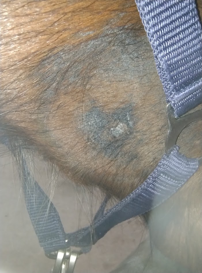 Insgesamt wachsen ein paar Häärchen nach und der Juckreiz hat deutlich nachgelassen. Das Pferdchen hält auch richtig brav die Wange hin, wenn ich mit der Lebermooslösung sprühe. Muss angenehm sein.