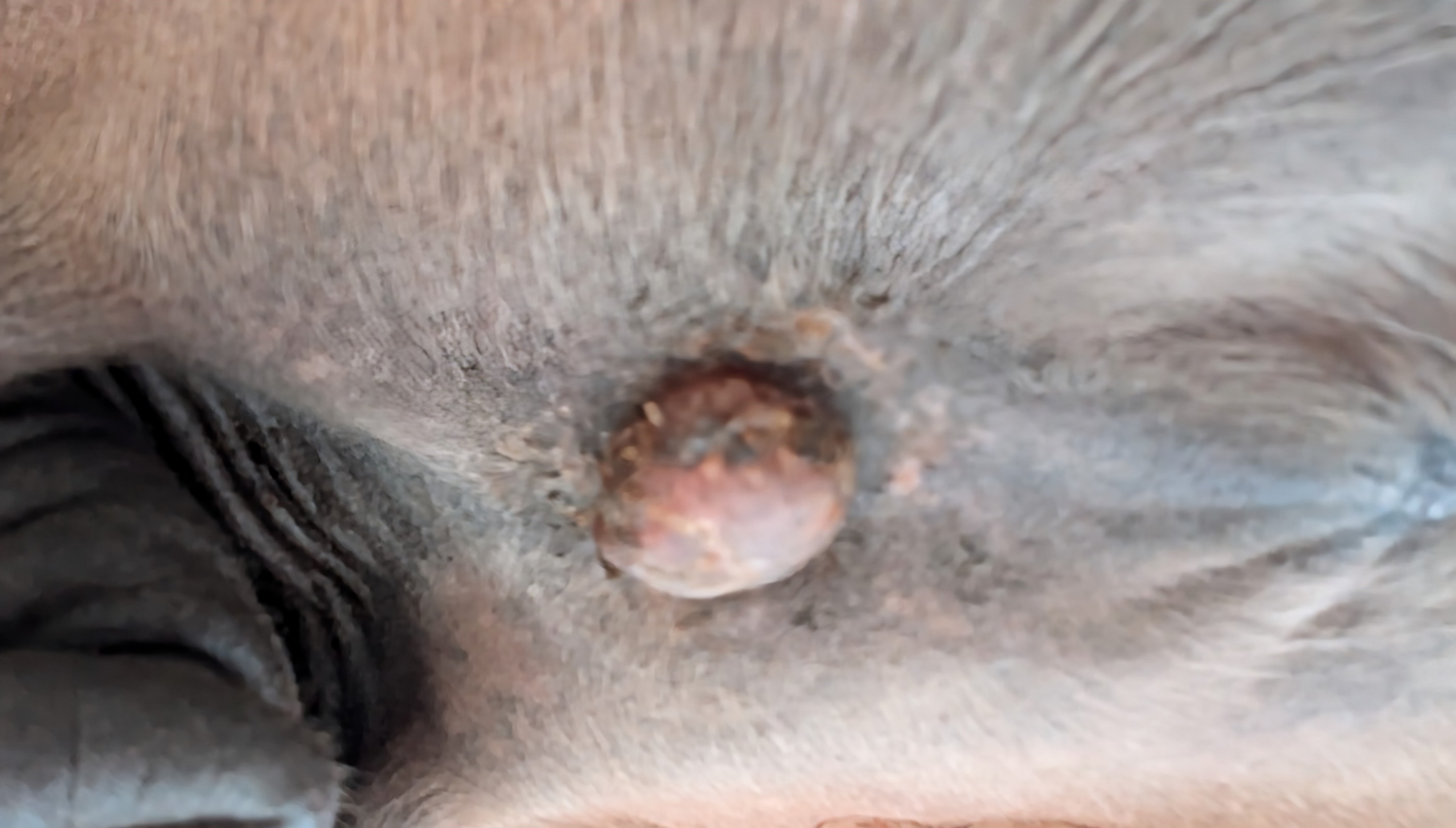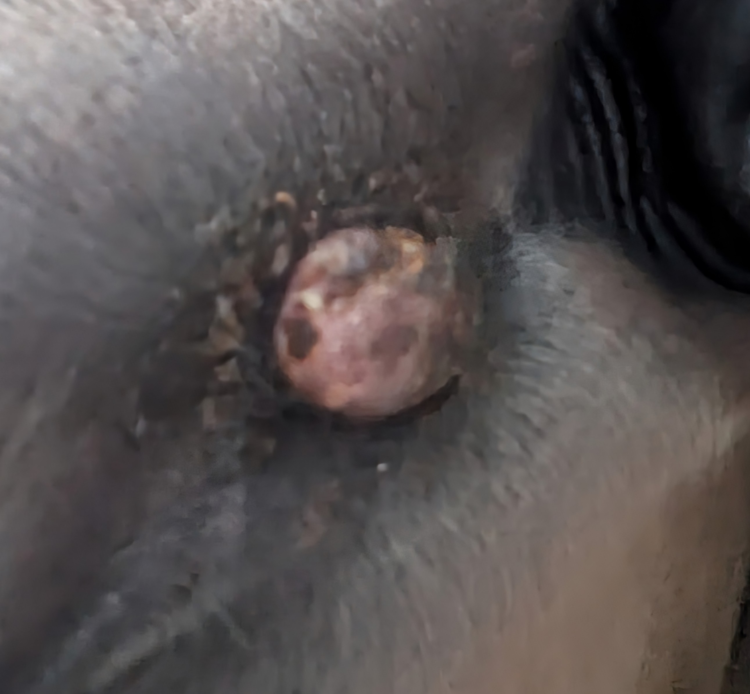 Ich hab dann ja noch das Thema mit den im Juni mit Stellfonta behandelten Sarkoiden. Das an der Brust sieht prima aus, das an der Wange eher merkwürdig... (siehe auch die ersten Bilder). Von Wundsalben über Zinkoxydschüttelsalbe bis Drachenblut - bleibt rosa, etwas erhaben und wenn es schlecht ist, blutig rot.