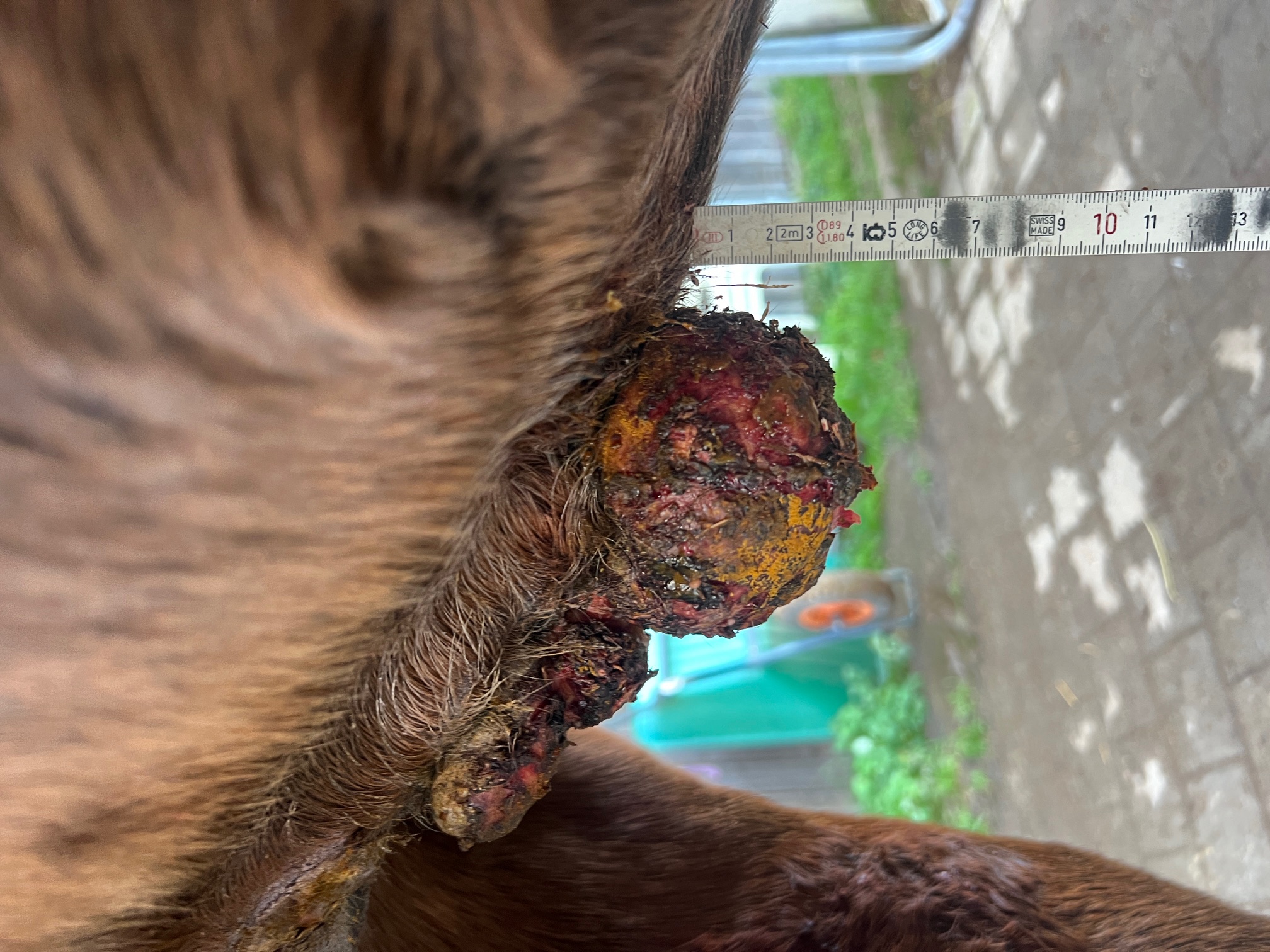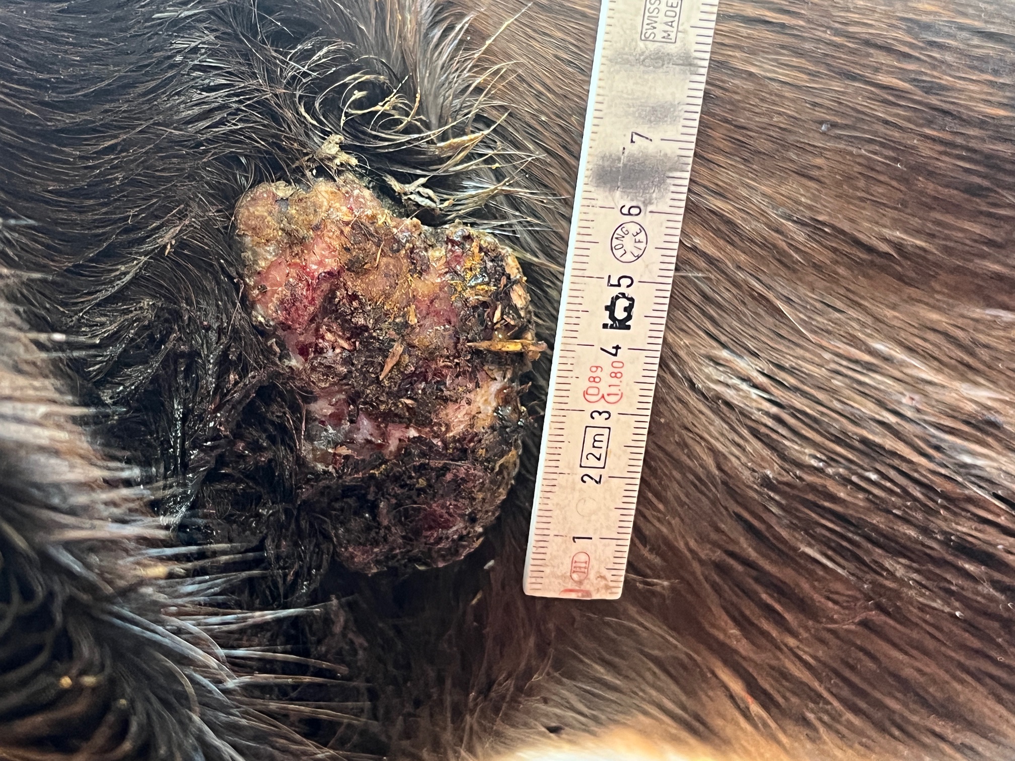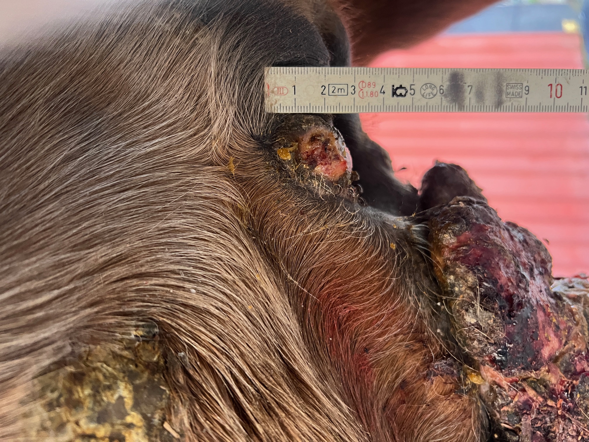 Wir schmieren nun seit 7 Tagen. Er mag das schmieren nicht mehr so gerne, es was aber nie mehr so schlimm wie am 2. Tag, an dem man ihn nicht mehr halten konnte. Wir schmieren alles 1:1. Bei Sarkoid Nr 1 kratzt er sich, was dazu führt, dass das Sarkoid häufig blutig ist (Dies macht er meistens in der Nacht, nach dem Liegen). Gibt es hier irgendwelche Tipps?