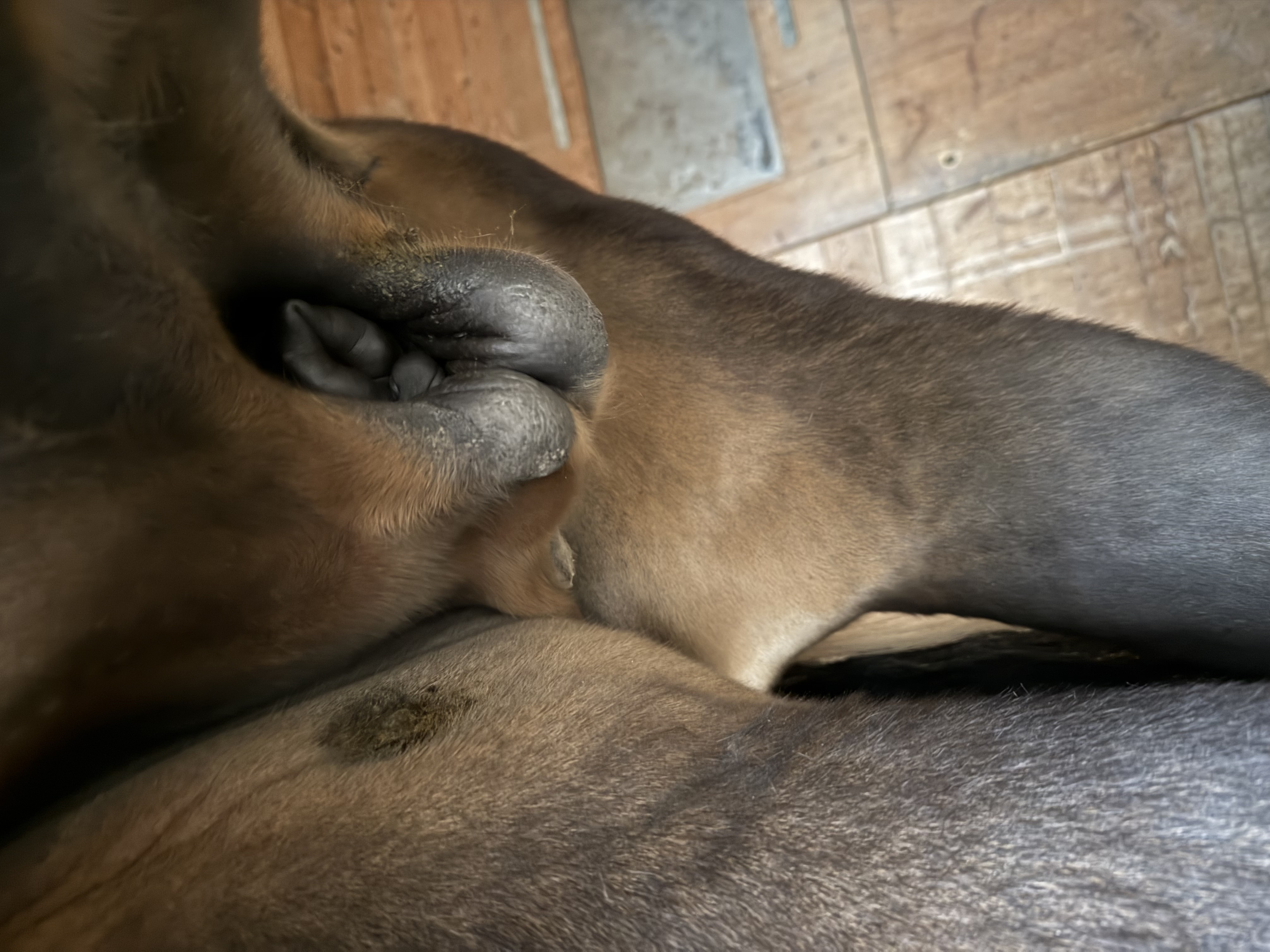 Die Schwellung ist mehr geworden. Um die Sarkoide herum und so der gesamte Bereich Schlauchtasche und Innenschenkel. Die Beine nach unten sind minimal angelaufen.