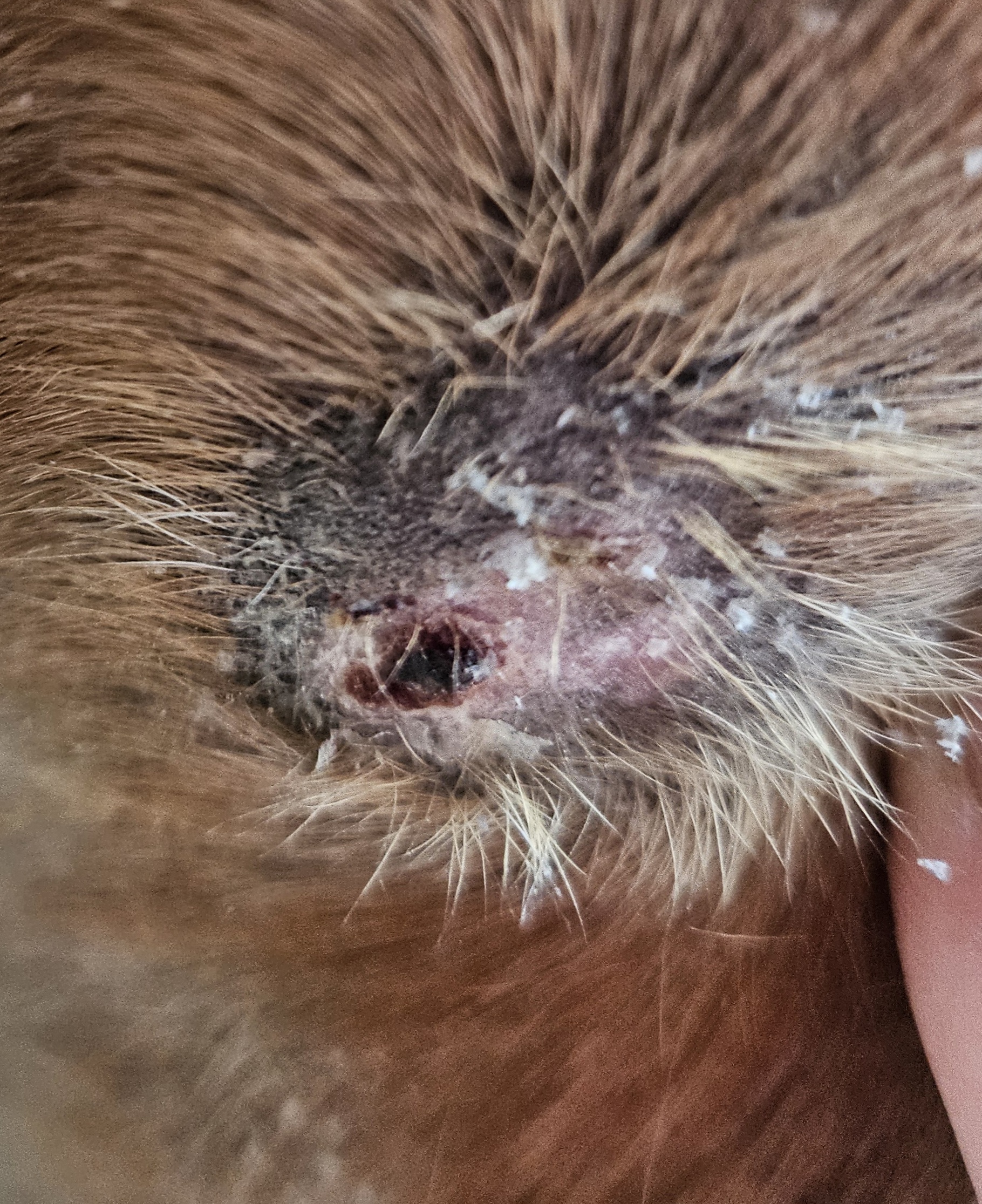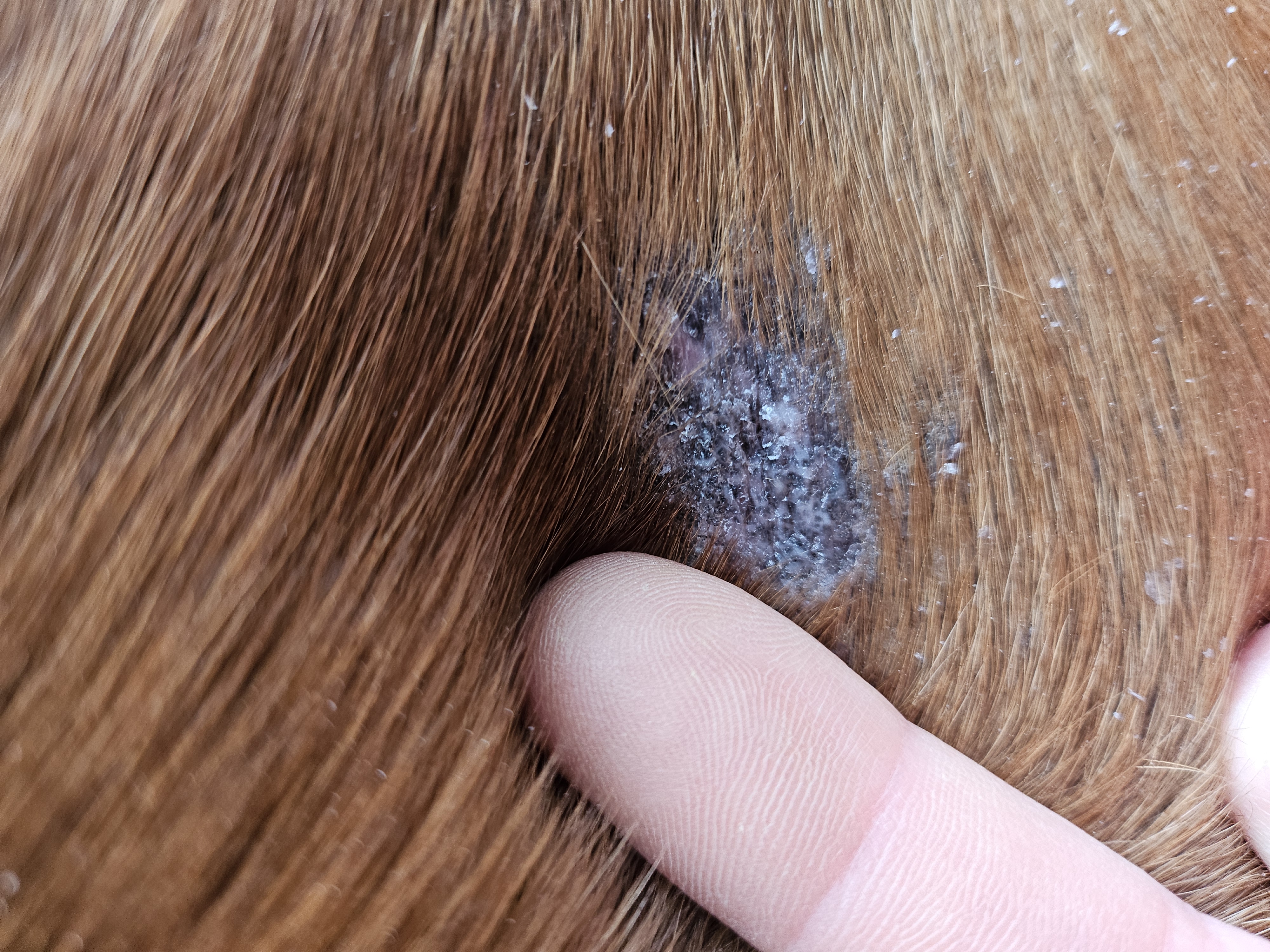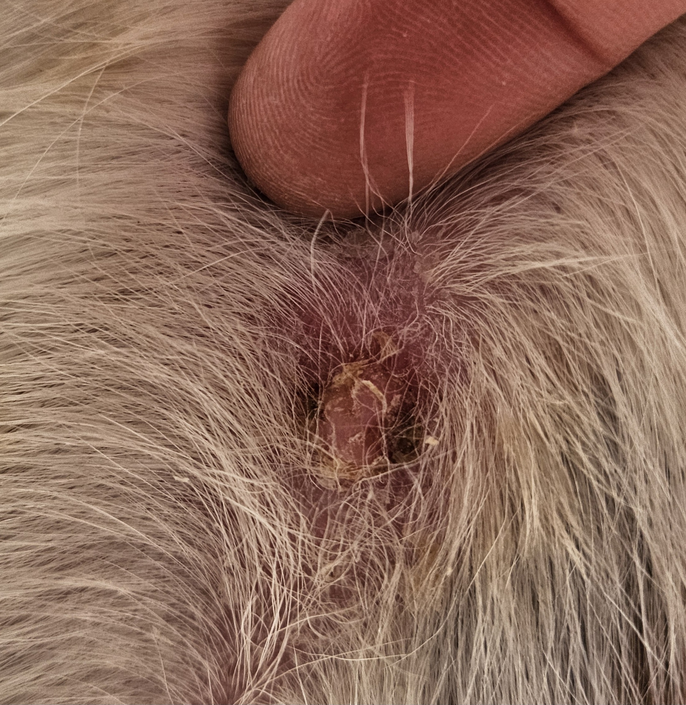 Ich schmiere jetzt Bauch und Brust 1:3 alle 3 Tage. Das Knöpfchen am Bauch schrumpft, fällt aber nicht ab, an der Brust weiß ich nicht genau ob die Haut durch meinen Übereifer beim Schmieren am Anfang defekt ist und deswegen kein Fell sprießt oder ob da doch noch Sarkoidgewebe vorhanden ist.