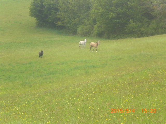 Pamira lässt sich inzwischen wieder brav einschmieren. Der Weide-Aufenthalt tut ihr sehr gut, sie ist total entspannt und frisst sogar ihr Müsli mit dem GLADIATOR PLUS komplett auf. War halt was Neues, da ist sie immer recht mäkelig. Scheinbar wurde der Futterzusatz nun für gut befunden :-) Leider kann ich heute nicht auf die Weide fahren, da mich ein schlimmer Magen-Darm-Virus in Schach hält. Anbei ein Foto von unseren Pferdchen auf der Weide. Sarkoid-Fotos adde ich später.