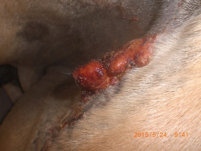 Was mir noch Sorgen macht: Habe Pamira schon 2 Zecken runtergezupft, einer sass am Hals, der andere gegenüber des Sarkoids auf der anderen Bauch/Innenschenkelseite. Da hat mich beinahe der Schlag getroffen, weil ich zunächst vermutet hatte, dass sich ein neues Sarkoid gebildet hätte - dabei war es nur ein fetter Zeck.