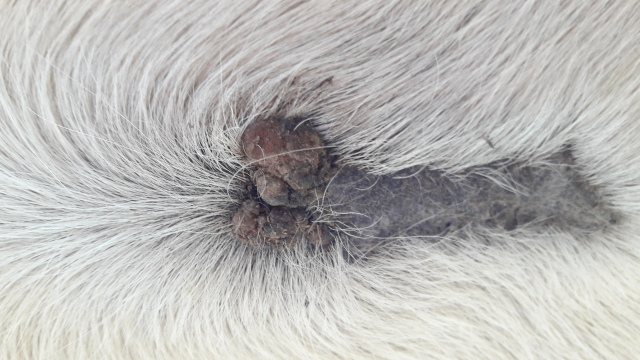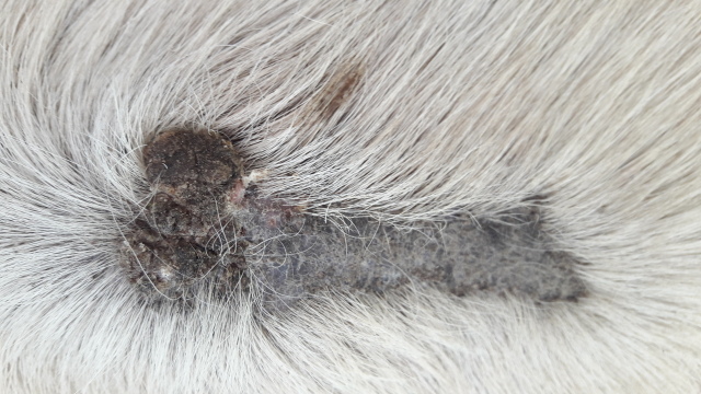 Beim Waschen habe ich gestern einen neuen Knubbel entdeckt. Ich warte mal ein paar Tage ab, ob es vllt. auch ein Stich ist, aber ich befürchte fast, das dem nicht so ist... Würdet ihr den gleich mit behandeln? Ist derzeit nicht ganz so groß wie ein 1 Centstück, aber komplett verschlossen unter der Haut. Wenn es denn eins ist. Ich habe die Stelle für das Foto nass gemacht, da man es sonst gar nicht gesehen hätte. Also da, wo das Fell ein bisschen absteht, ist es.