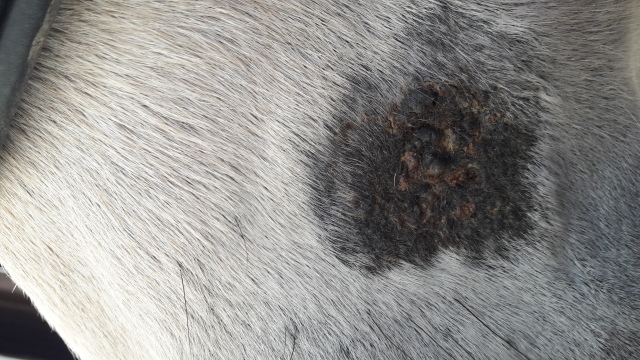 Bei dem Sarkoid an der Nase bin ich auf 1:2 runter gegangen, weil es im Moment recht wund ist, viel sifft und teils auch geblutet hat. Pony fand es auch nicht mehr sooo witzig, deswegen habe ich die verdünnung erhöht. Vllt gehe ich noch weiter runter, mal sehen. Insgesamt habe ich nicht den Eindruck dass es besonders kleiner geworden ist. Es wirkt eher so ein bisschen als hätte sich die Salbe in die Tiefe "gefressen", also mehr so nach innen, vllt ein bisschen zusammen gezogen.
