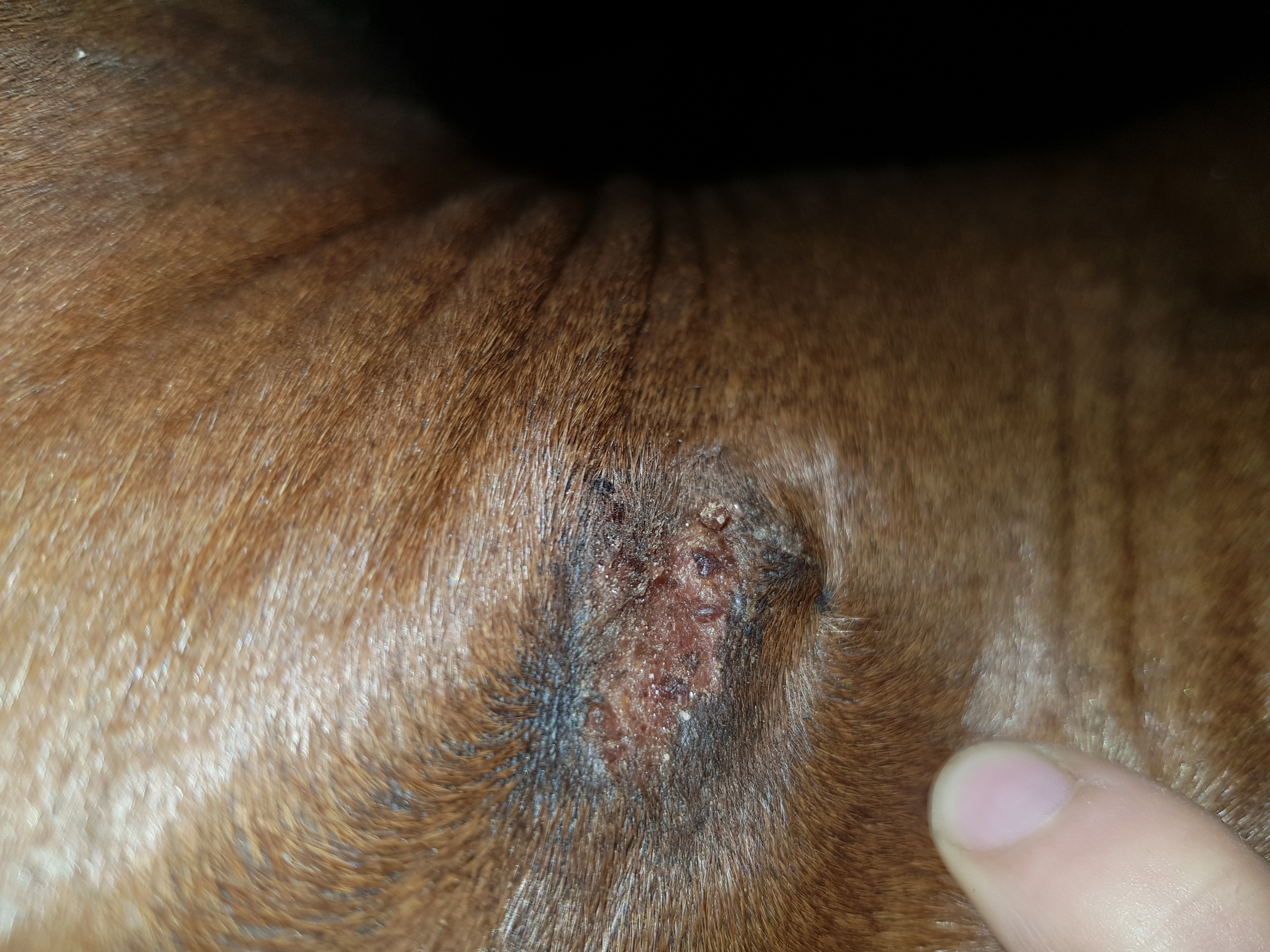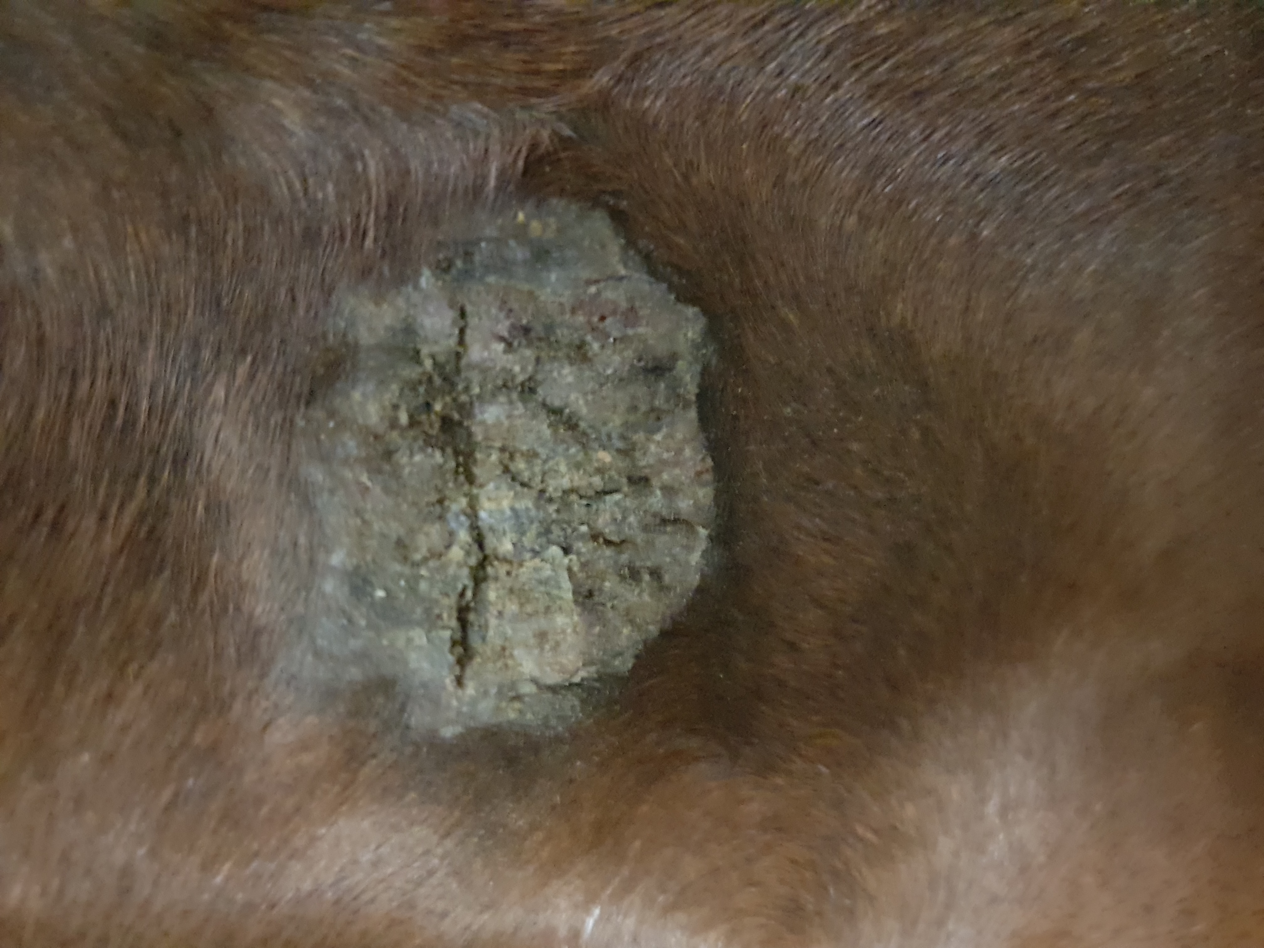 Heute war das Sarkoid wieder so gut wie komplett mit Kruste bedeckt, habe nur die Stellen mit CompX geschmiert die mir noch als wund erschienen. Genauso habe ich es mit dem Sarkoid an der Achsel rechts gemacht.