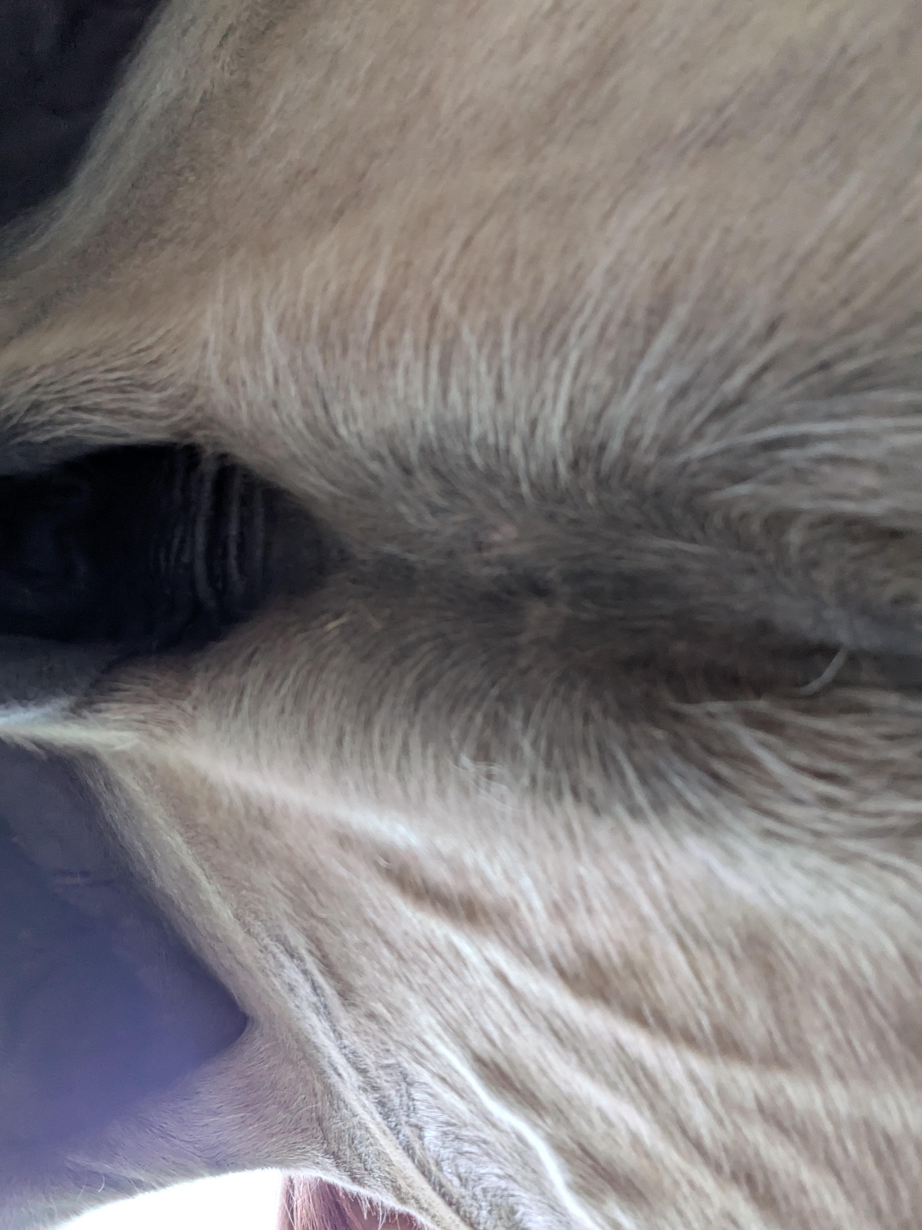 - 7-2024 entdeckte ich ein neues eS am Bauch, klein aber nicht zu übersehen. Das Angebot, auch das mit Stelfonta zu behandeln, habe ich abgelehnt, der Arme hatte schon genug Stress mit neuer Umgebung und Herde und neuen Menschen...