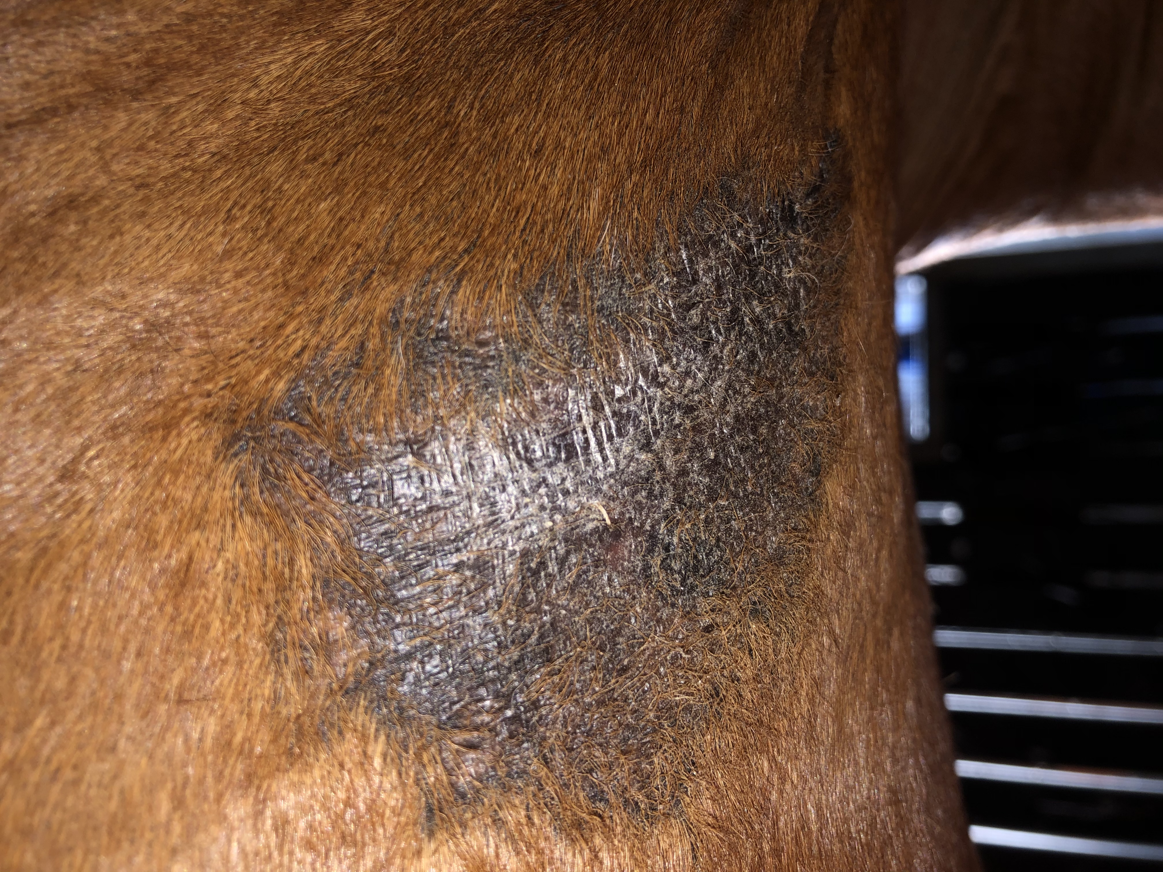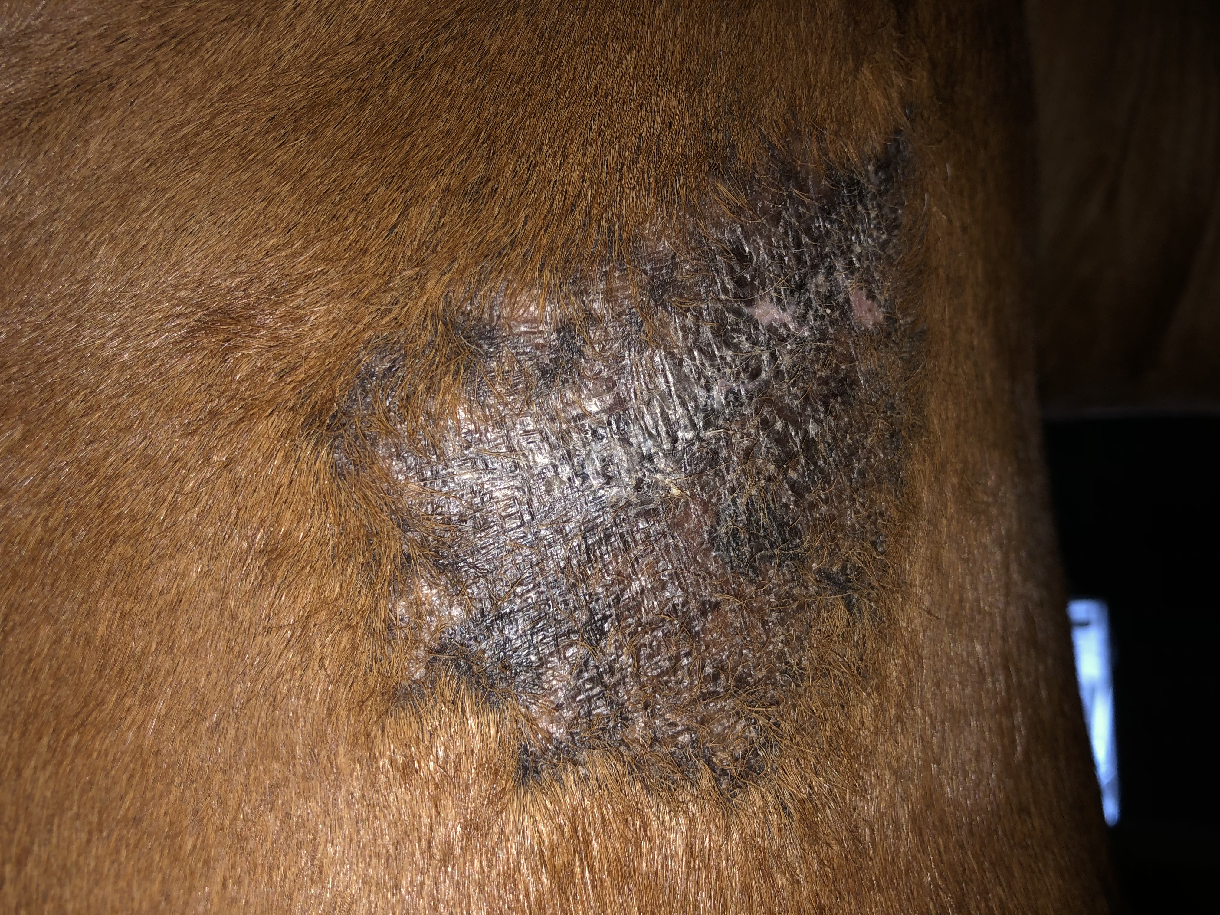 Ja es sieht gut aus. Ist inzwischen auch recht weich, aber fühlt sich leicht gnubbelig an. Wie bei unserem Wallach. Sattel geht auch schon. Sie zeigt bis jetzt keine schmerzreaktion. Wir beobachten weiter.. ;)