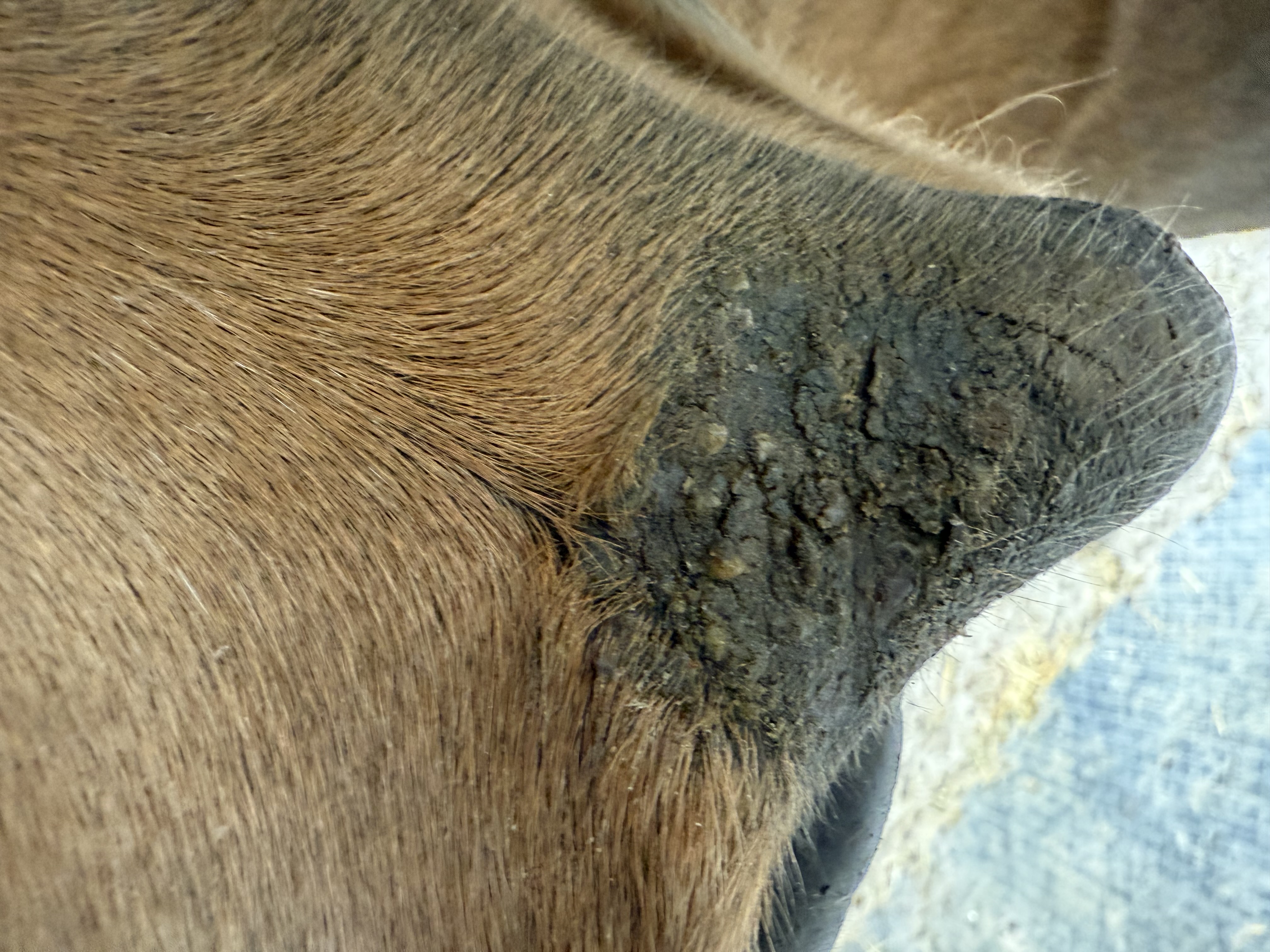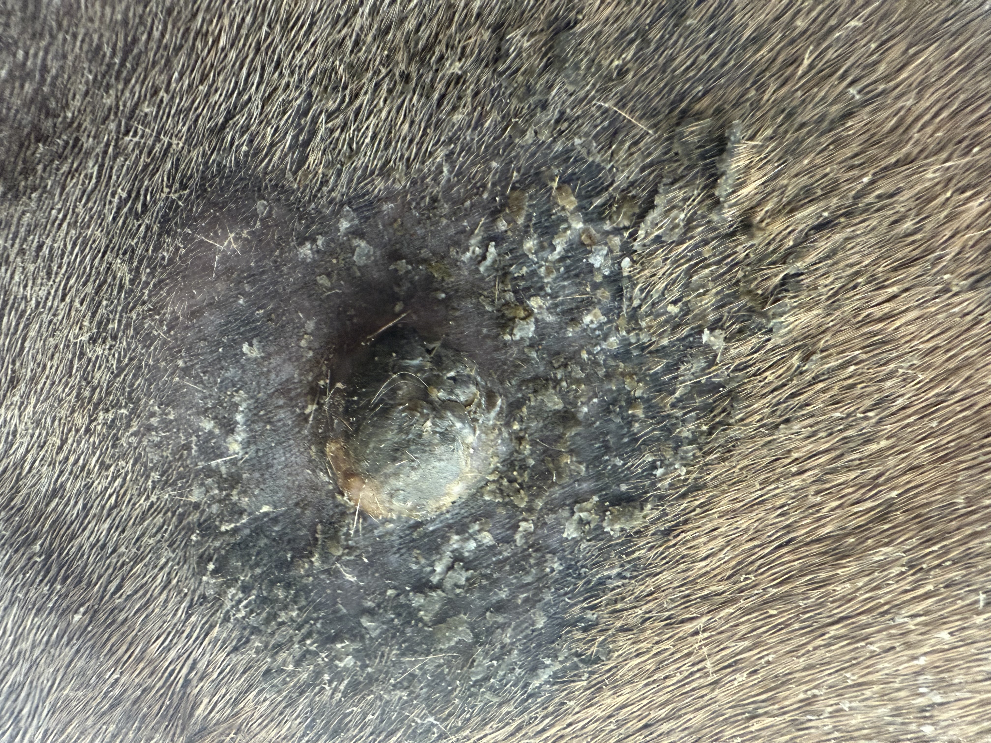 Heute morgen hab ich entdeckt, dass sich der Sarkoid Knubbel abgelöst hat. Ich freu mich wie Bolle!!