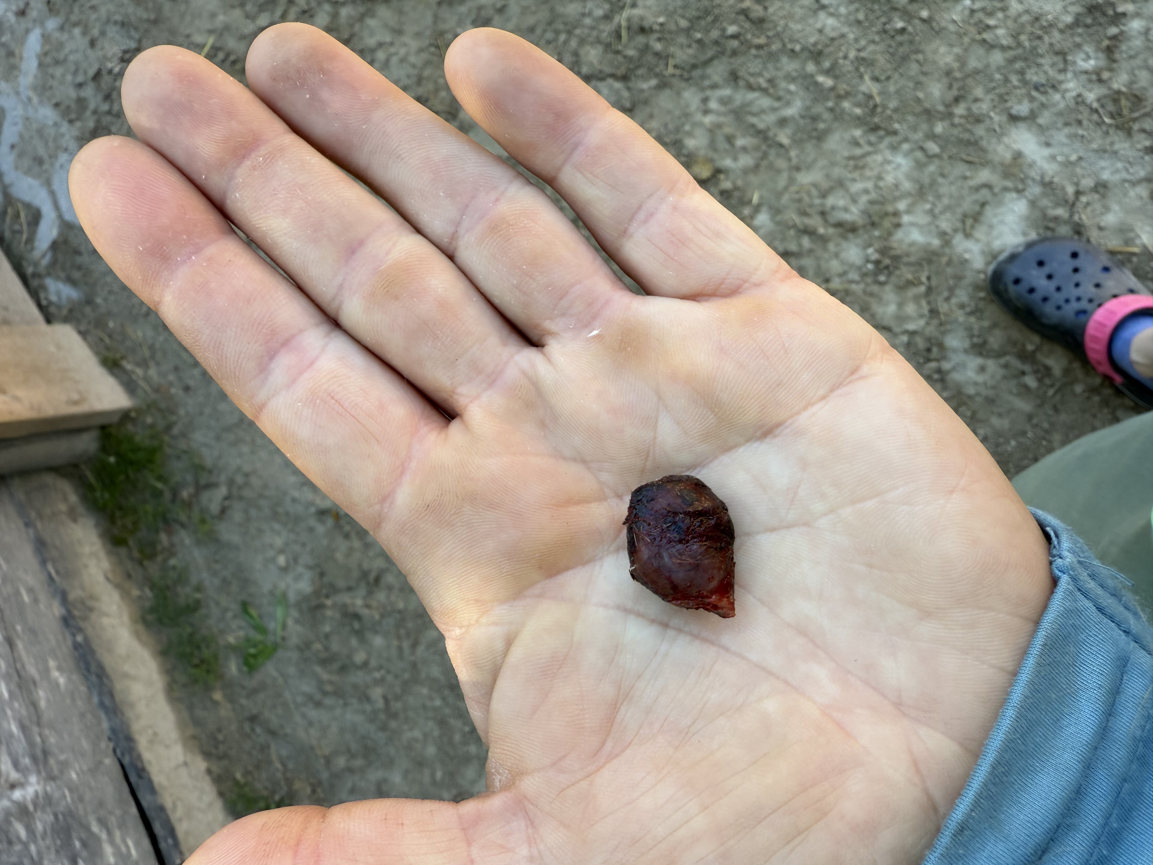 Der Knubbel hängt noch an einem kleinen Fitzel. Soll ich das abschneiden? Oder warten bis das auch von selbst abgeht?