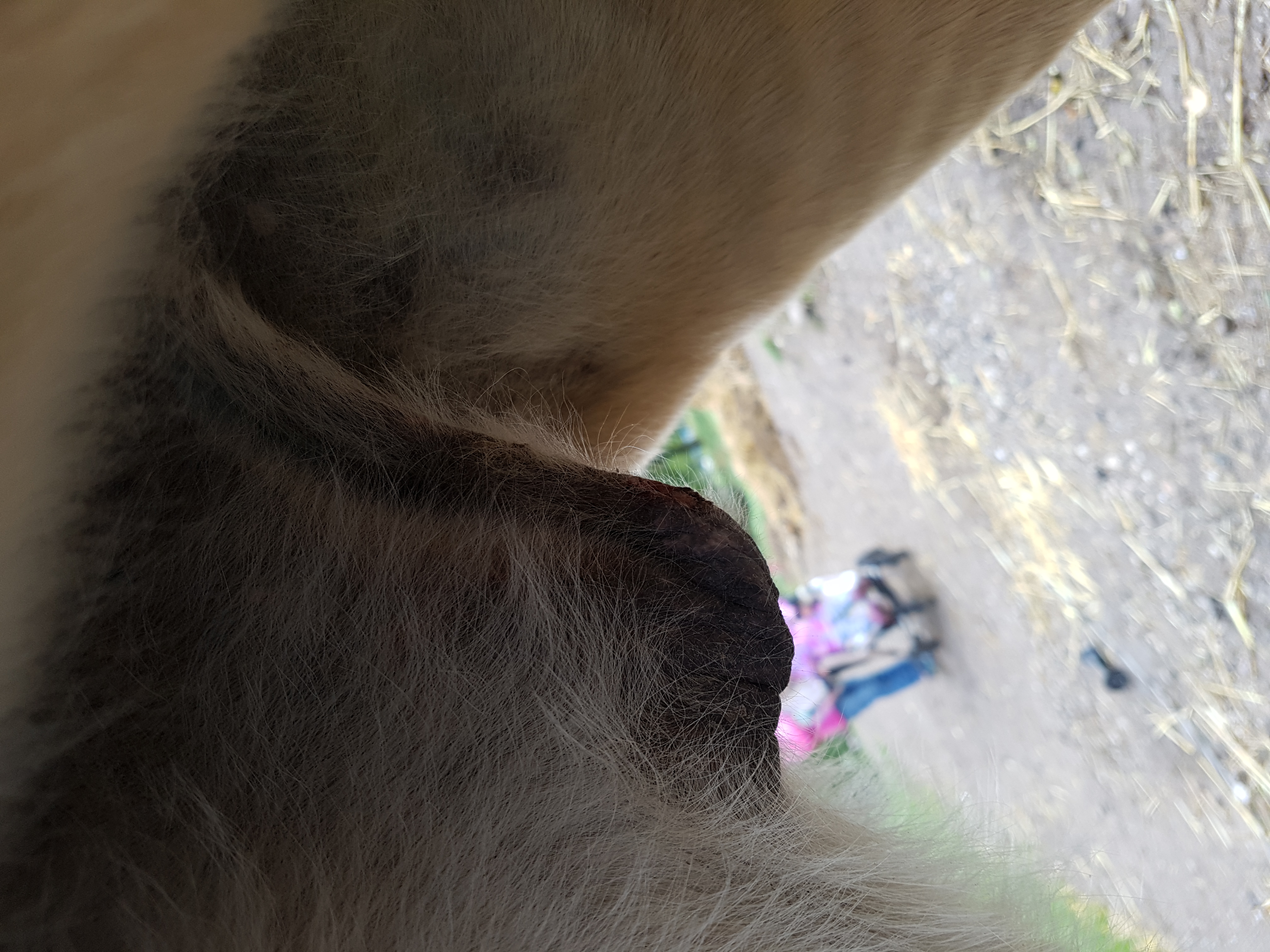 Ich finde es sieht aus als würde es sich weiter abkapseln- also es wird dünner oben. Es ist komplett verkrustet bis auf den ansatz. Dort wird fleißig geschmiert und dabei wird er etwas zappelig. Scheint zu zwacken, daher hab ich die verdünnung aktuell nicht verändert. Ich hoffe so sehr dass es abfällt !!!!!