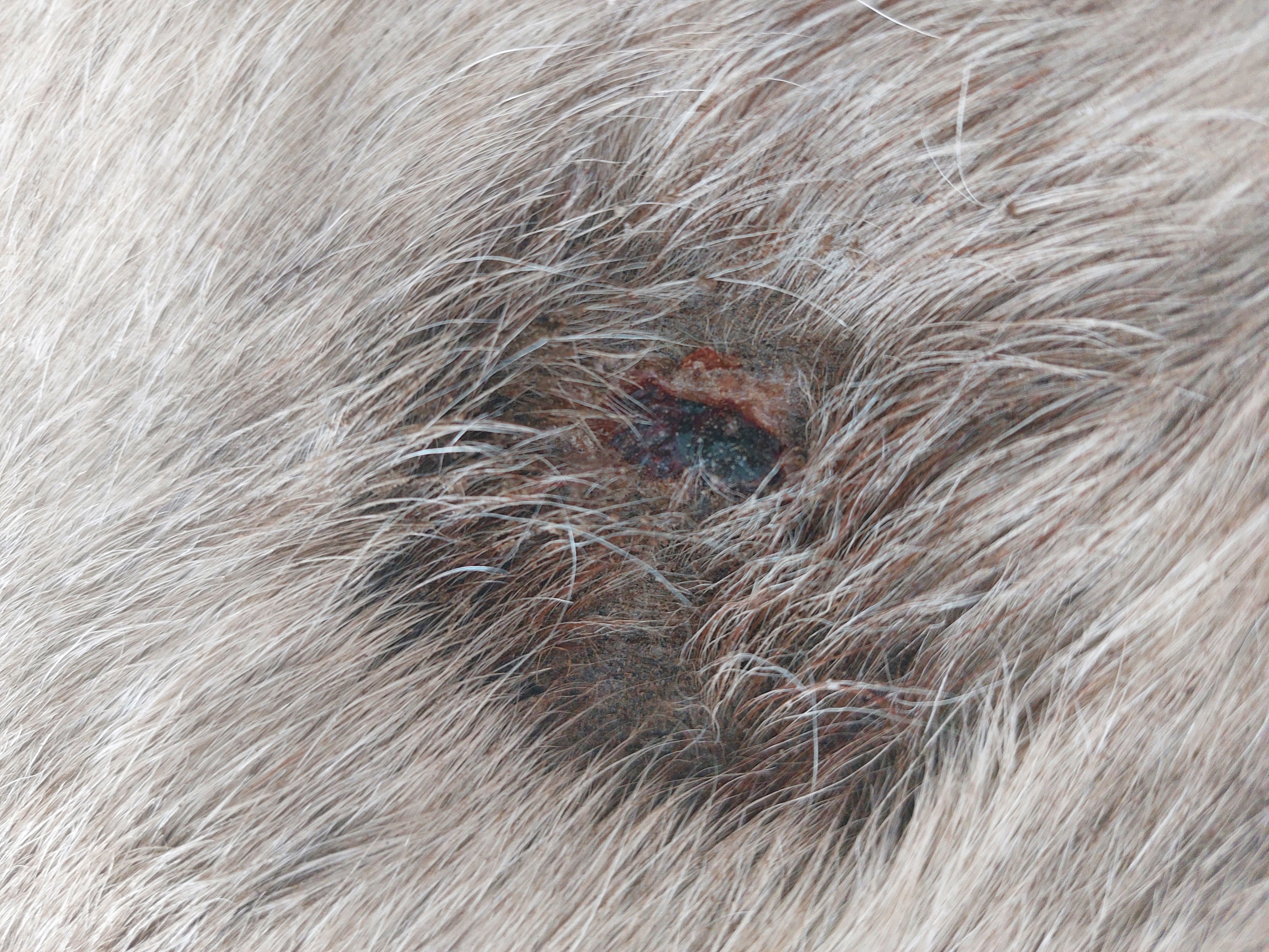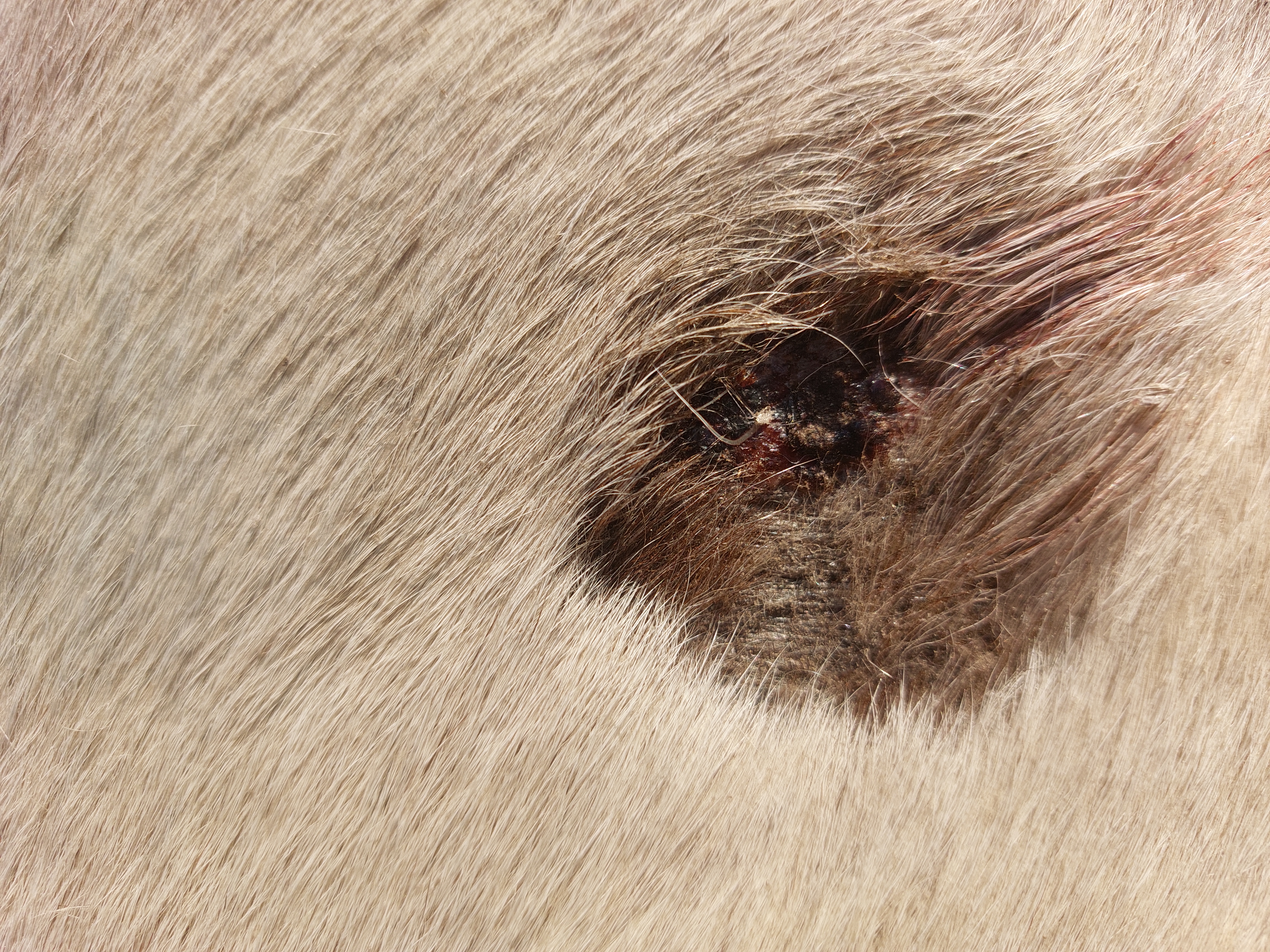 Hallo, also es hat einmal geblutet . Nun ist wieder eine eine leichte Kruste drauf. Ich habe ein Foto gemacht, finde aber da sieht man jetzt nicht allzuviel drauf.