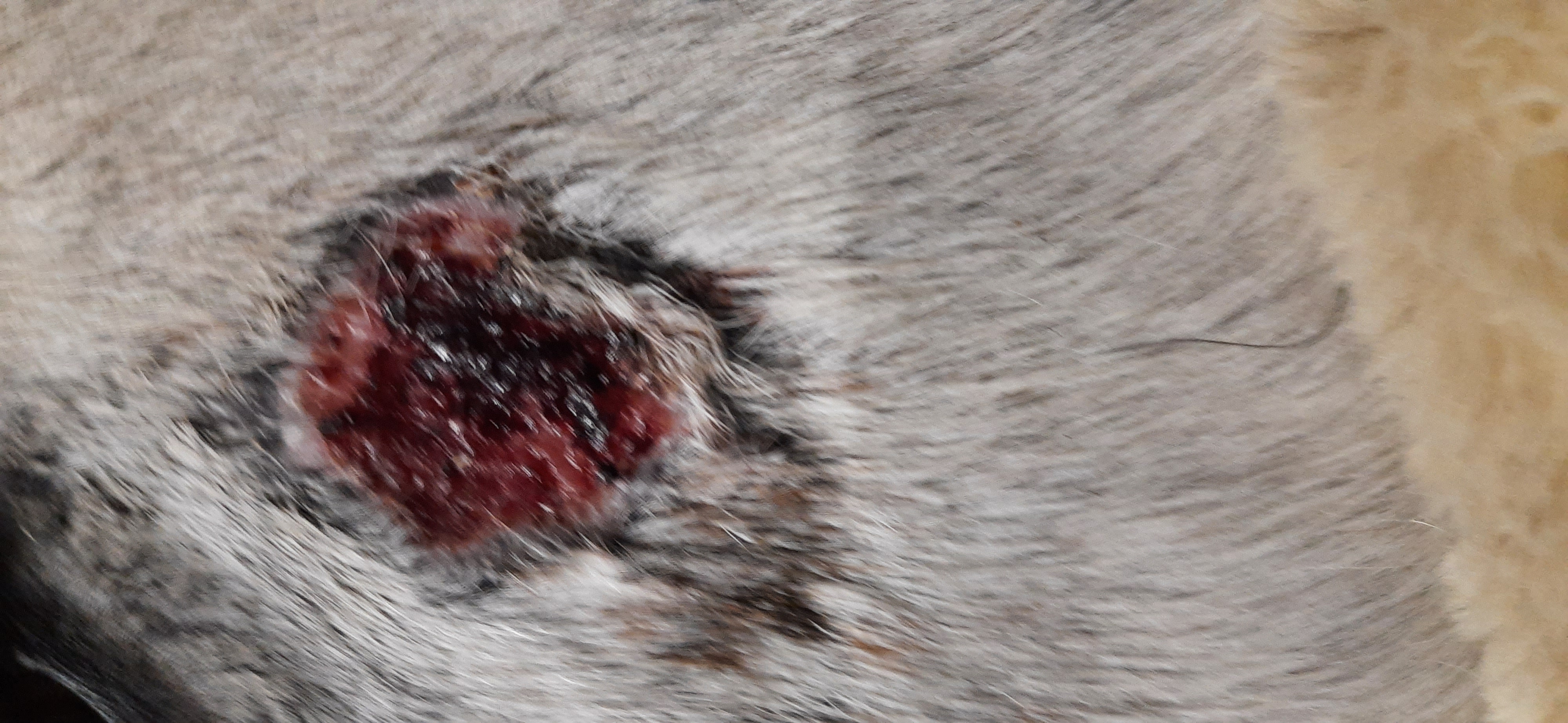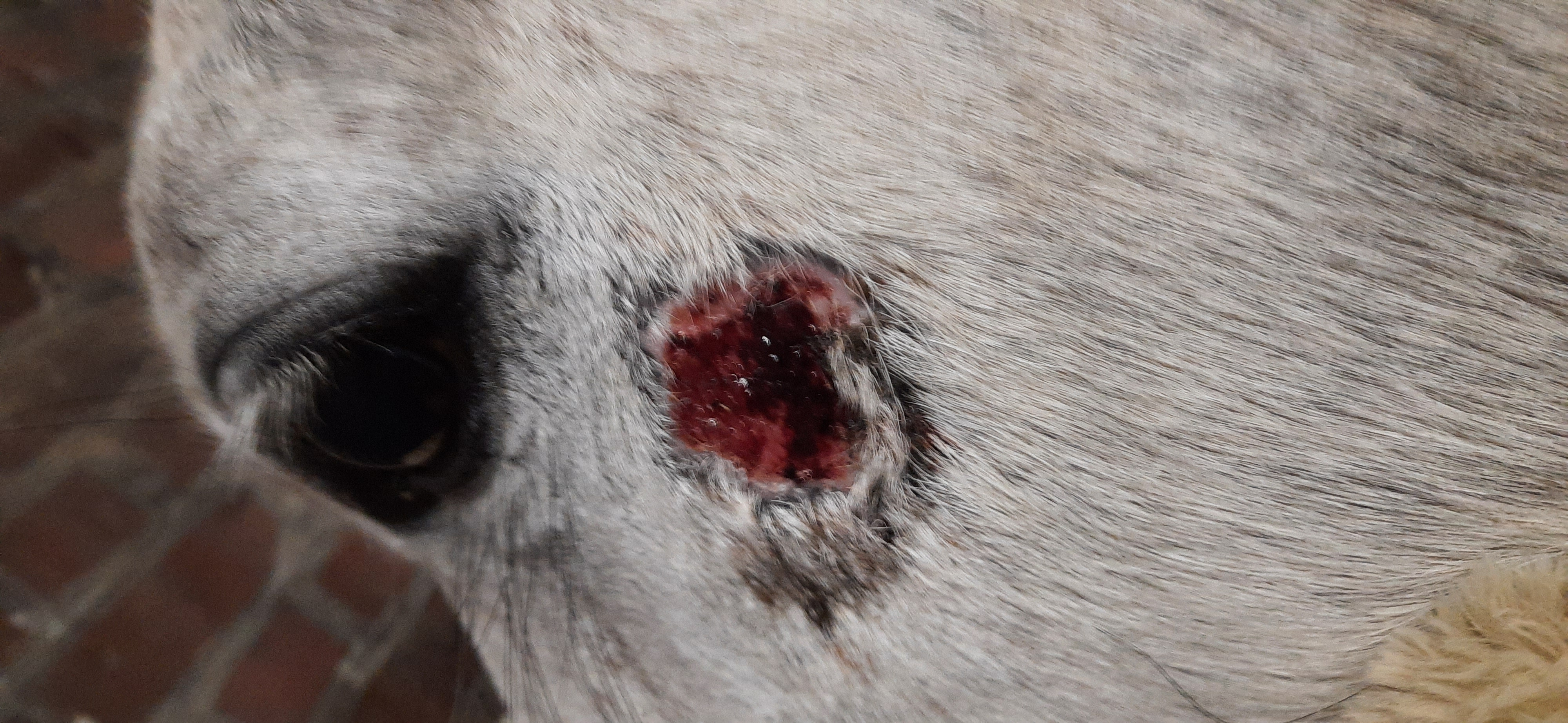 Sie war ja fast zur Hälfte ab, aber eben nur fast - Die pappte da die ganze Zeit an der offenen blutigen Wunde und ging einfach nicht ab und nun hängt die alte Kruste über der neuen Kruste