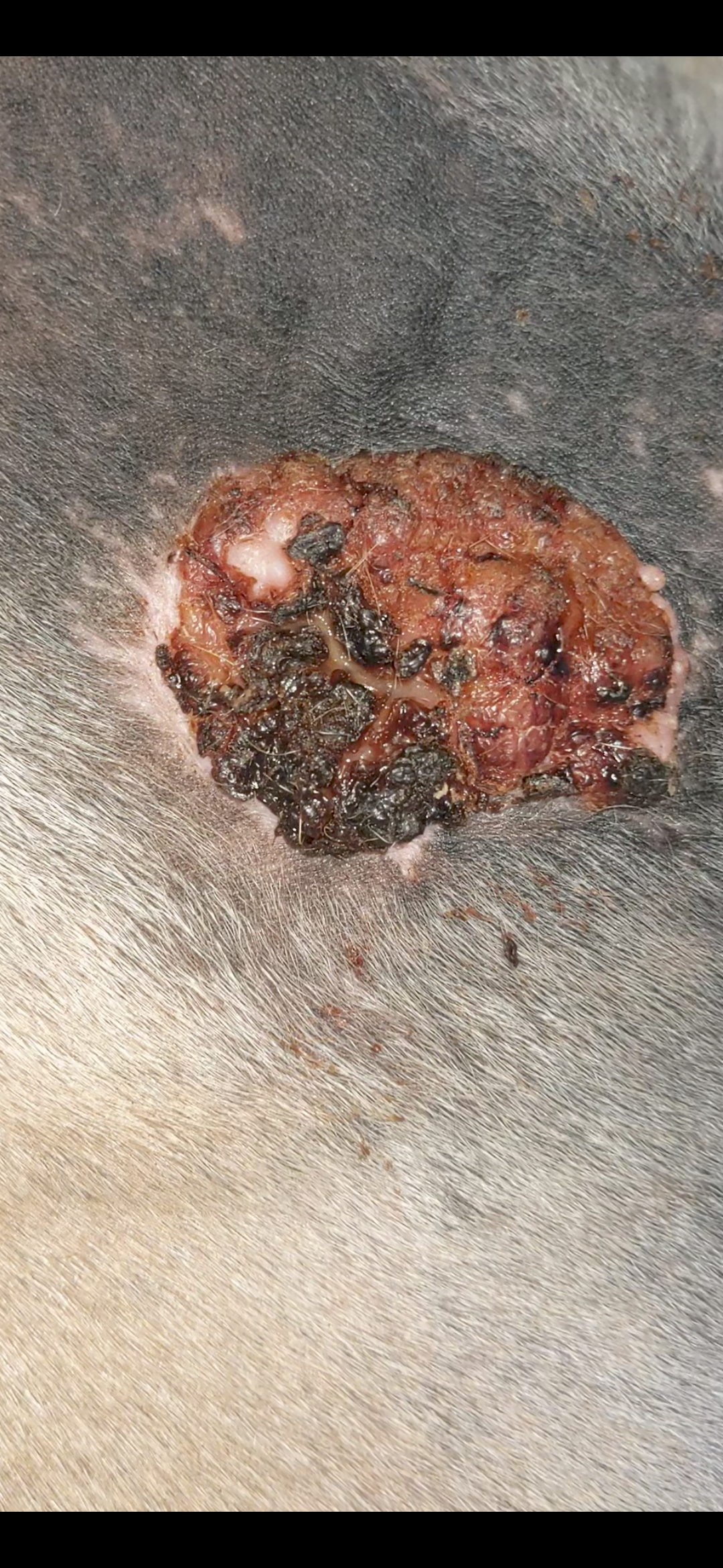 Nr. 1 ist heute etwas blutiger gewesen, Pony war aber sehr entspannt heute und nicht so zickig. Ich konnte es gut ansehen, fotografieren und einschmieren. Die untere Kante heilt weiter gut.