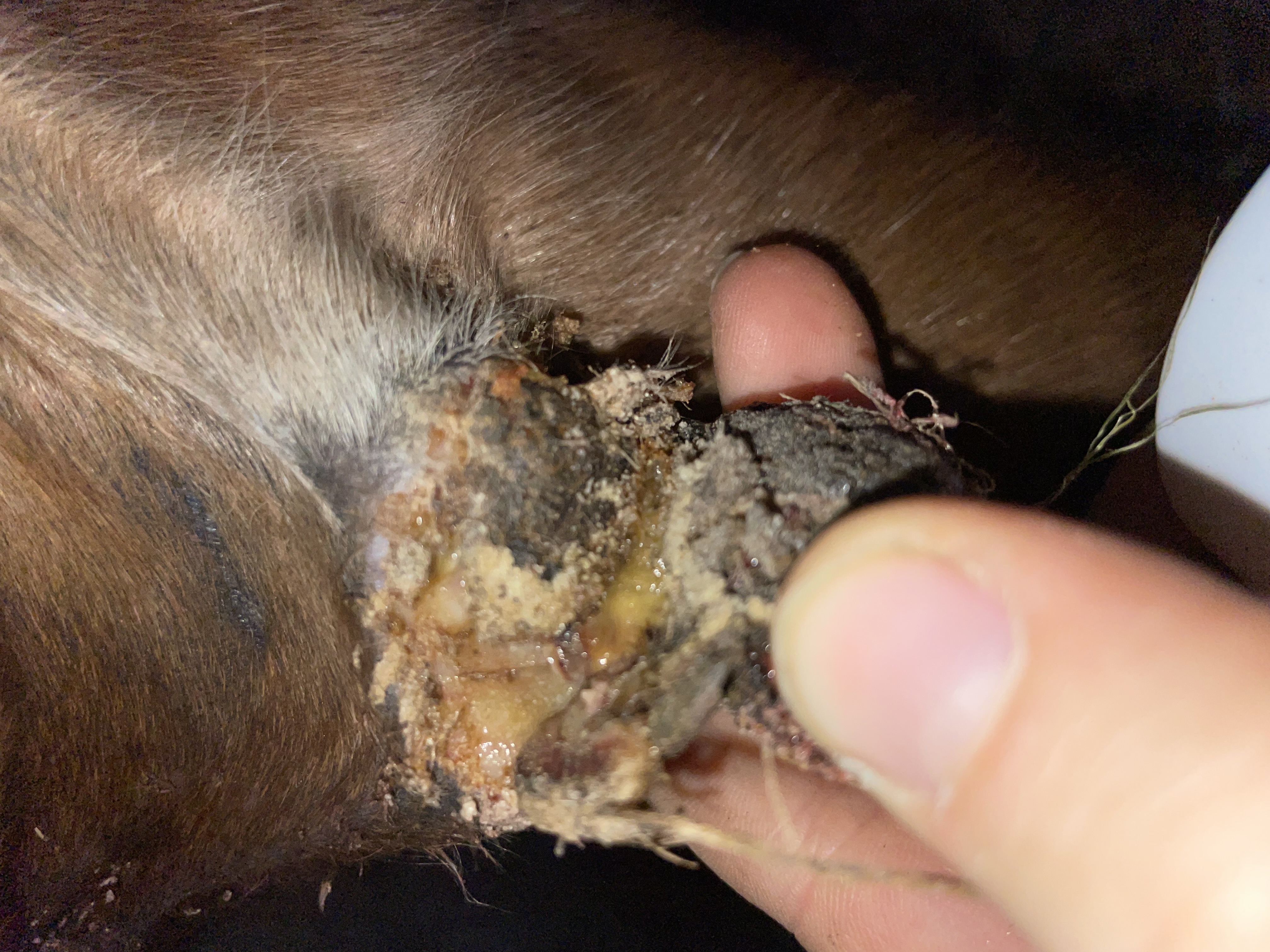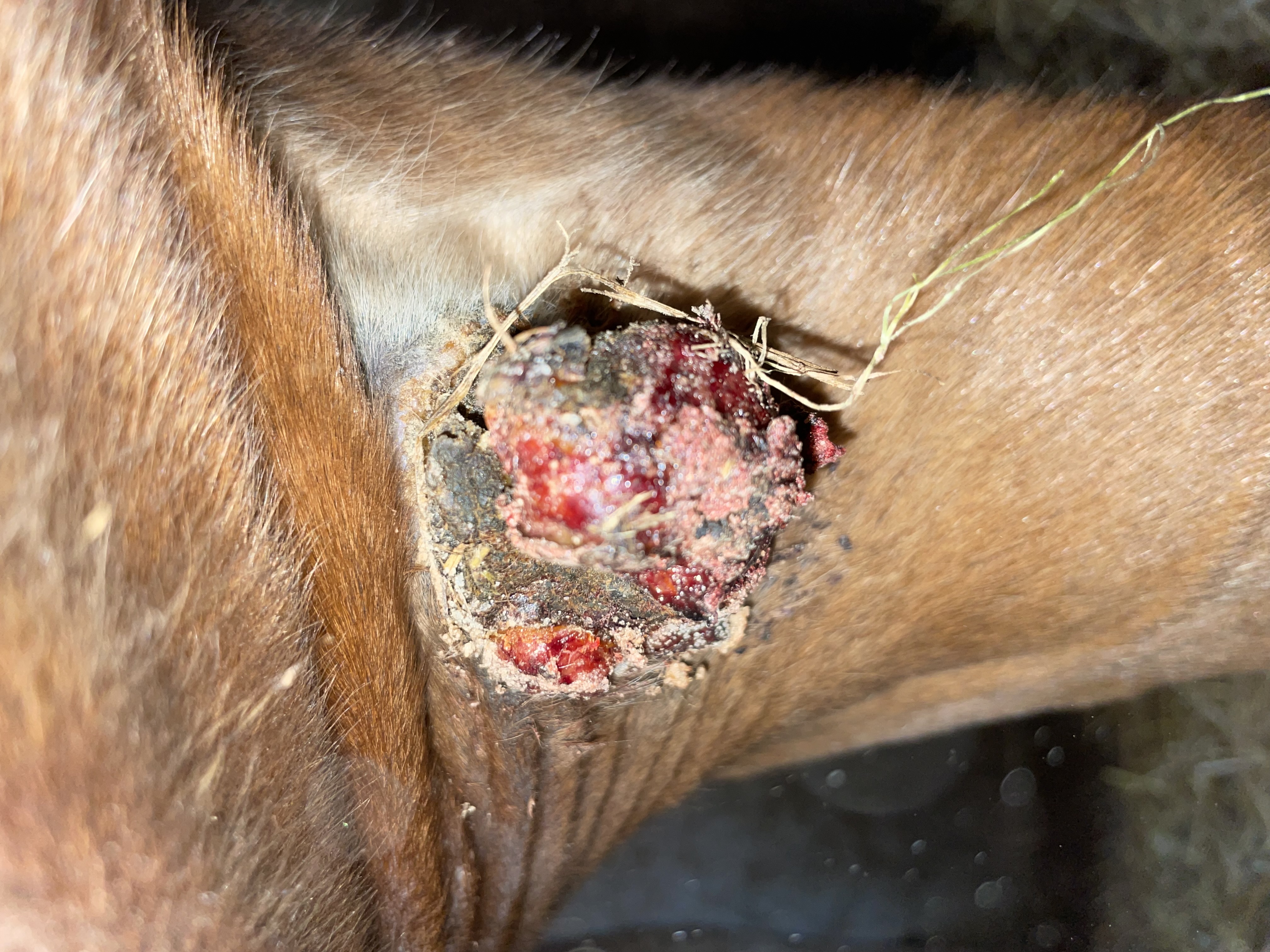 Bin auch ganz begeistert und hoffe sehr, dass dieser Knubbel bald abfällt und wir dann dadrunter die Flöche behandeln können.