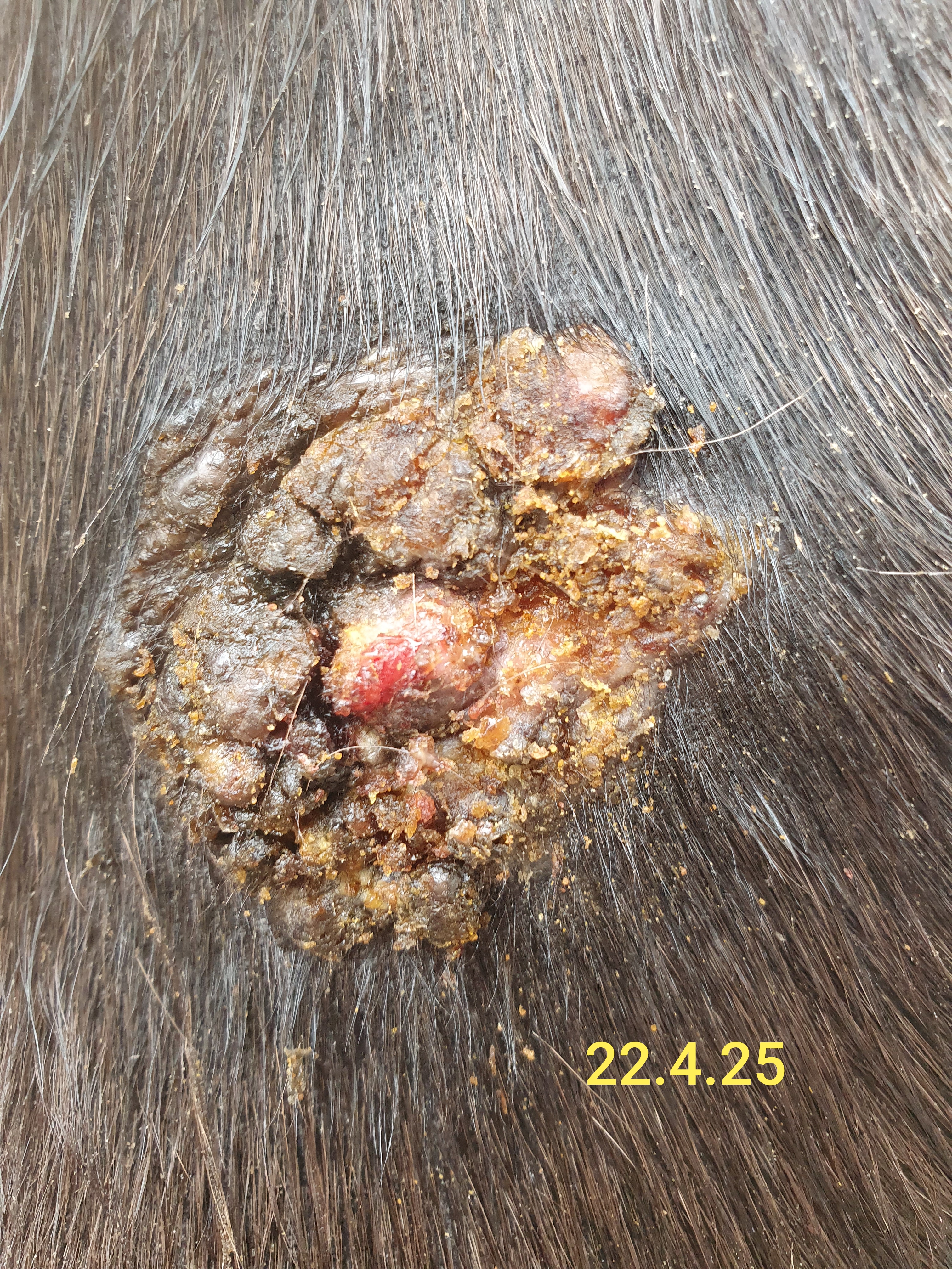 Das am Kopf hat nach wie vor im oberen Bereich eiterstellen. Und im rechten Bereich löst sich immer Kruste.