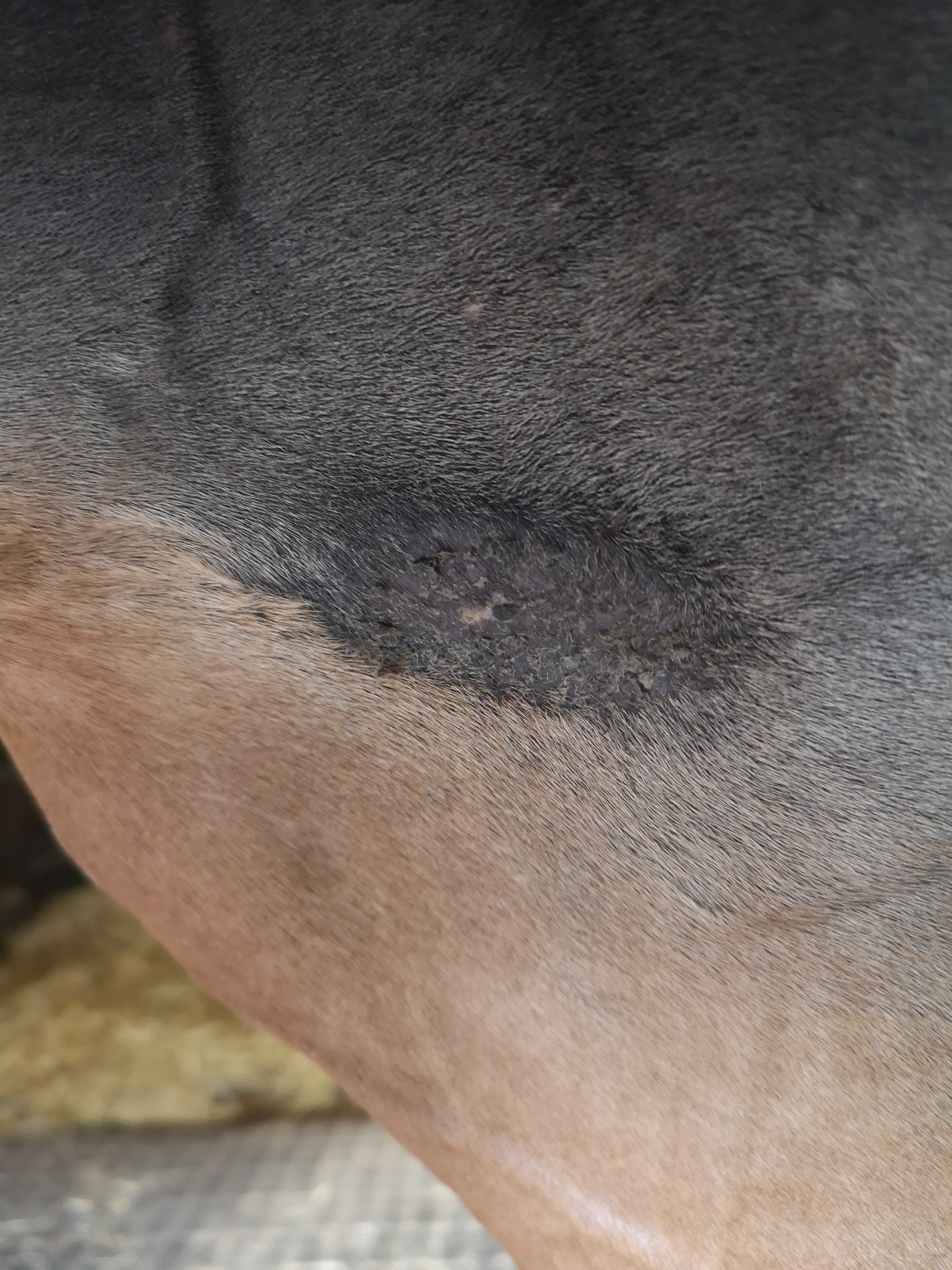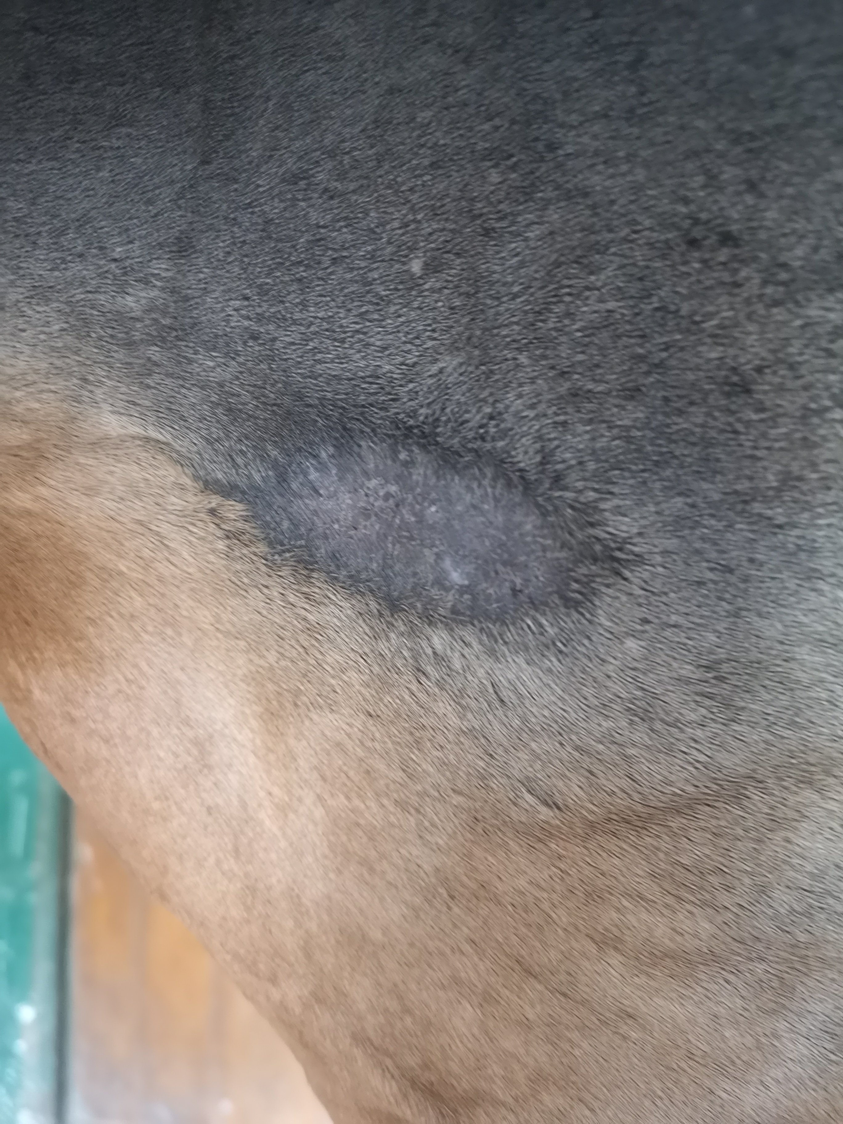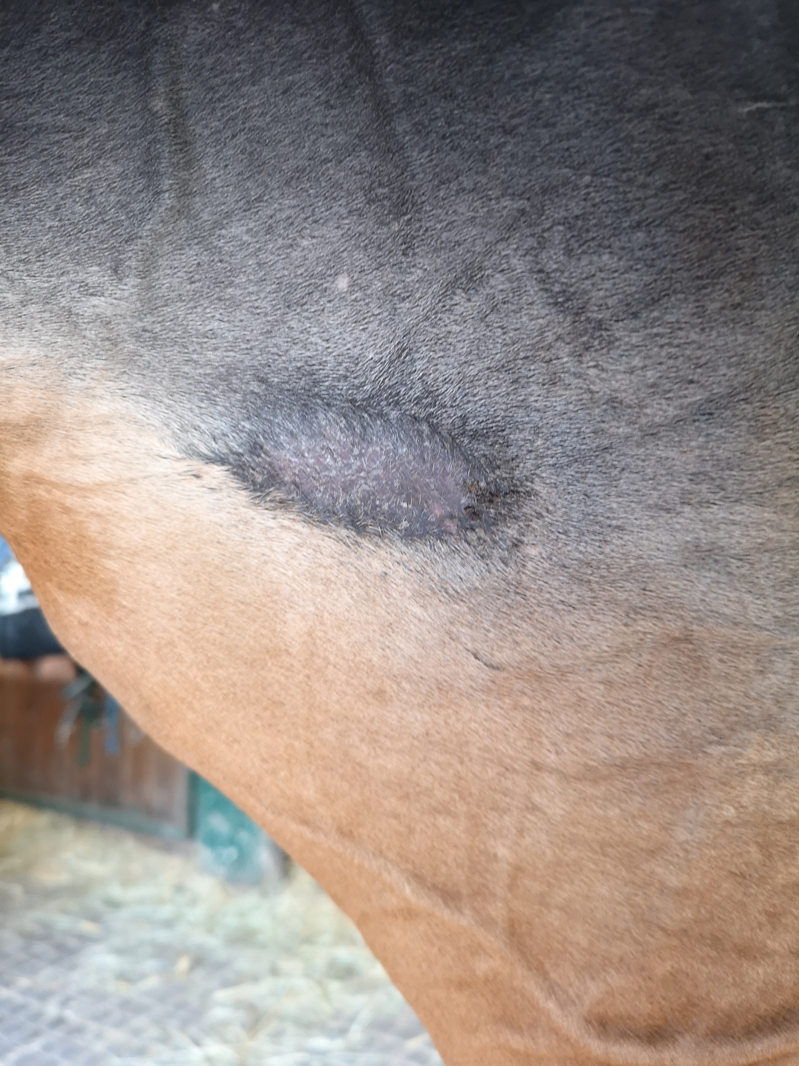 Hallo trinchen, ich lese gespannt bei Euch mit. Wir haben so was wie Ihr am Innenschenkel habt, an der Achsel - und Eures an der Brust hat meine Stute in ähnlicher Form auf der anderen Seite. Schmierst Du den kleinen haarlosen Fleck etwas abseits an der Brust auch? Das sieht für mich nämlich auch verdächtig aus. Ich selbst habe mal ne Woche pur geschmiert, als ich so gar keine Reaktion bekommen habe bzw. testen wollte, ob da noch was ist oder nicht. Das hat bei mir den vollen Durchbruch gebracht. Ich würde dem Frieden an dem Schenkelsarkoid auch noch nicht trauen und würde wie Du weiterschmieren. Es sprießen zwar vereinzelt Haare, aber nicht durchgehend (in der linken oberen Ecke z.B. nicht).