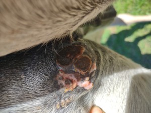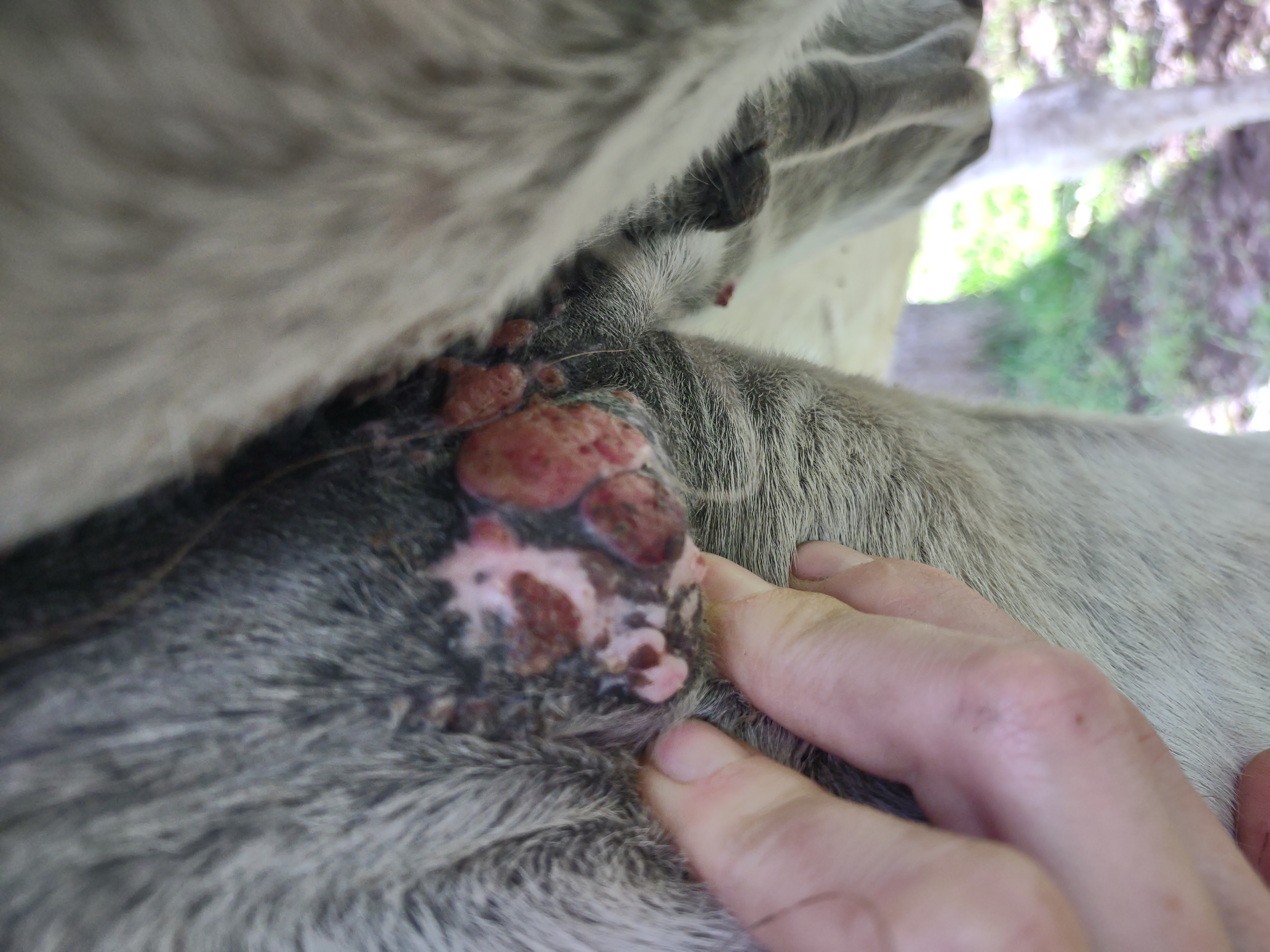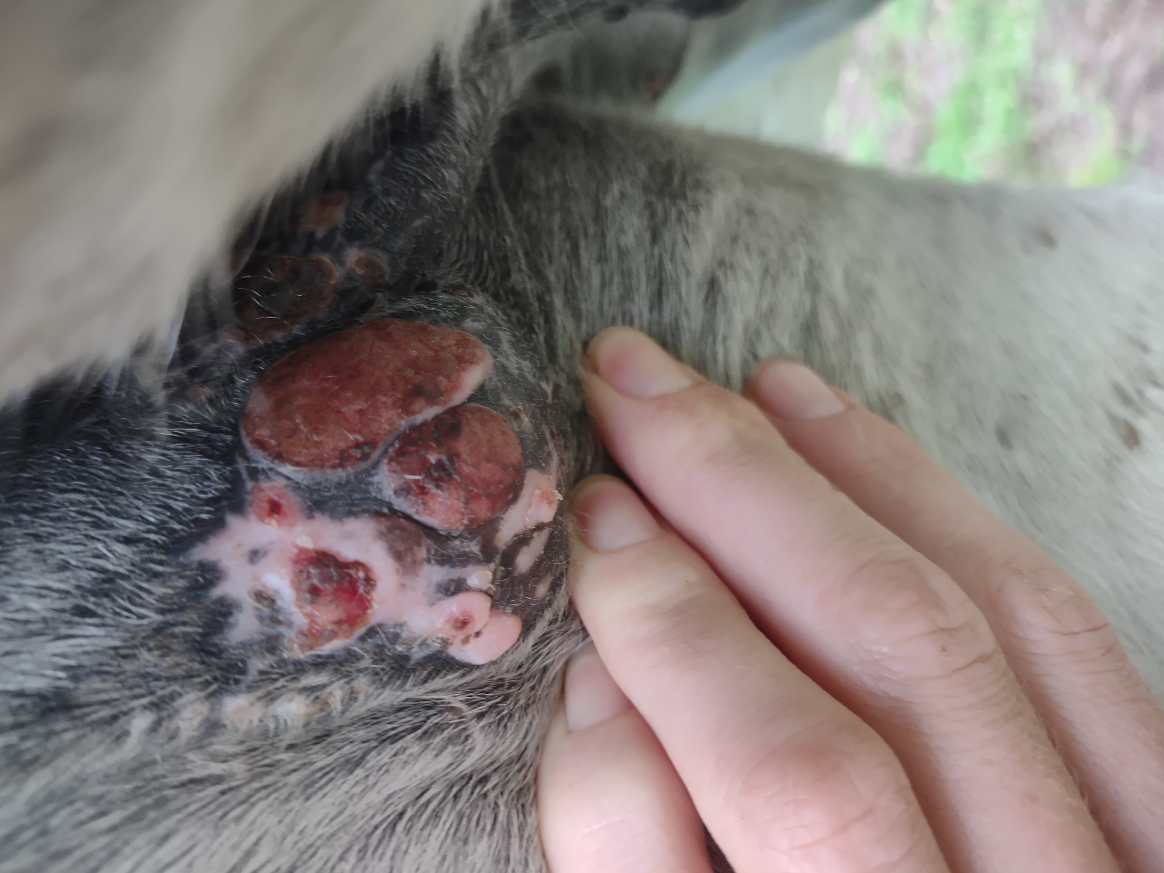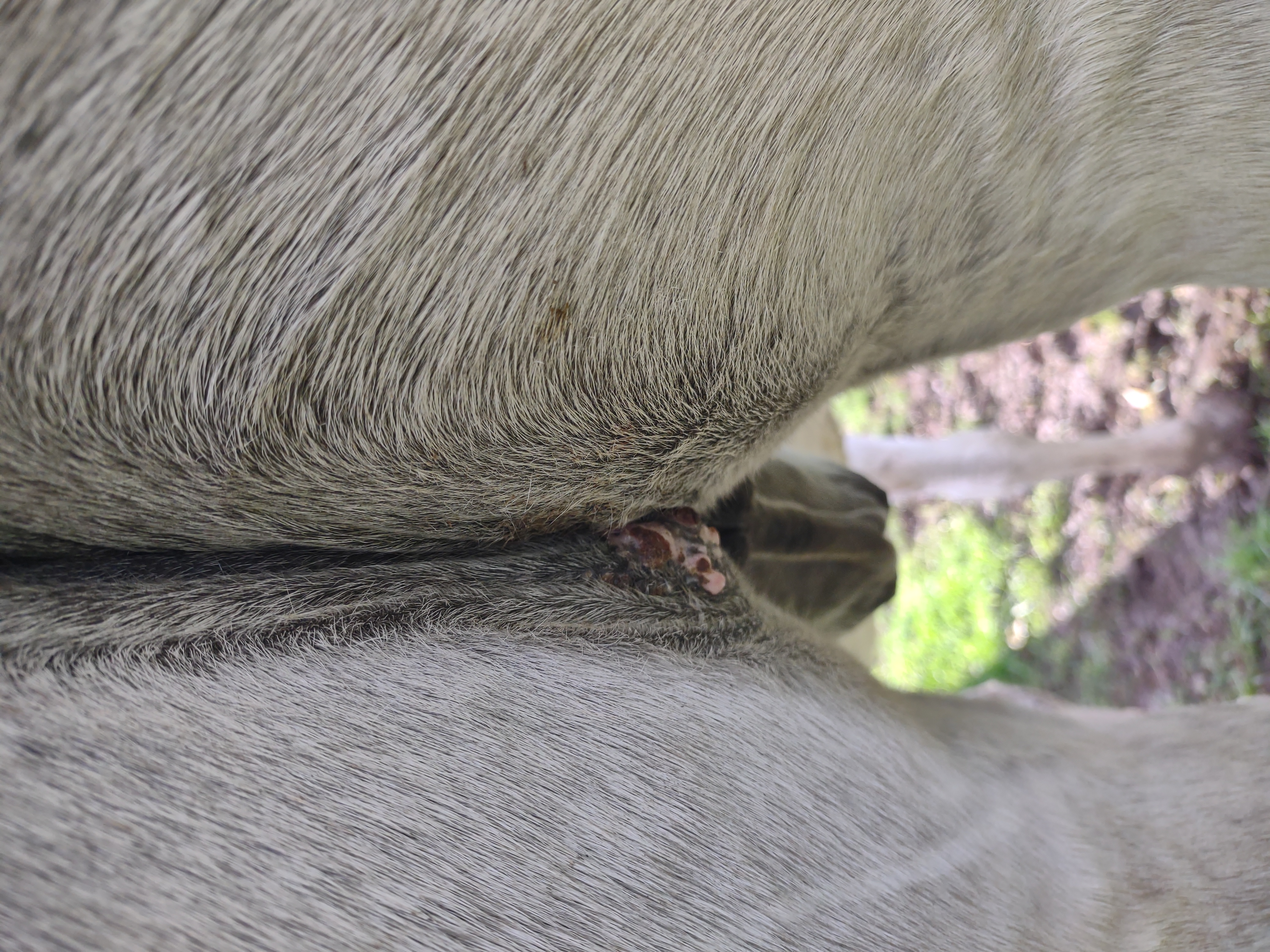 Am 28.10. war ein schöner rosa Rand mit sehr dunkler flacher Kruste innen. Wie aus dem Lehrbuch. Testweise nochmal mit 1:1 nur in der Mitte drauf. Danach kam wieder dickere Kruste, daher dann mit 1:3 weitergemacht. Bilder Oberschenkel