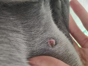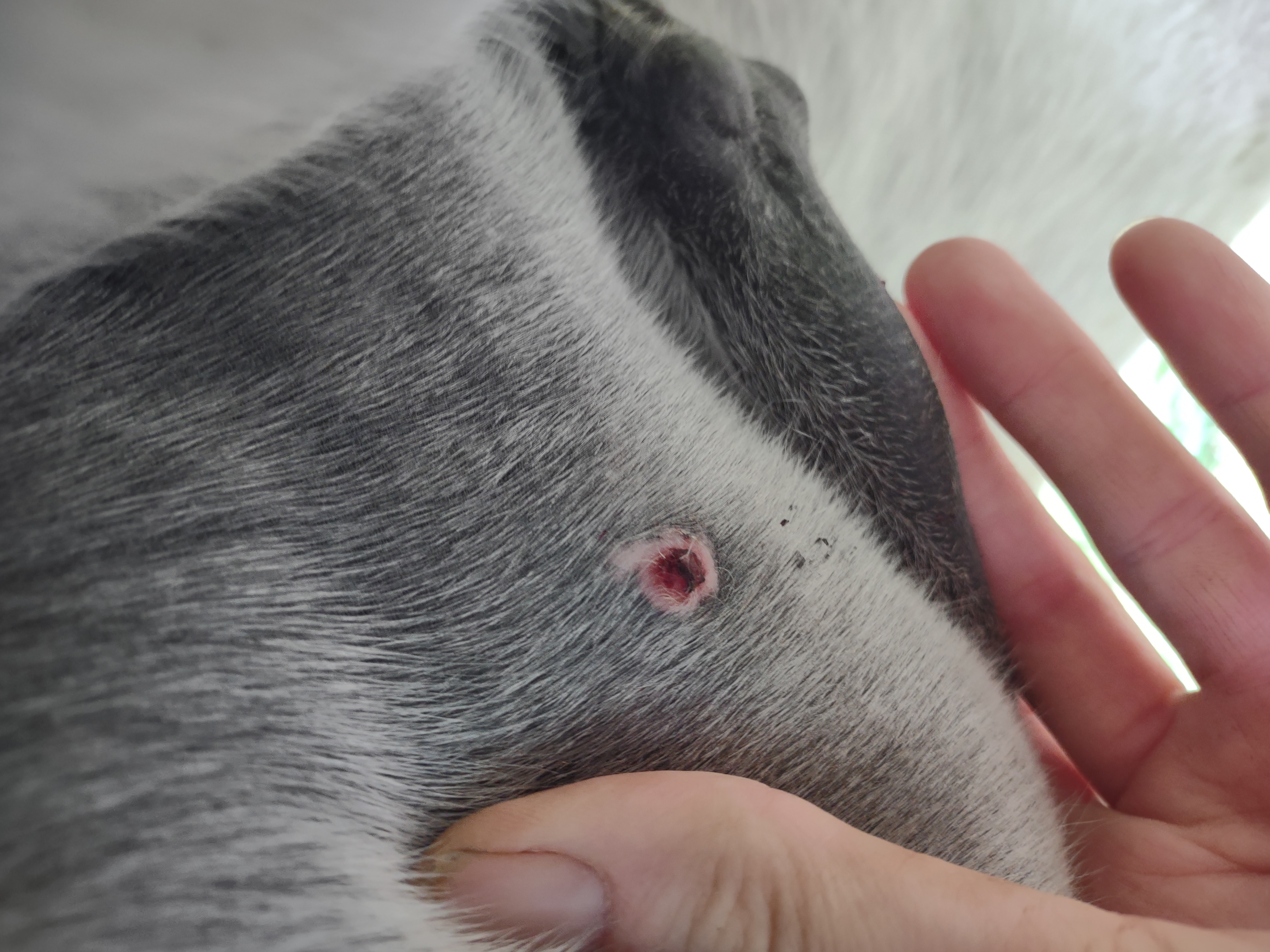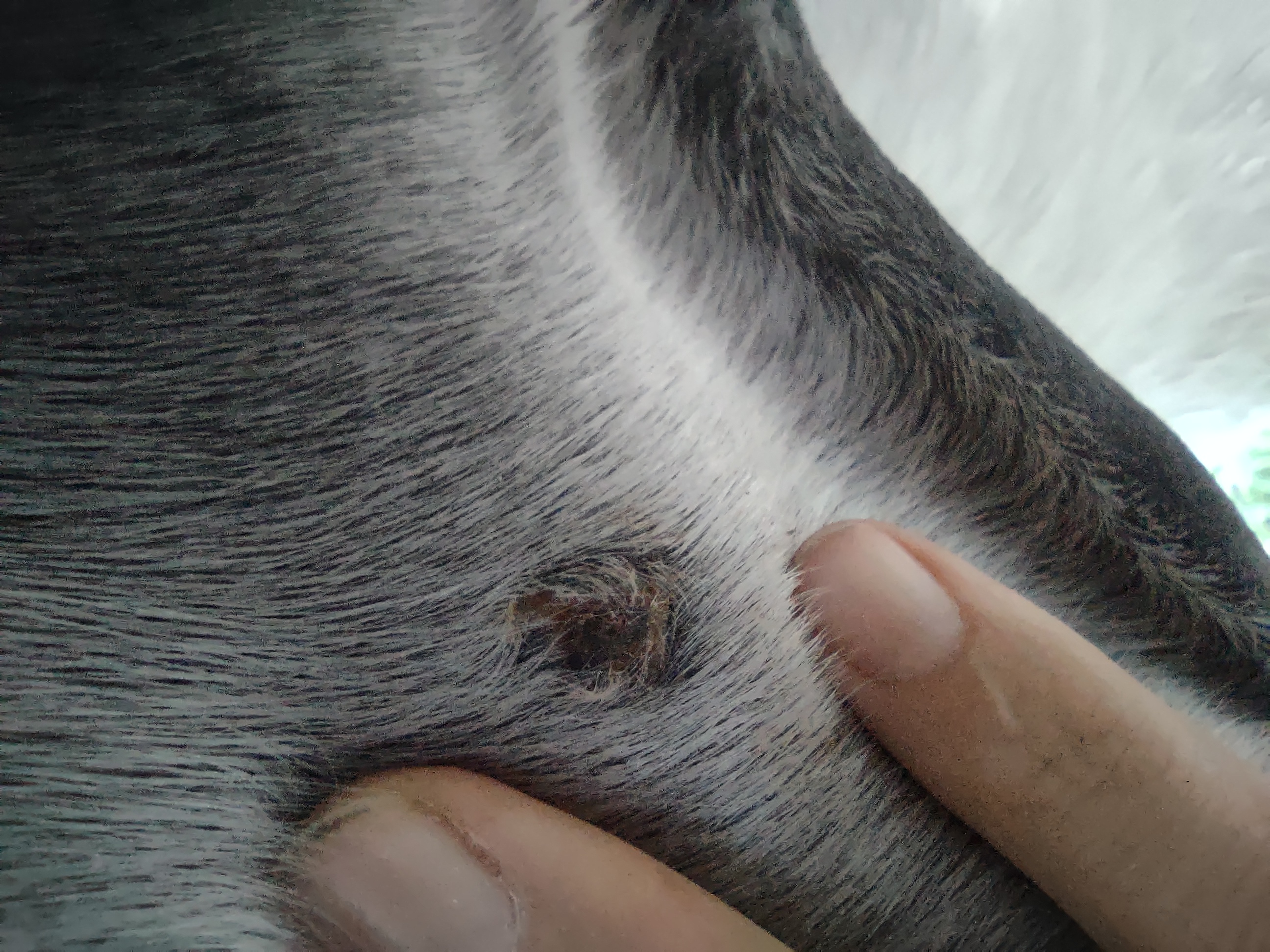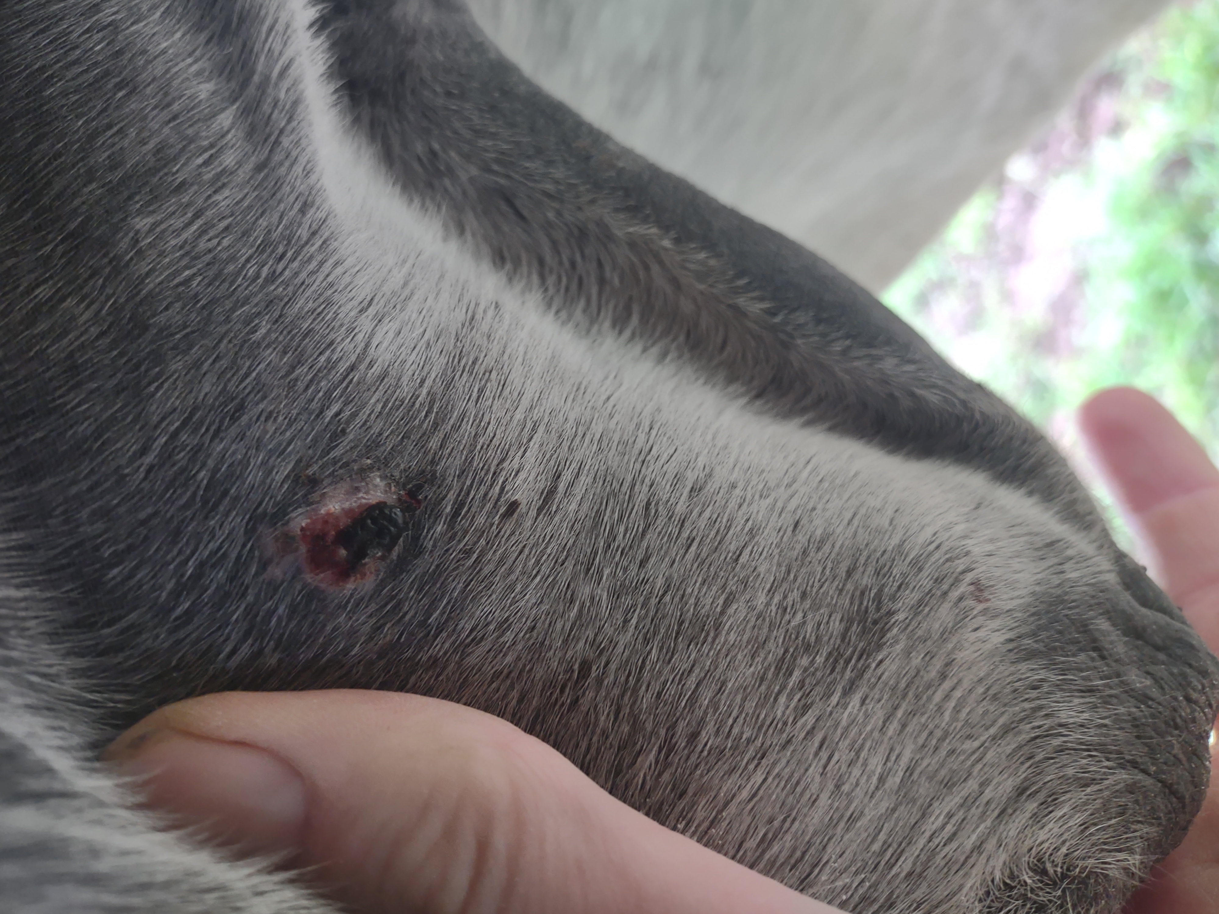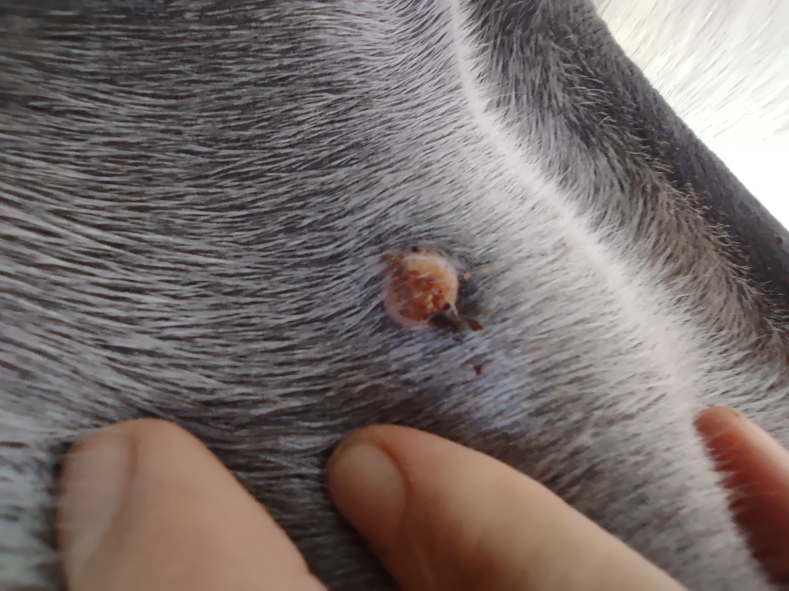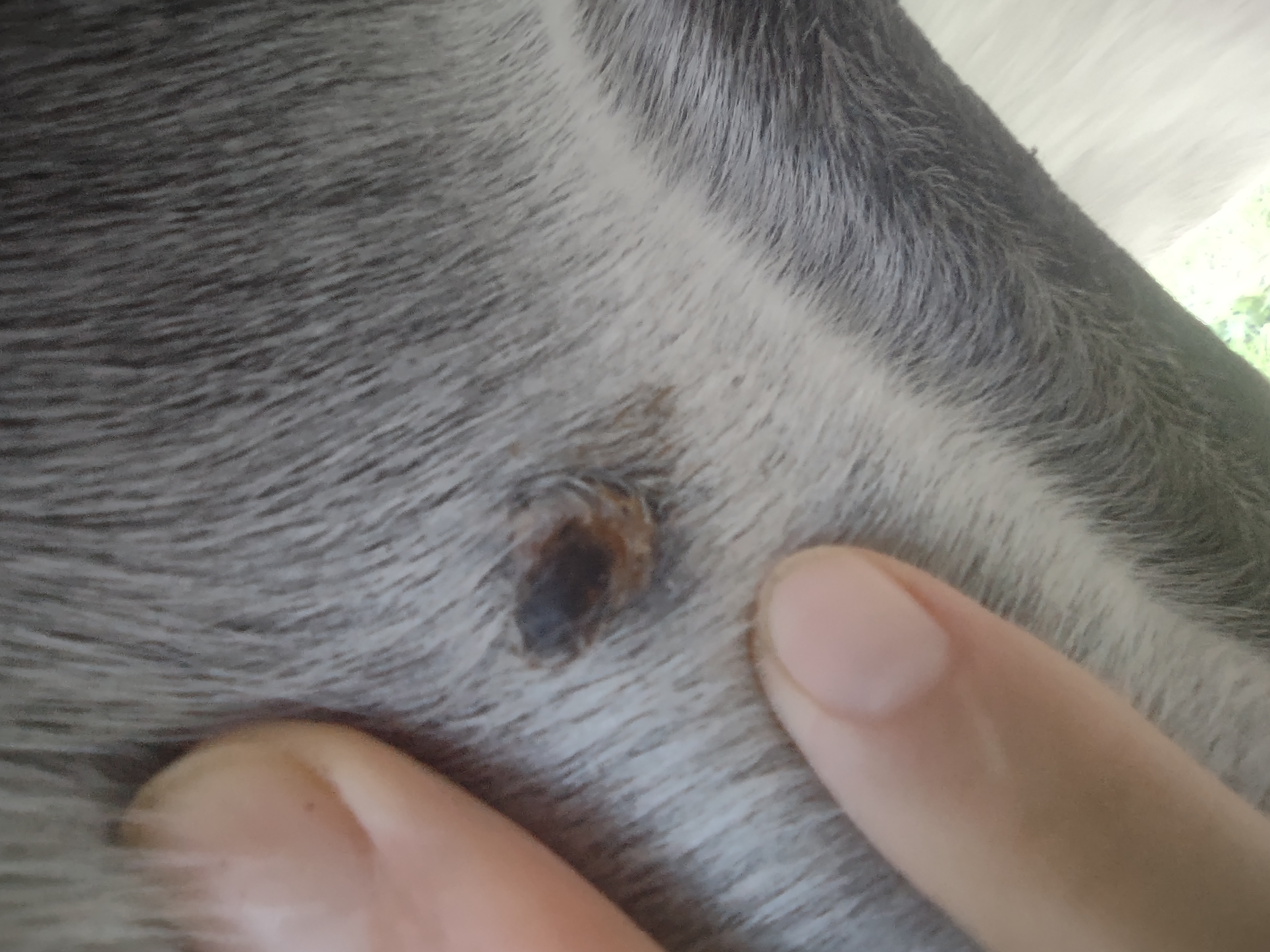 Sieht etwas dunkler aus. Große Kruste oben Liste sich schon leicht.