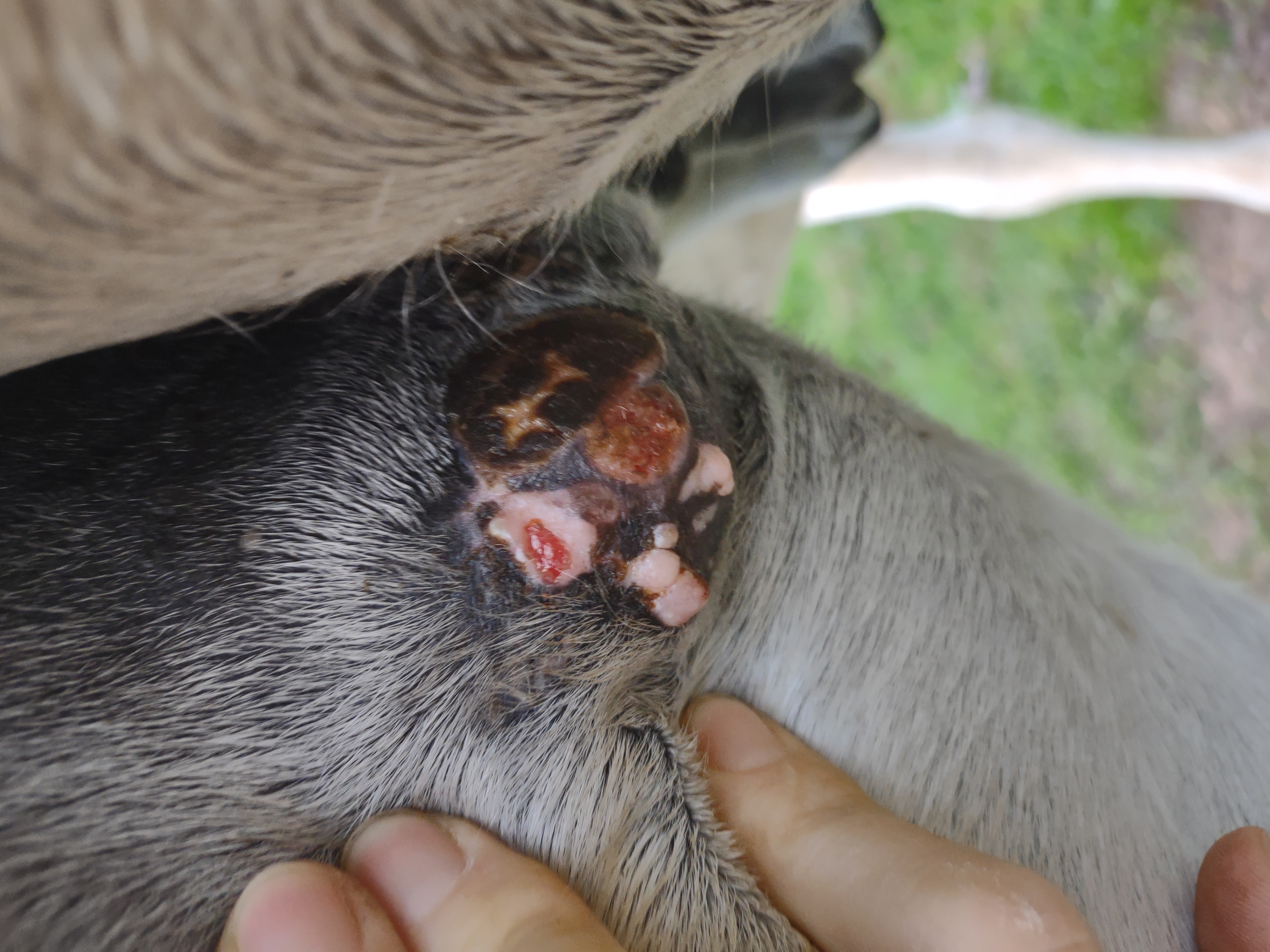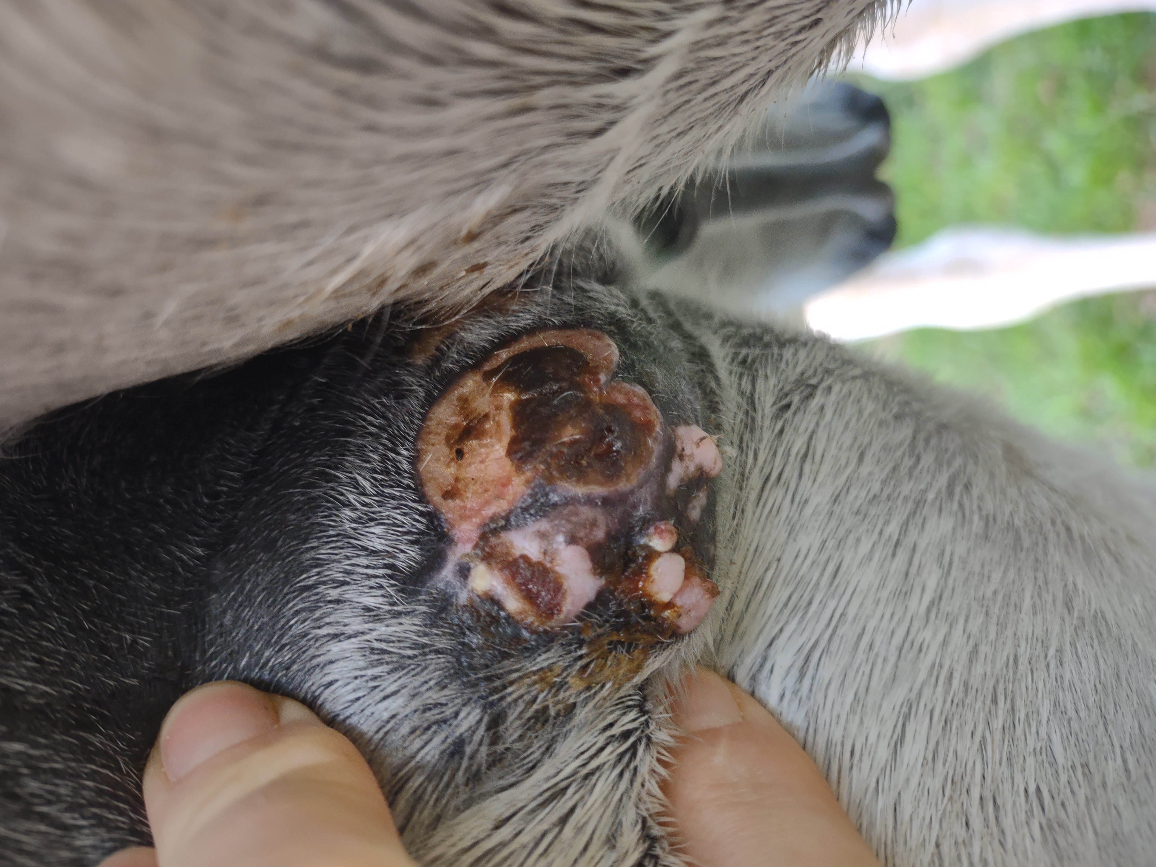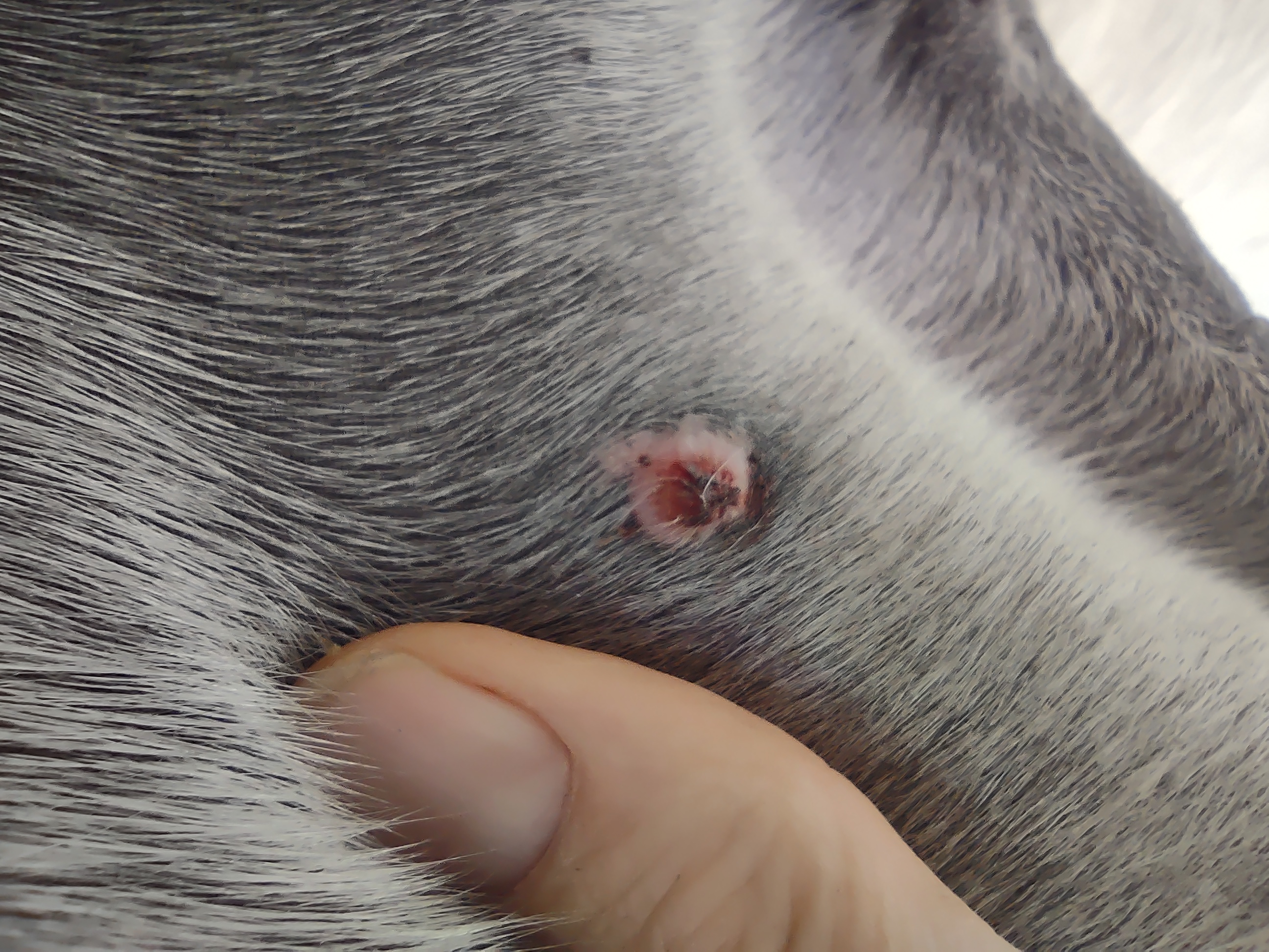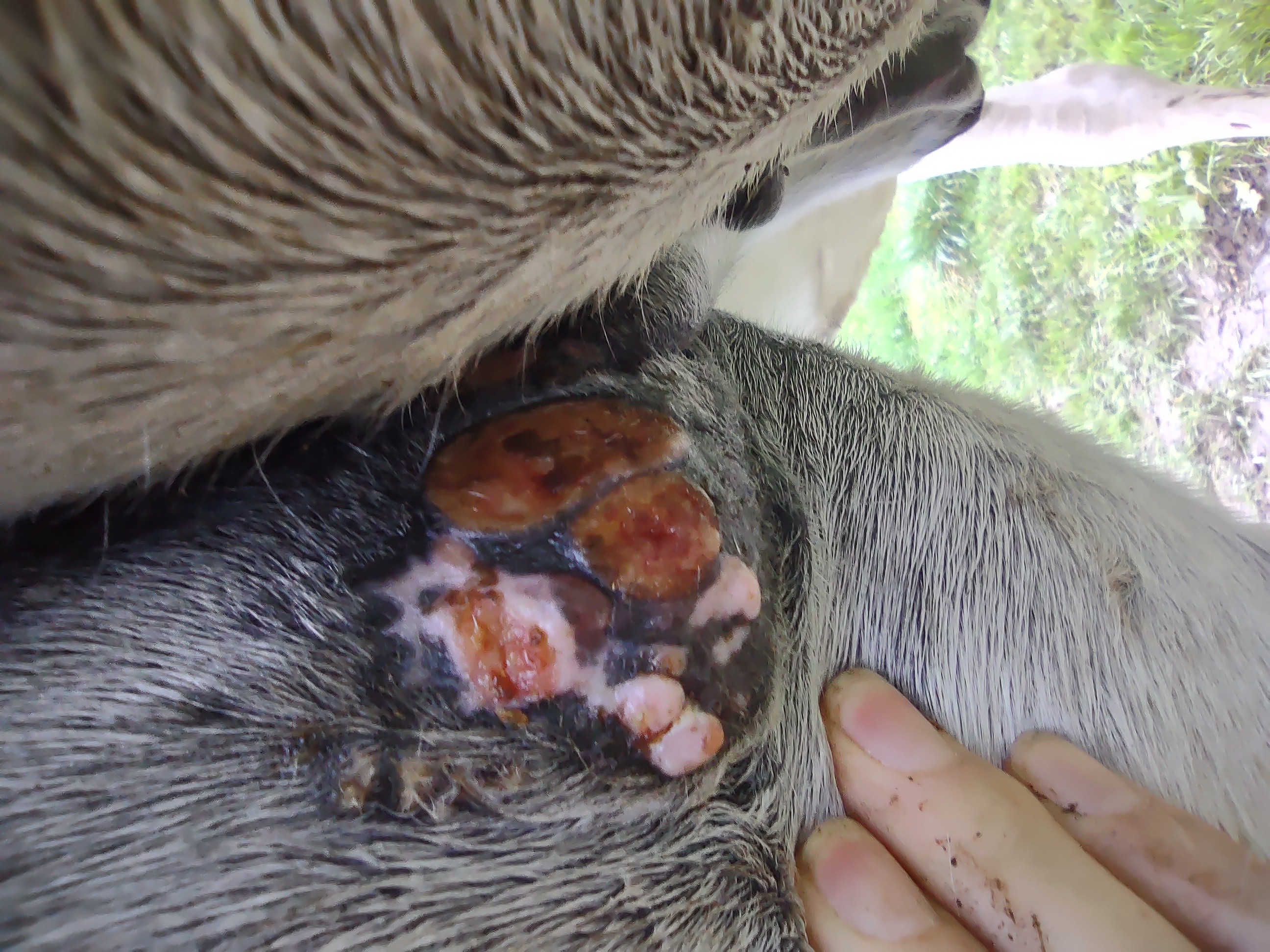 Heute wieder aufgeweichtere Oberfläche der offenen Stellen, leicht gelblich.