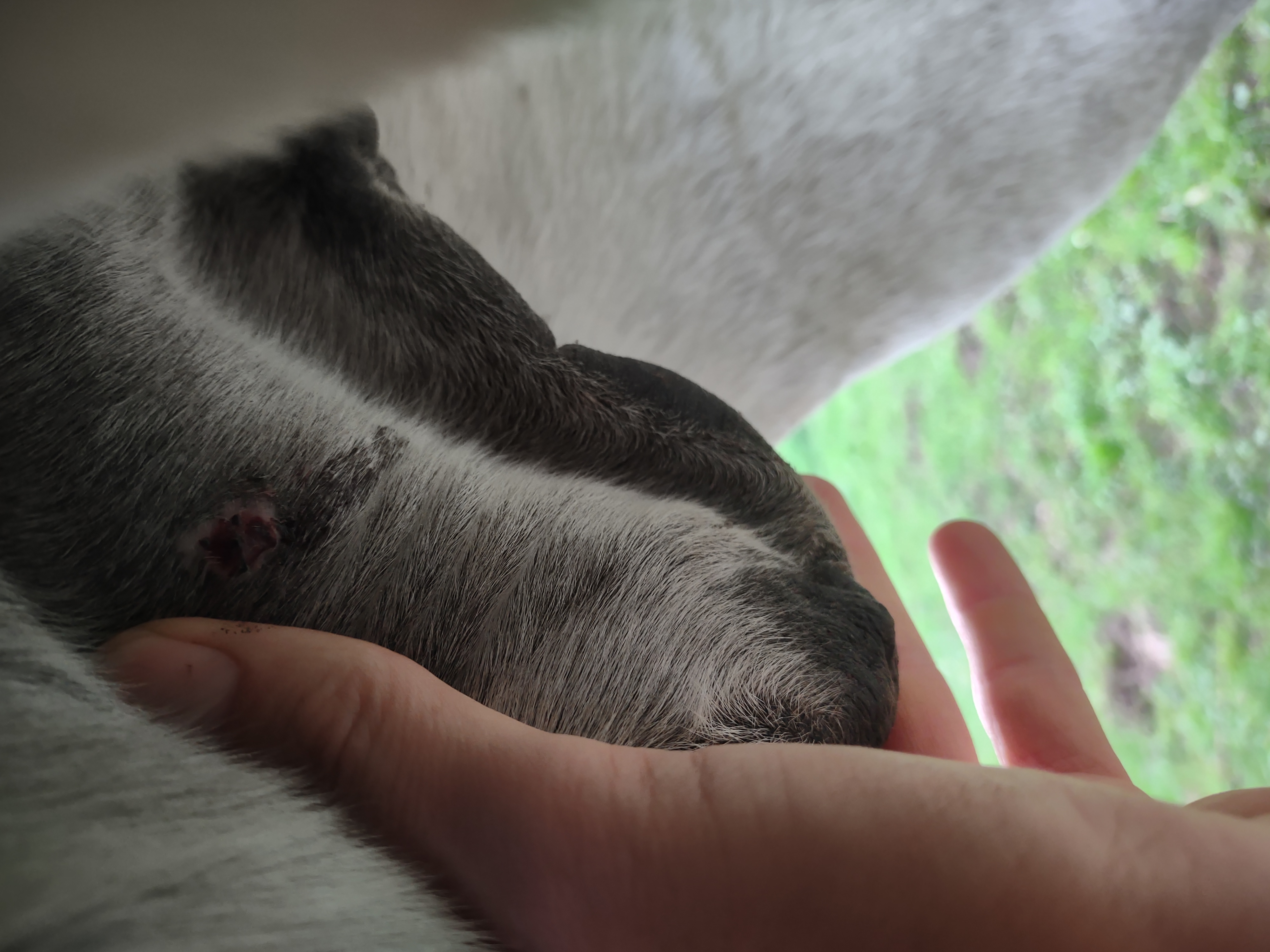 Sieht etwas dunkler aus. Große Kruste oben Liste sich schon leicht.