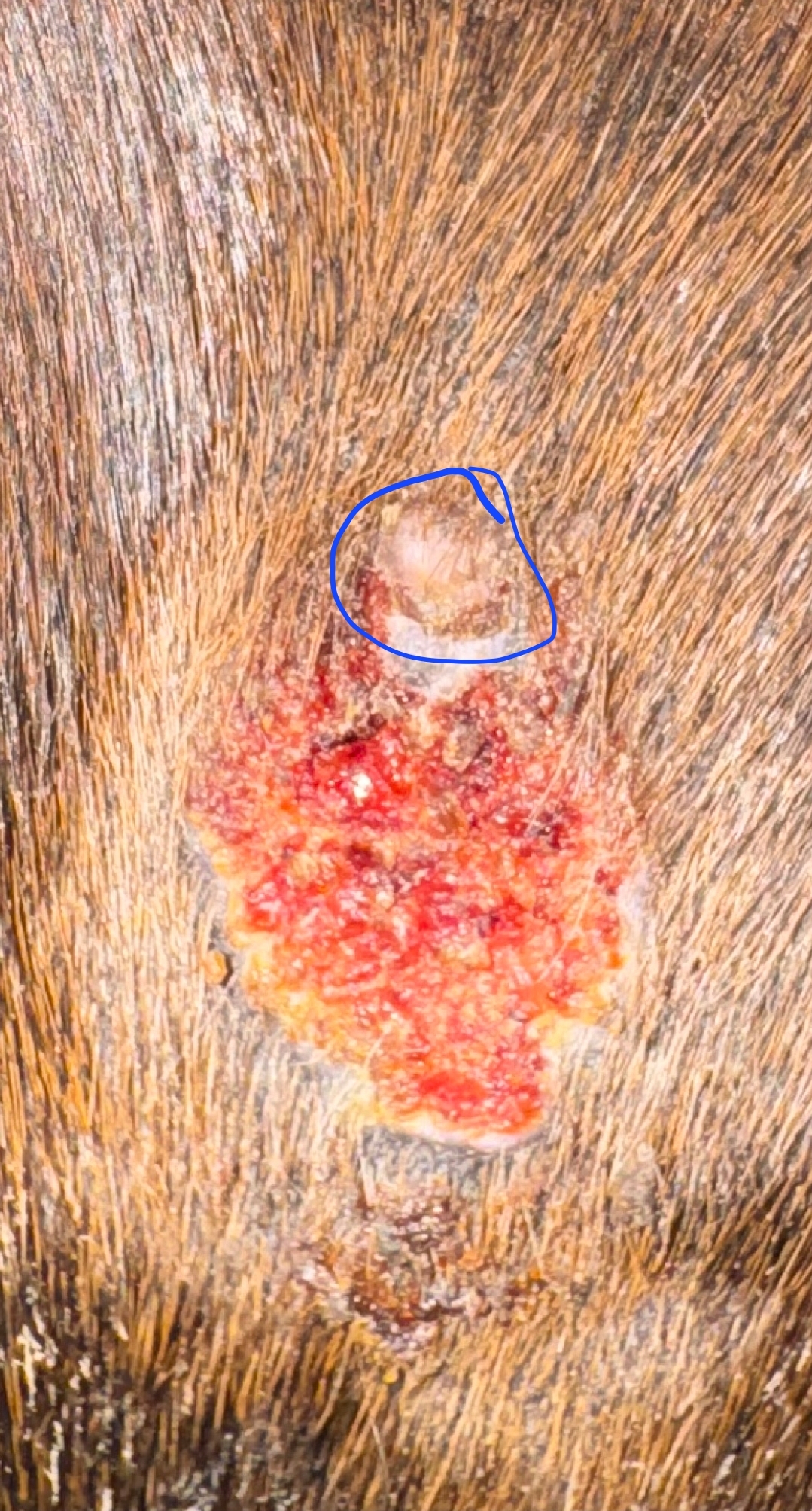 Das sieht alles recht gut aus und ich möchte herausfinden, ob es heilt. Nur dieser blaue Knopf ist auffällig. Scheint das nur so oder ist das so?