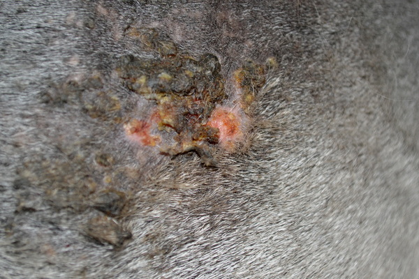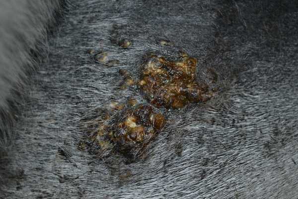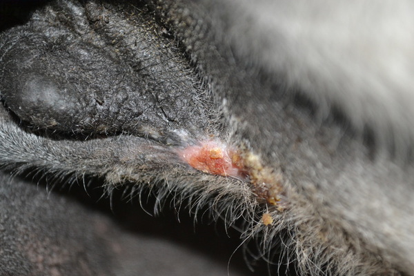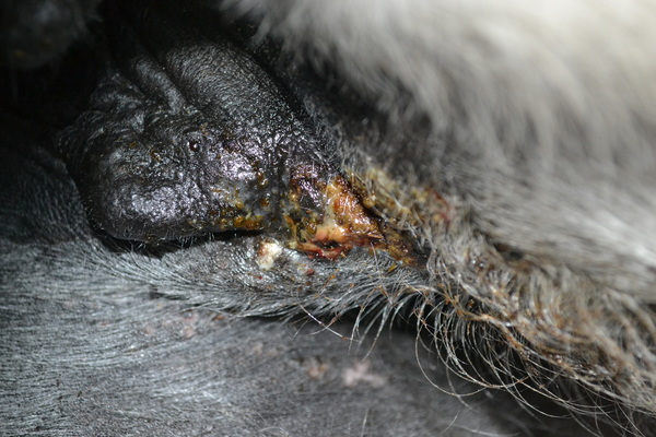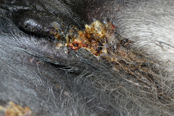 Heute war eine andere Stelle frisch offen, in der Mitte krustet es etc.