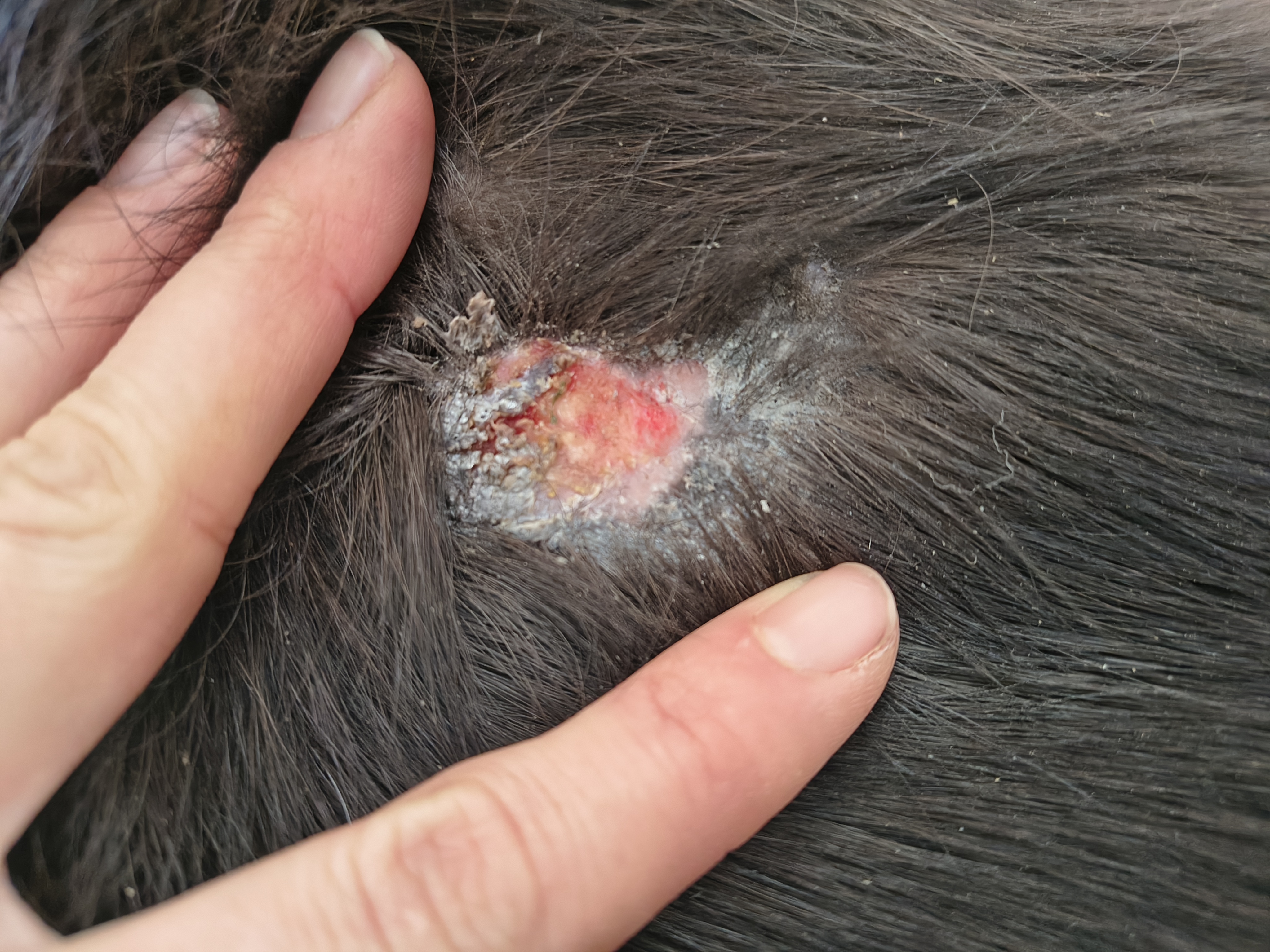 Die Stelle am Hals, die auch gelasert würde ist vorgestern aufgebrochen und es sind die oberen krustigen Stellen abgefallen und es hat geblutet. Durch das Winterfell war mir nicht aufgefallen, dass die Haut dort krustig war, dachte, es ist Narbengewebe. Dabei war das Lasern bereits im September und ich habe überhaupt nichts mehr an der Stelle gemacht. Kann es sein, dass das Sarkoid von alleine abfällt? Vielleicht auch als Reaktion auf die Pilzimpfung? Da es aber unten drunter blutig ist und keine normale Haut habe ich heute eine Schicht Dermequin drauf, damit sich wieder eine Kruste bildet. So was hatte ich noch nie, bin verunsichert, ob das nun gut ist oder schlecht.