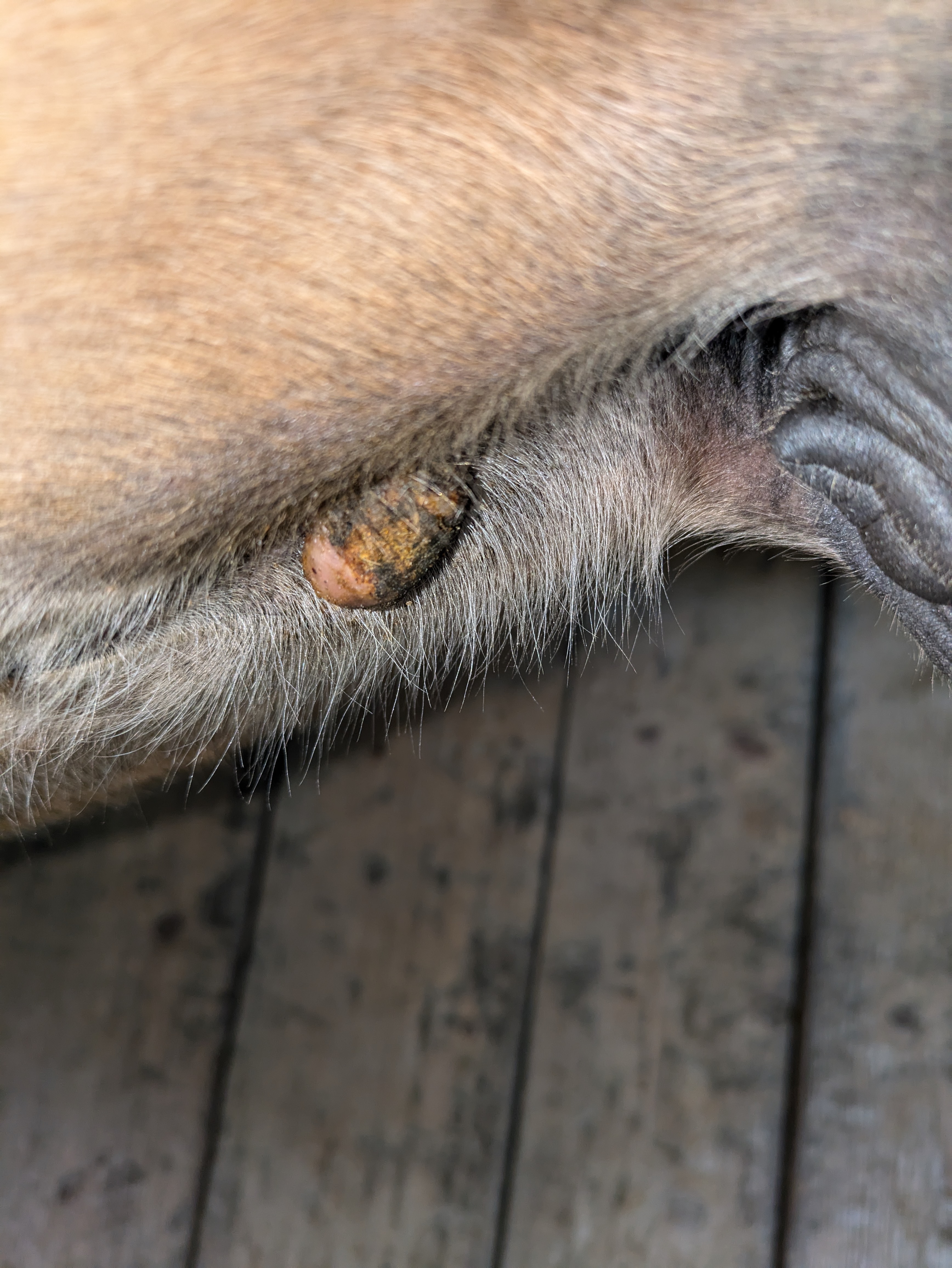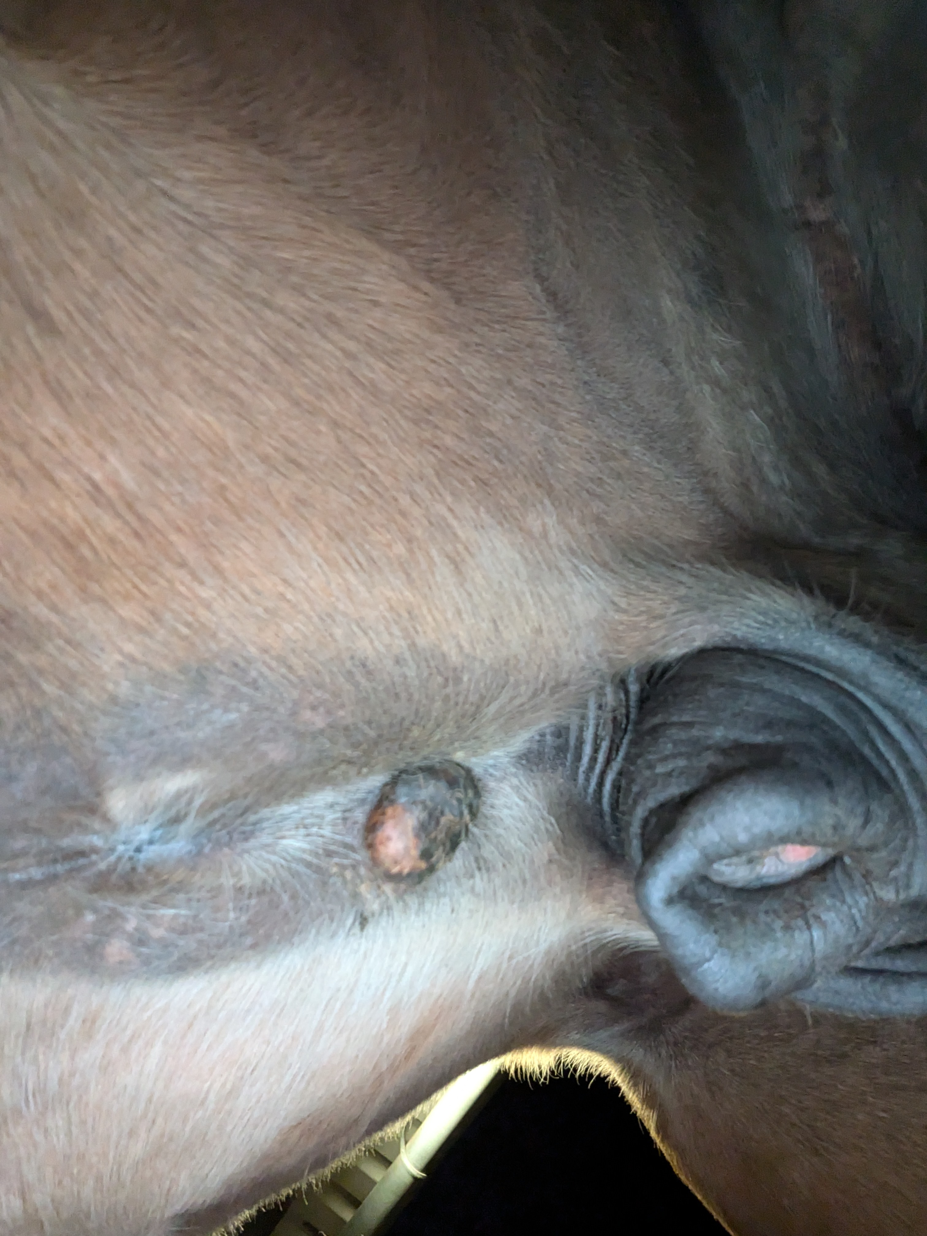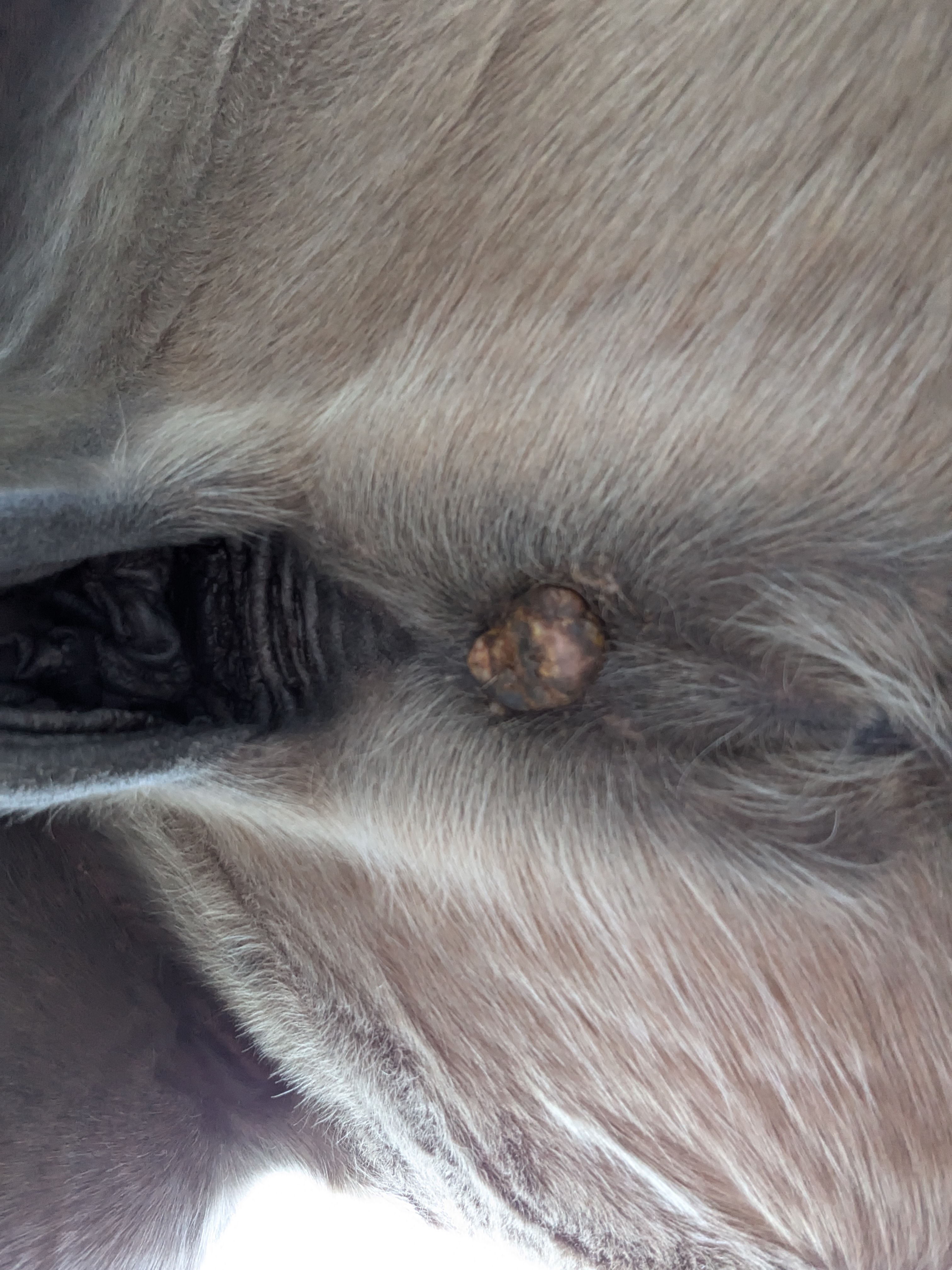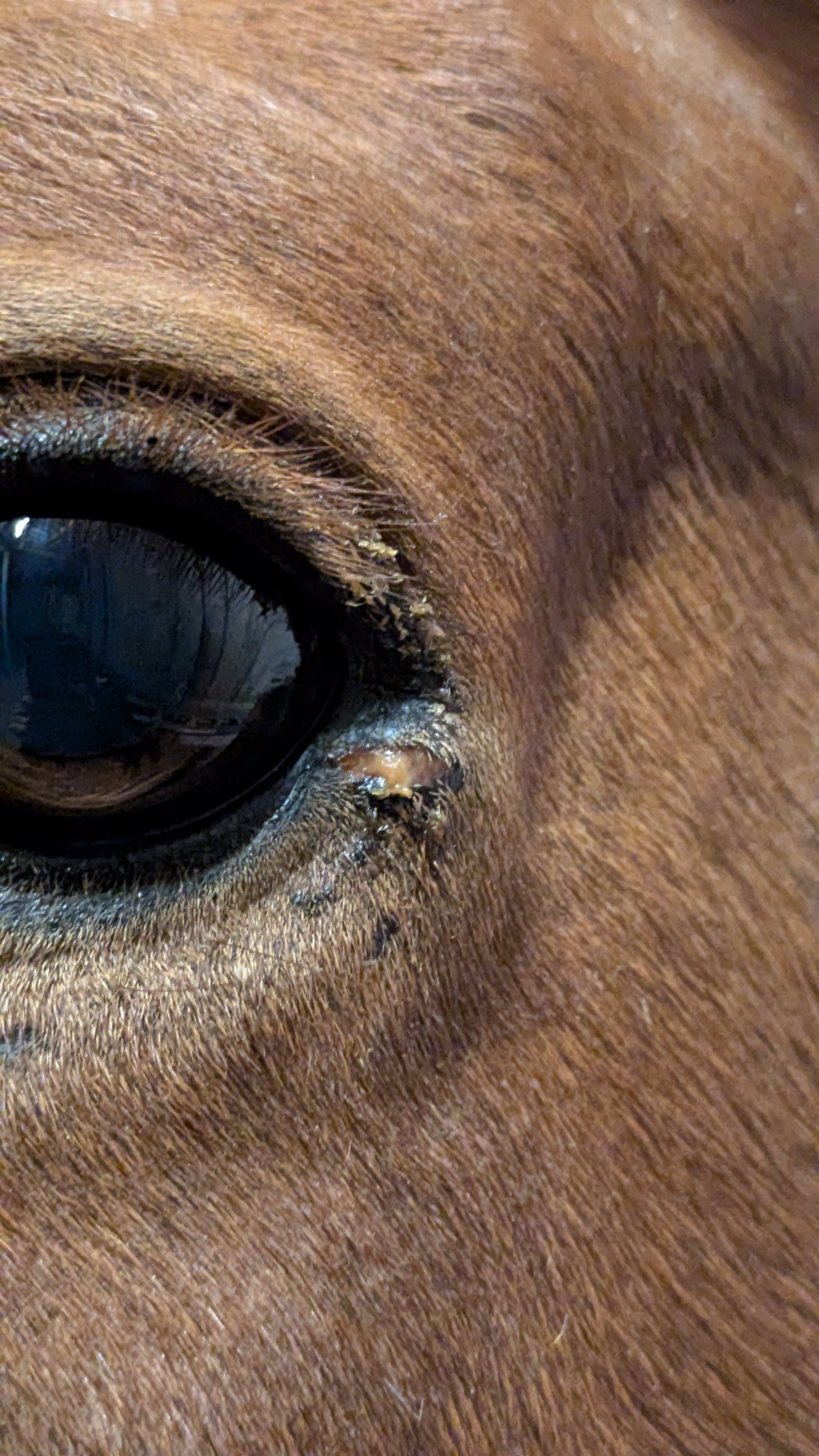 Und heute einen Riesenschreck bekommen - am Auge hat er was wie Grind, von gestern auf heute - kann eigentlich kein Sarkoide sein, oder ..