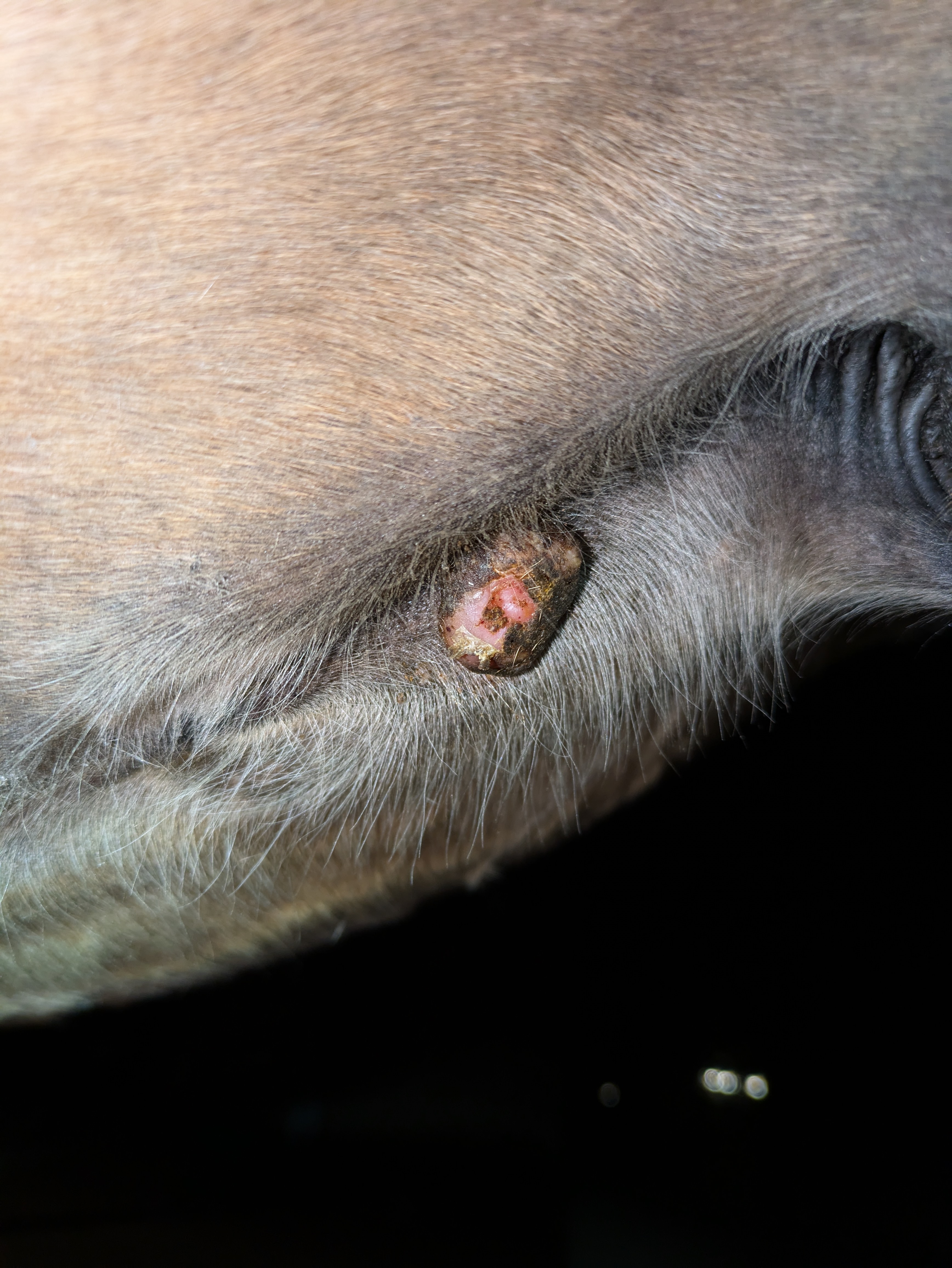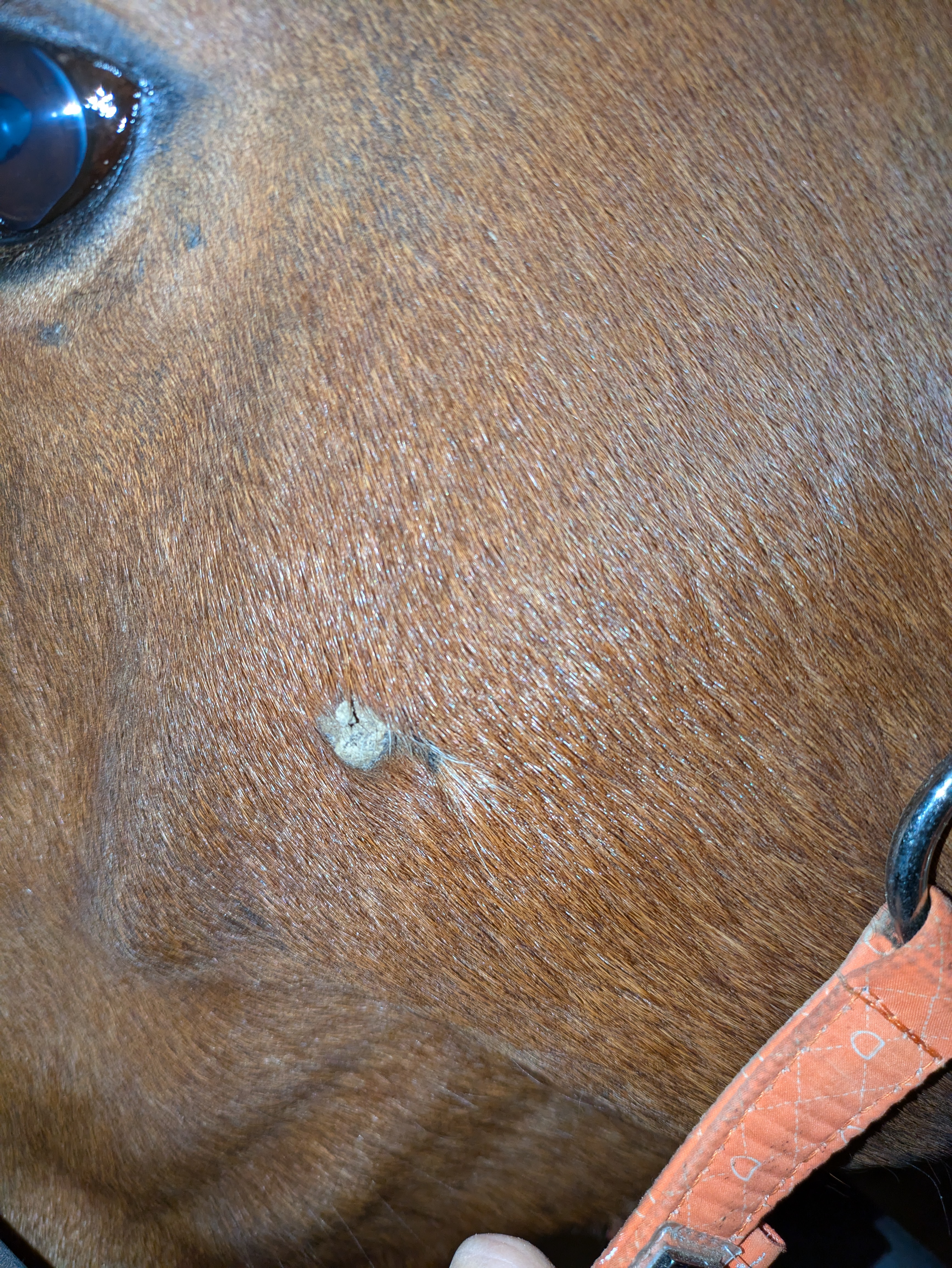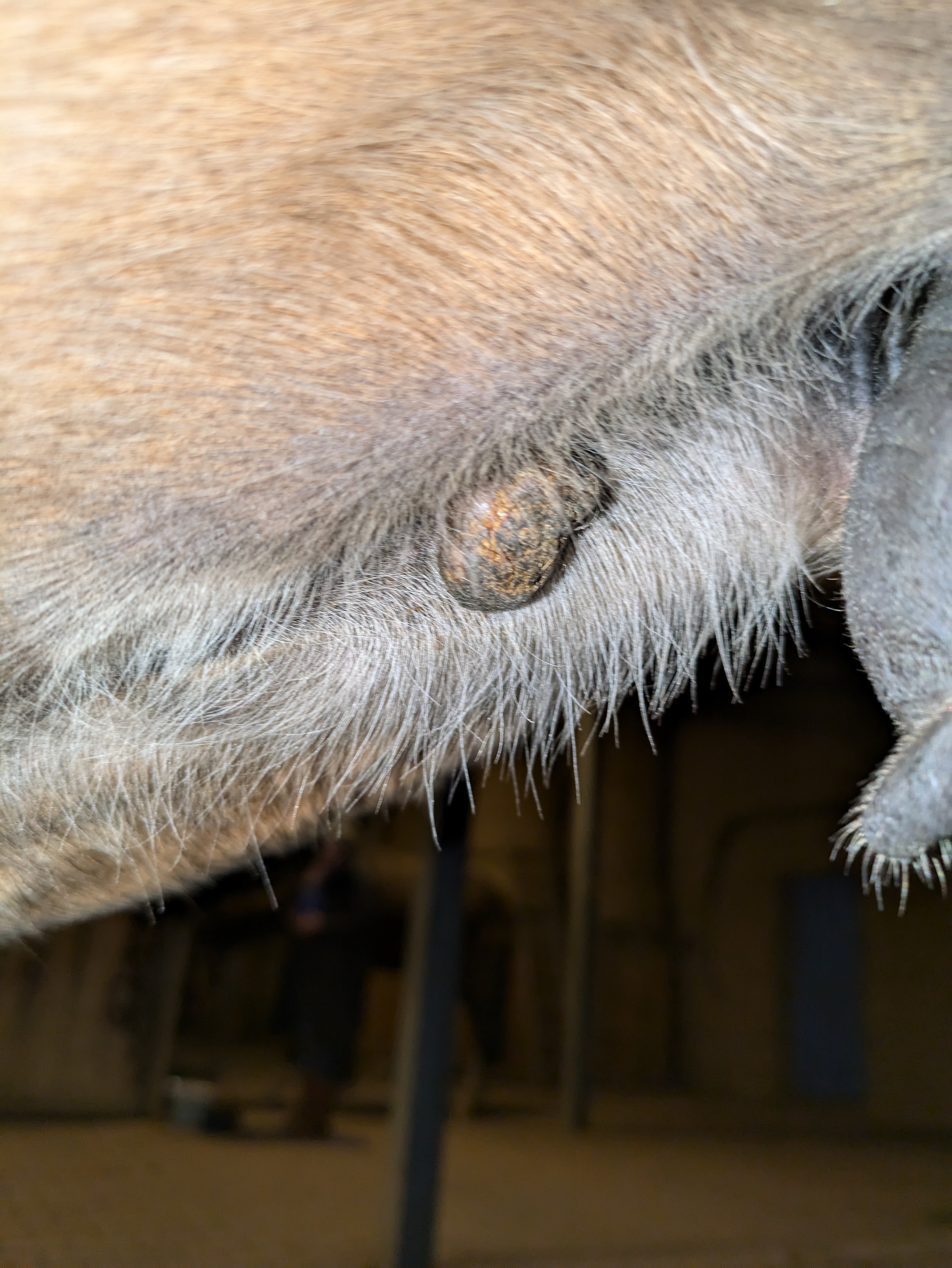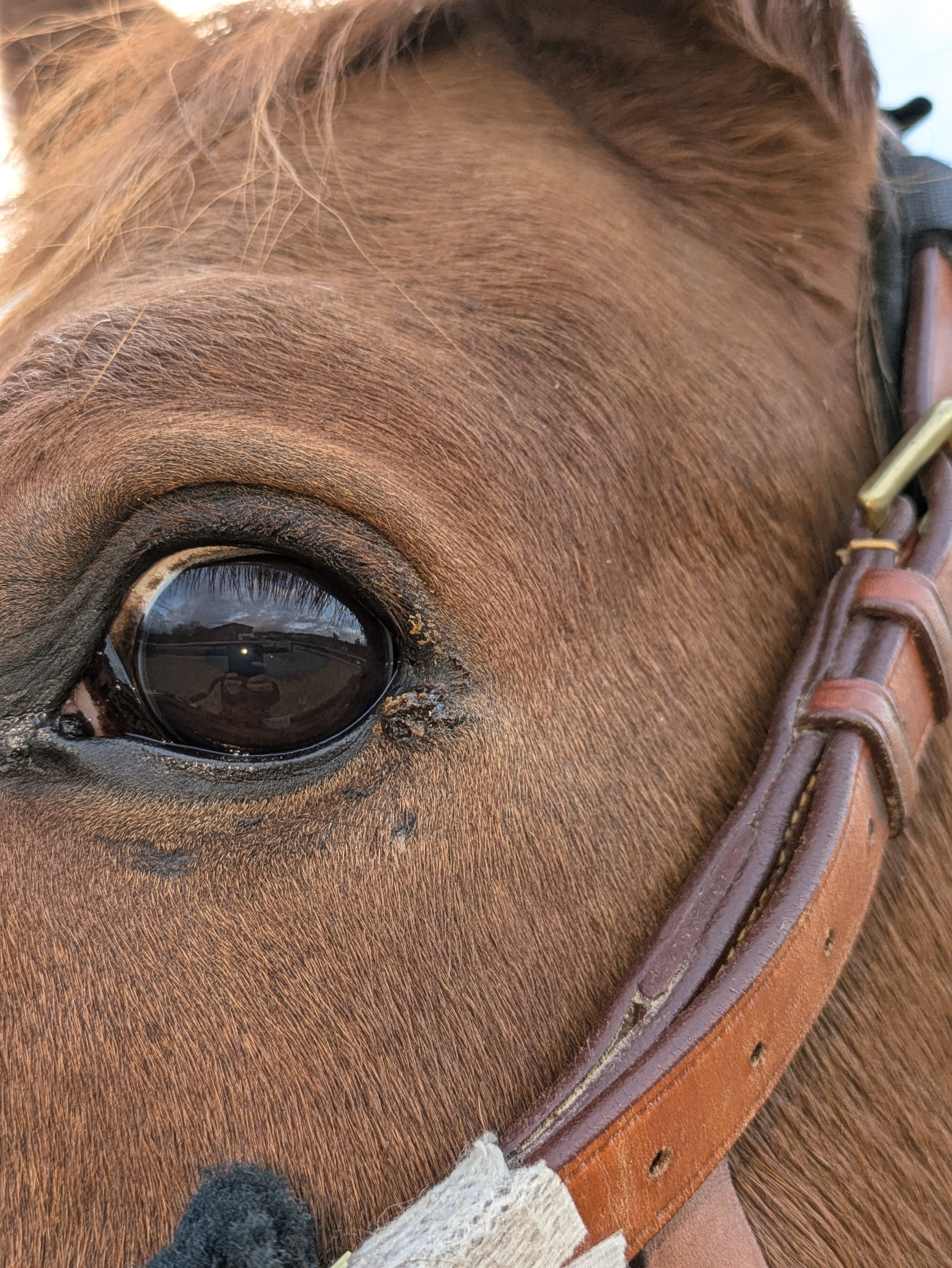 Und heute einen Riesenschreck bekommen - am Auge hat er was wie Grind, von gestern auf heute - kann eigentlich kein Sarkoide sein, oder ..