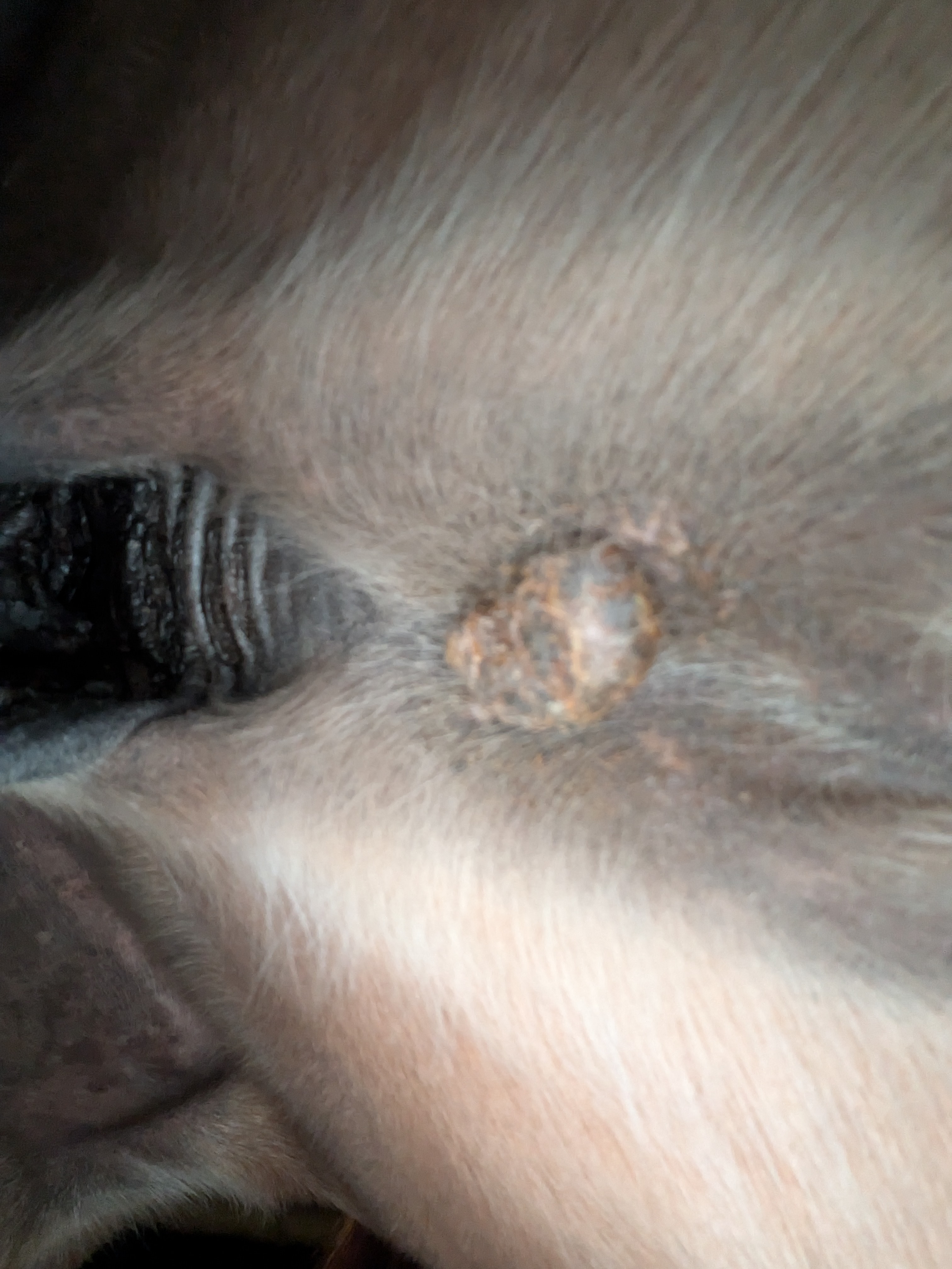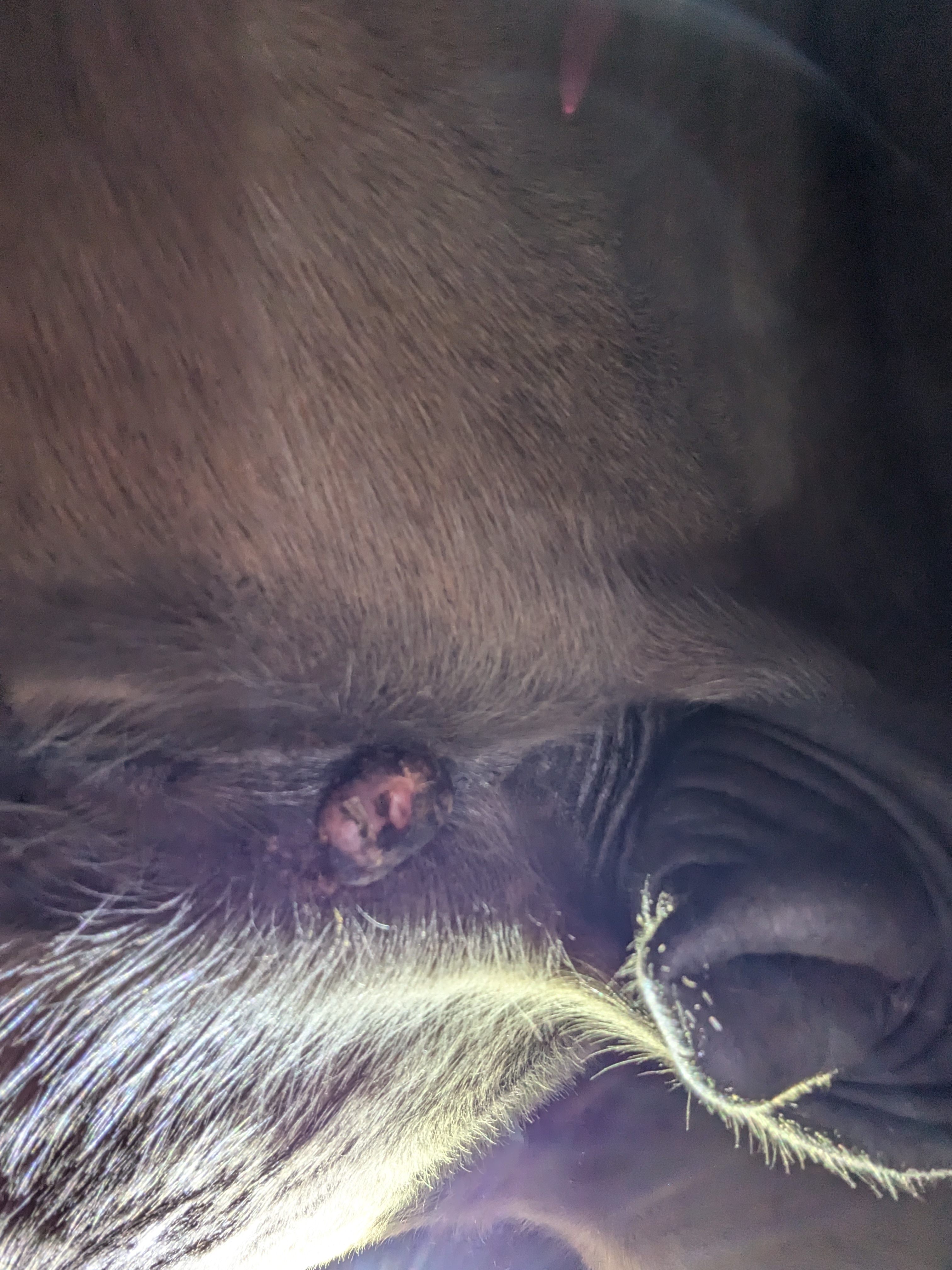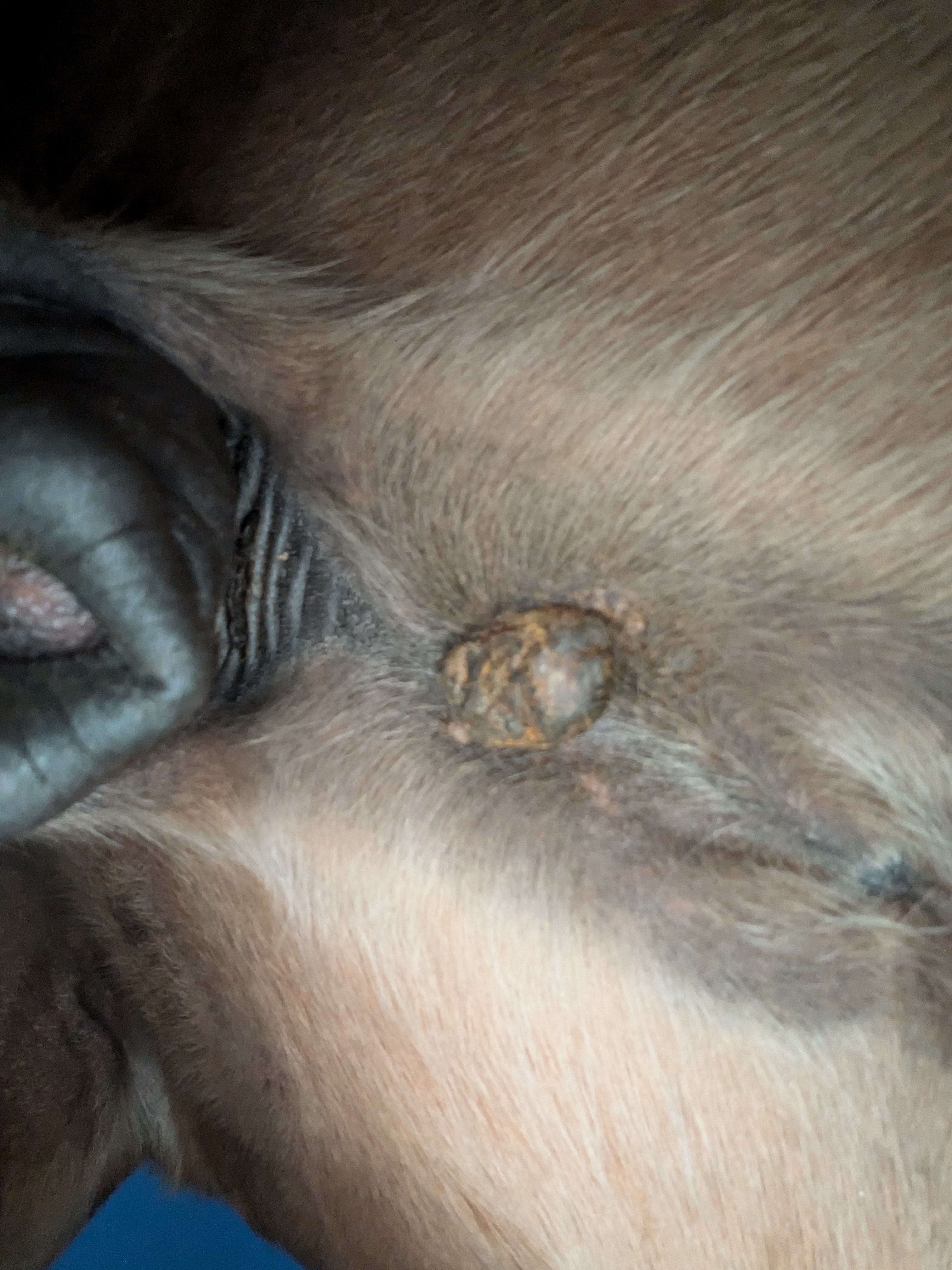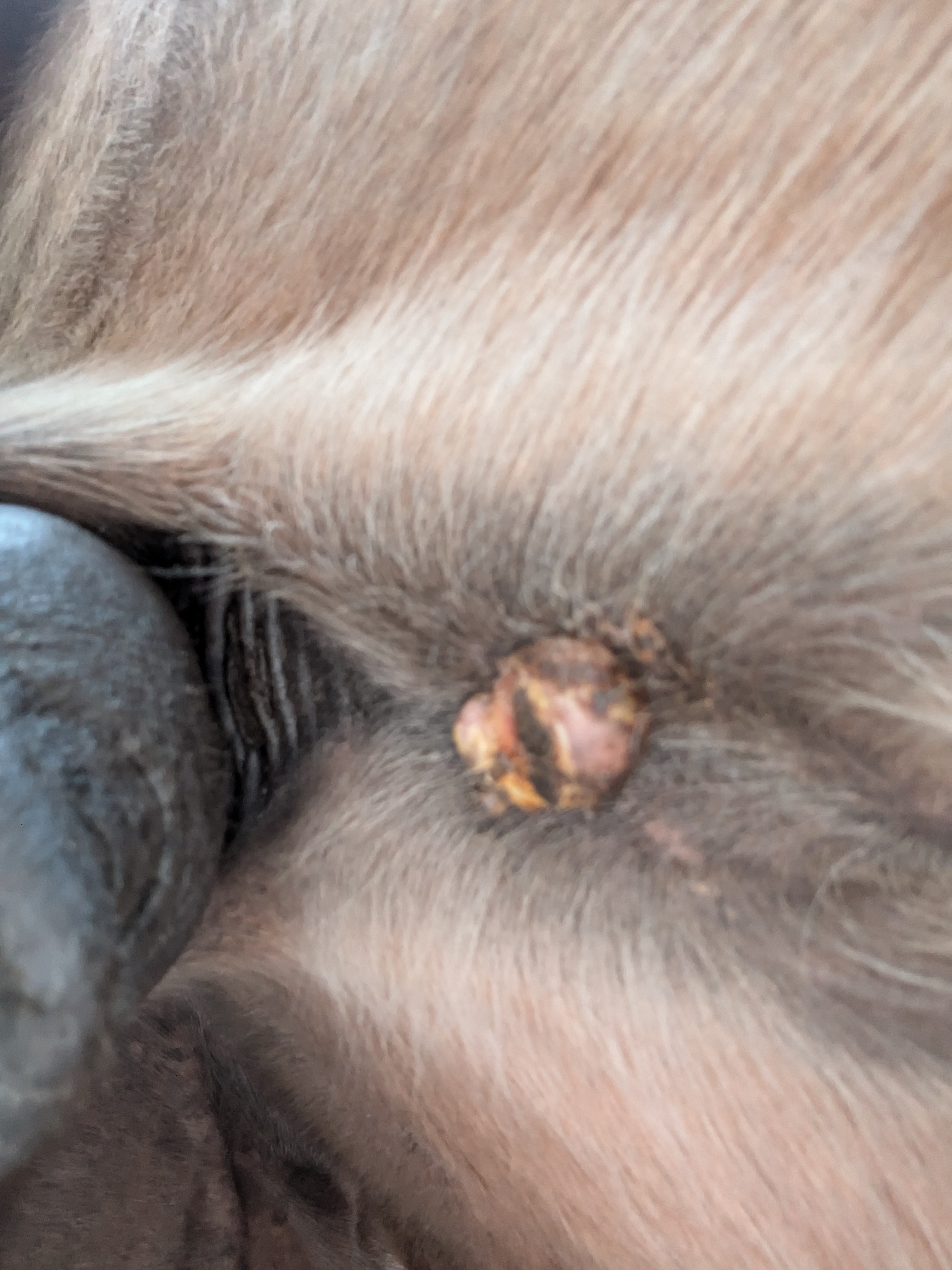 Und heute einen Riesenschreck bekommen - am Auge hat er was wie Grind, von gestern auf heute - kann eigentlich kein Sarkoide sein, oder ..