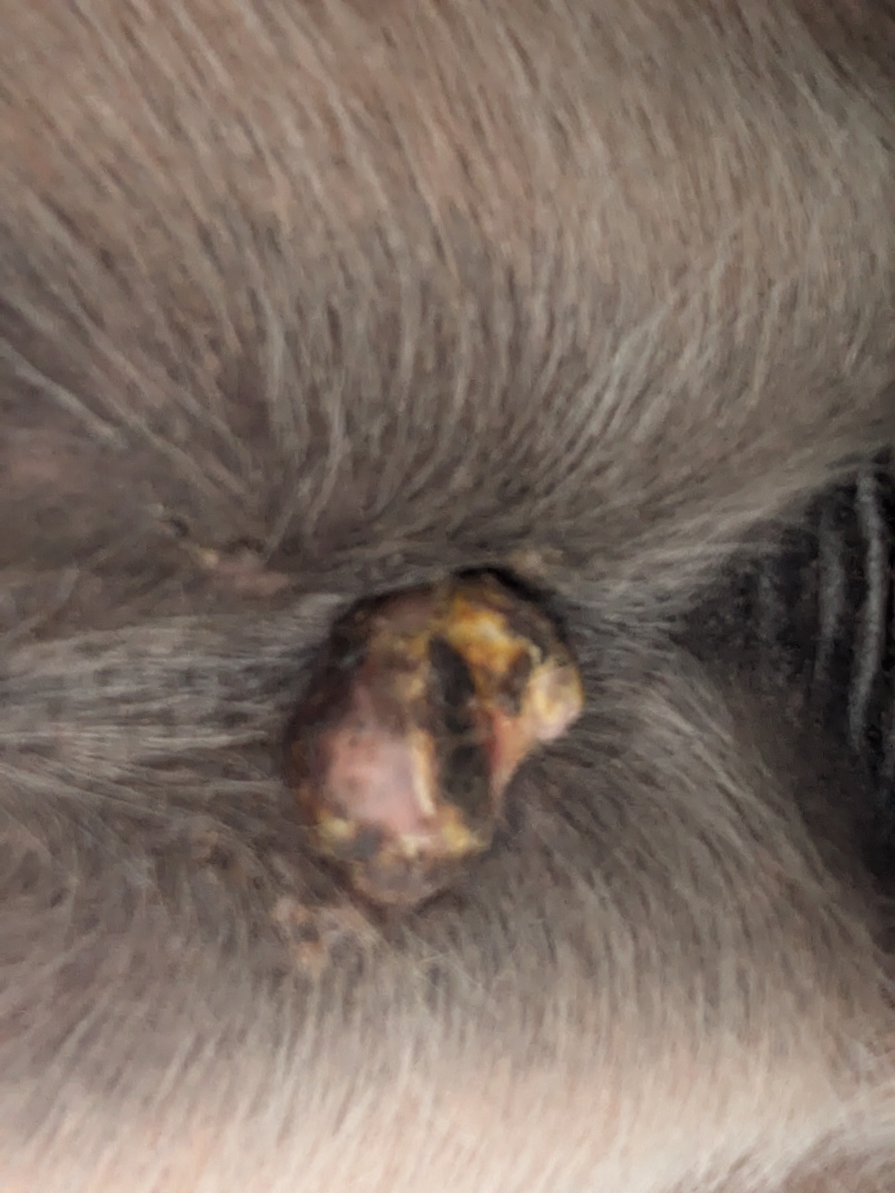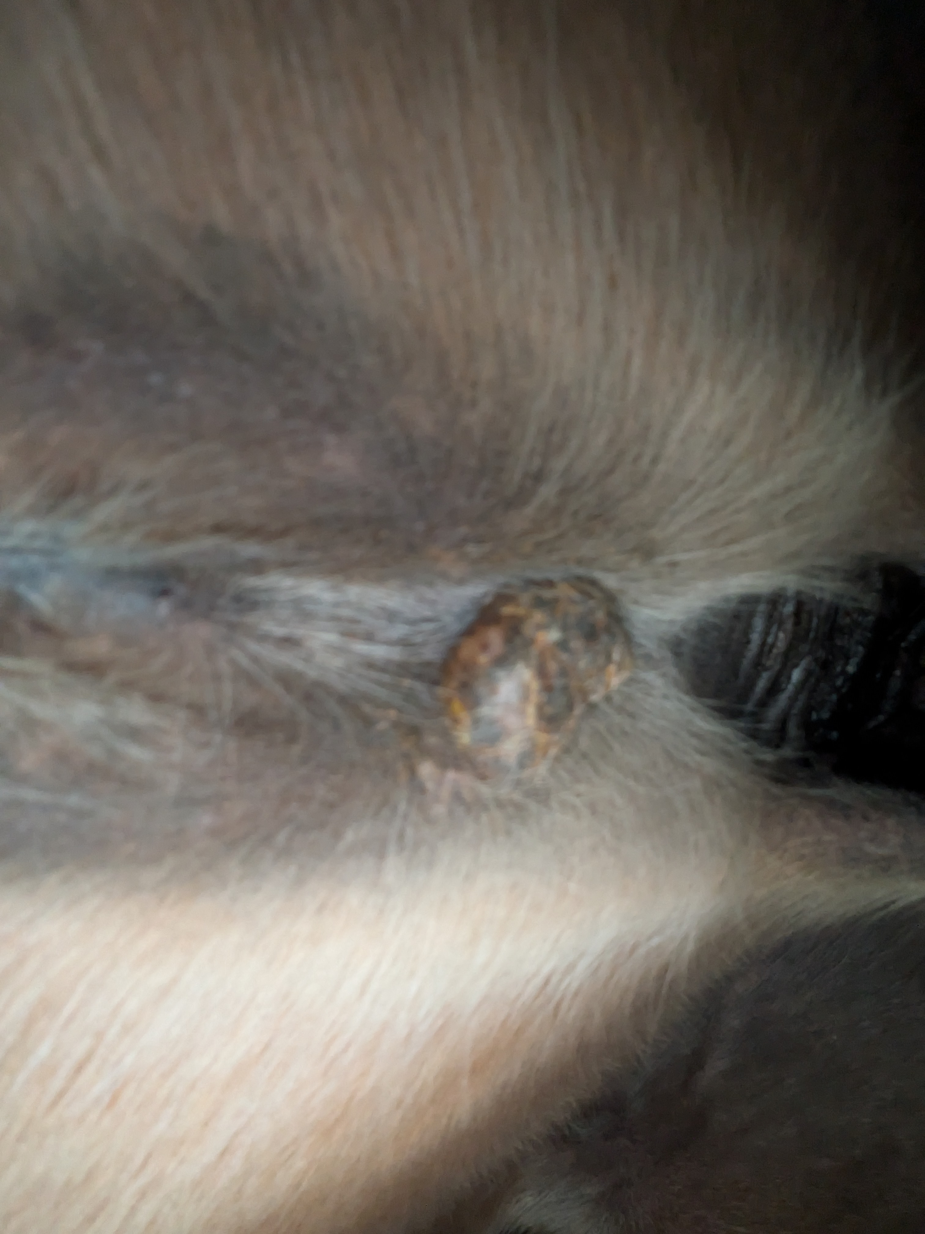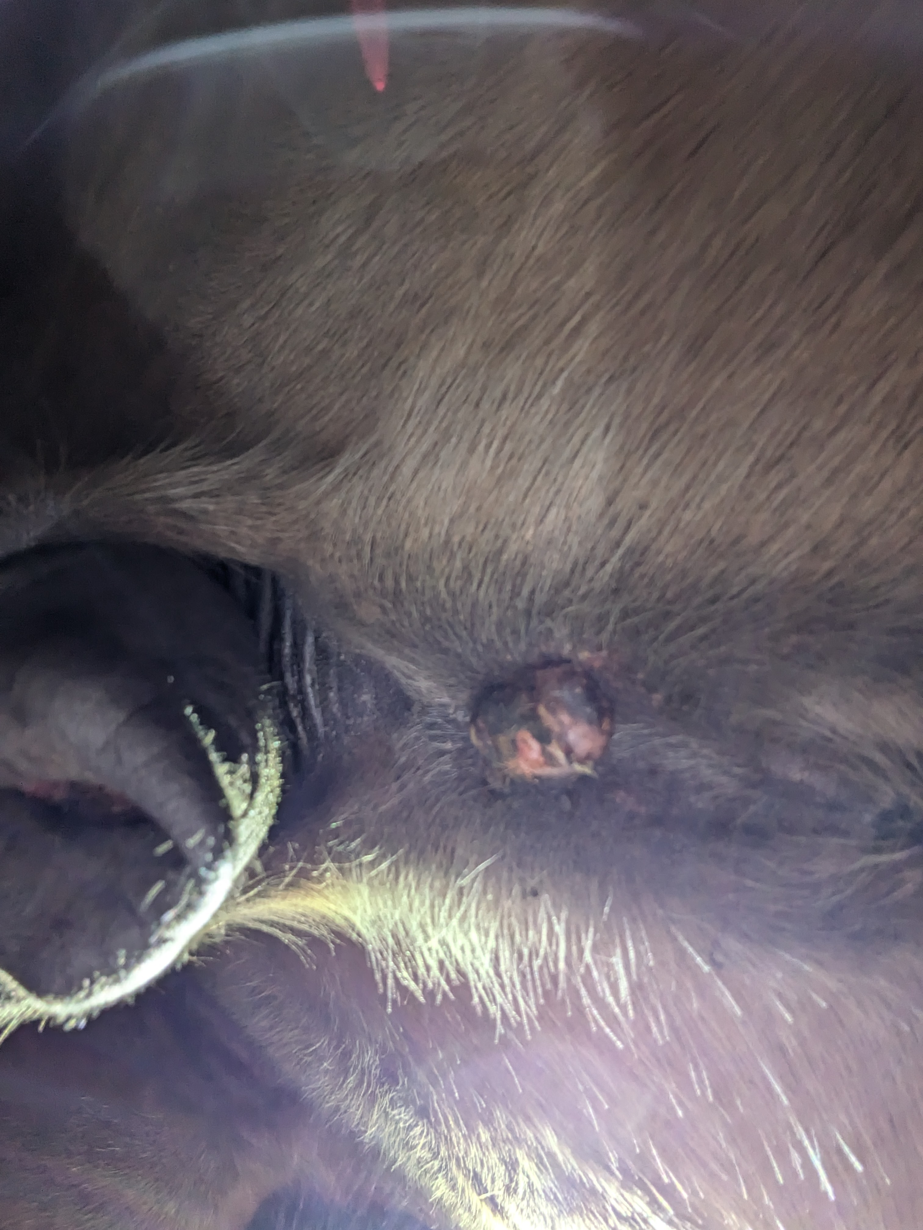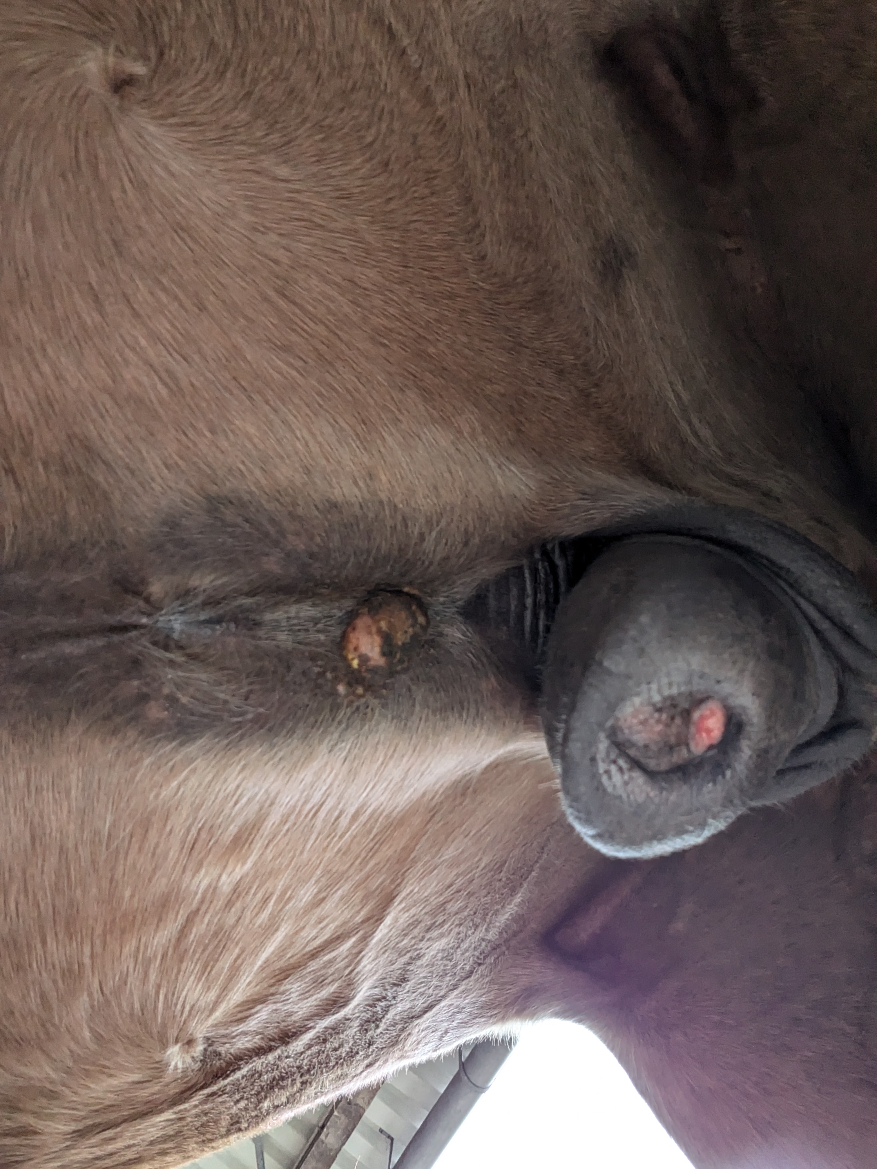 Und heute einen Riesenschreck bekommen - am Auge hat er was wie Grind, von gestern auf heute - kann eigentlich kein Sarkoide sein, oder ..