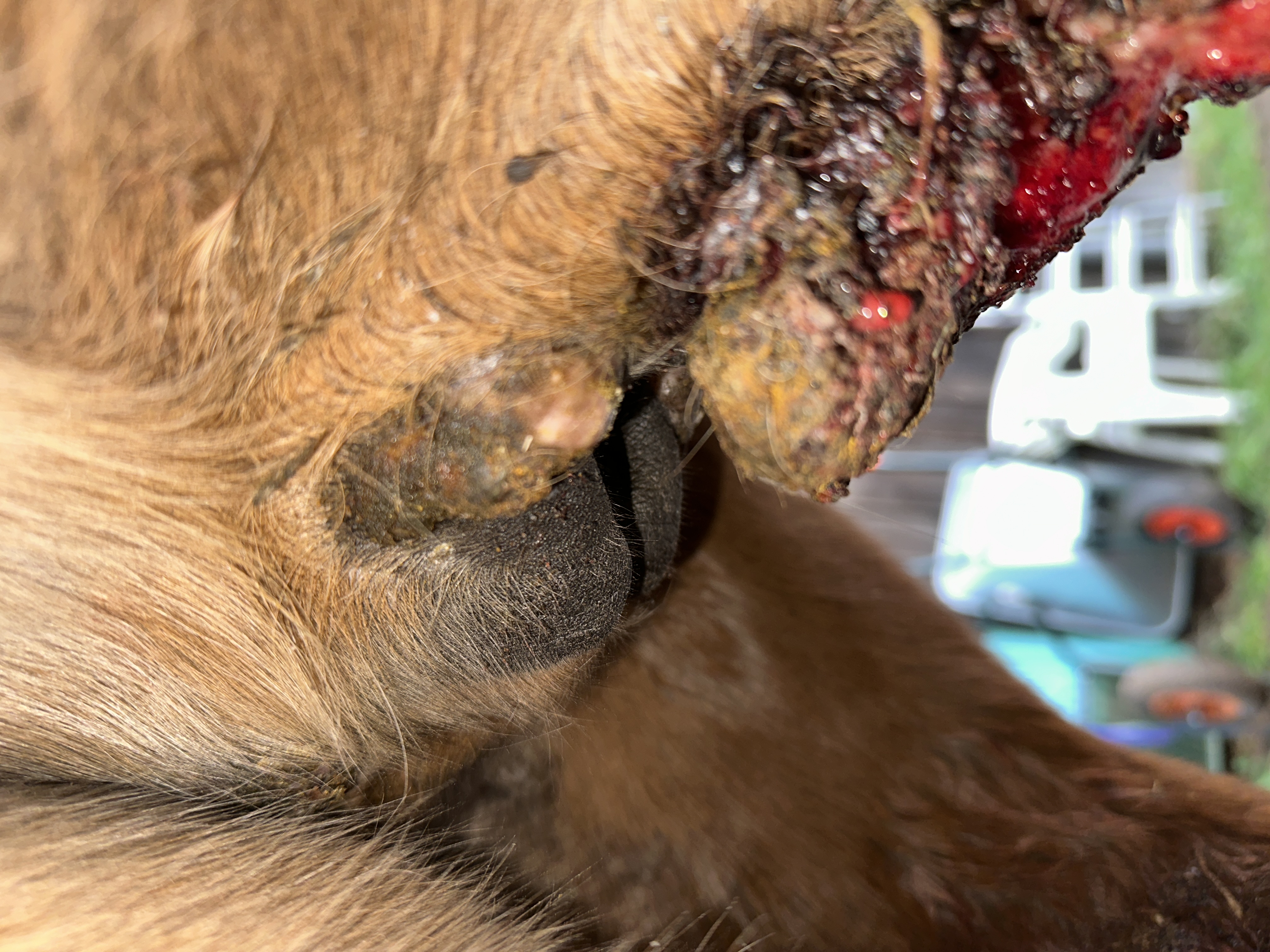 Hallo, es folgt ein Bilder Update. Ich habe noch wie vor ein gutes Gefühl. Ich denke das grosse Sarkoid hinten wird irgendwann abfallen. Beim grossen Sarkoid haben sicher mehr von diesen kleinen, runden Stellen gebildet.