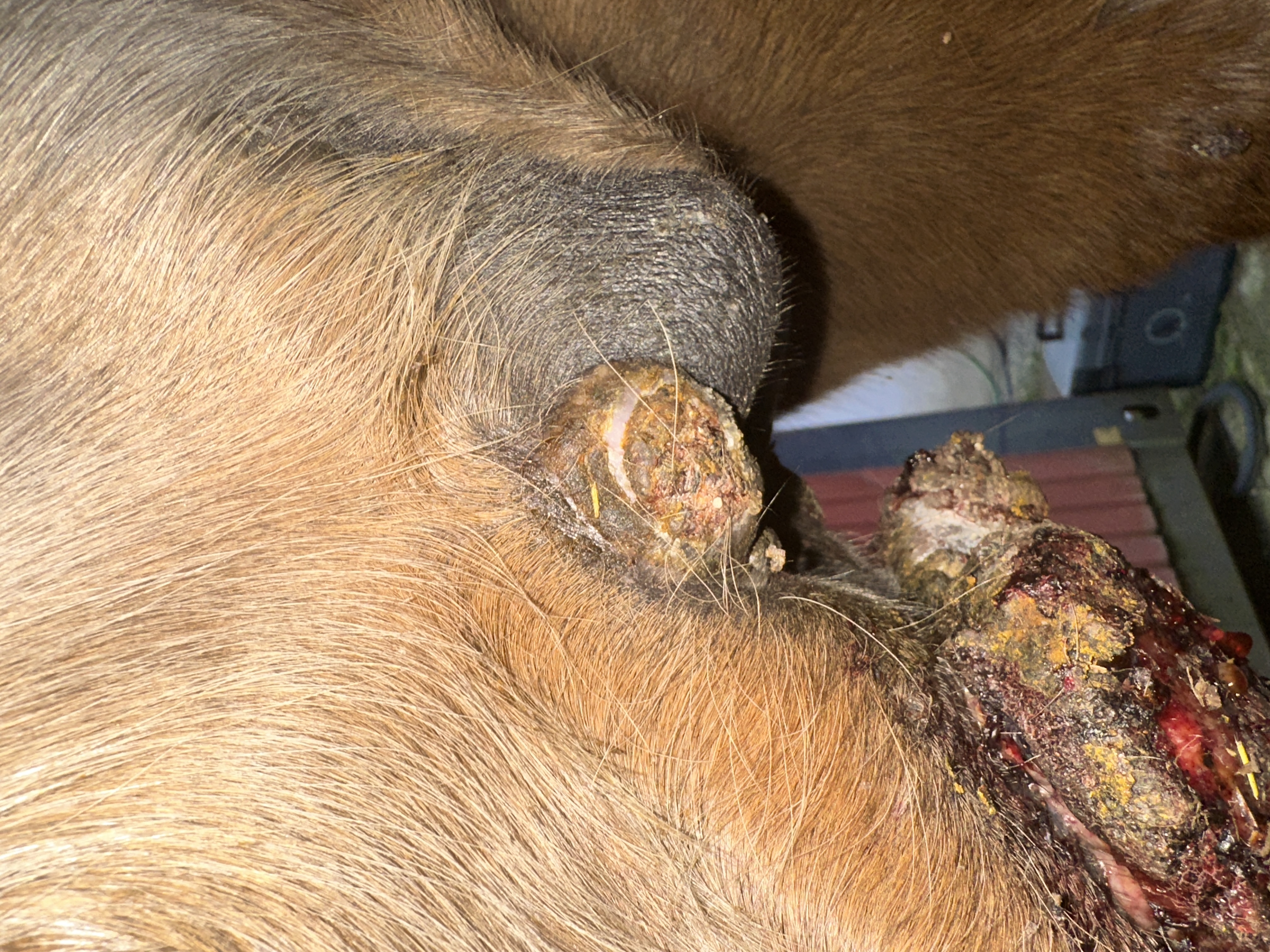 Wir werden am 7.1. mit der Tierklinik zusammensitzen und eine eventuelle Operation und weiter Vorgehensweise besprechen. Die OP müsste idealerweise noch im Winter stattfinden, wenn noch keine Fliegen da sind.