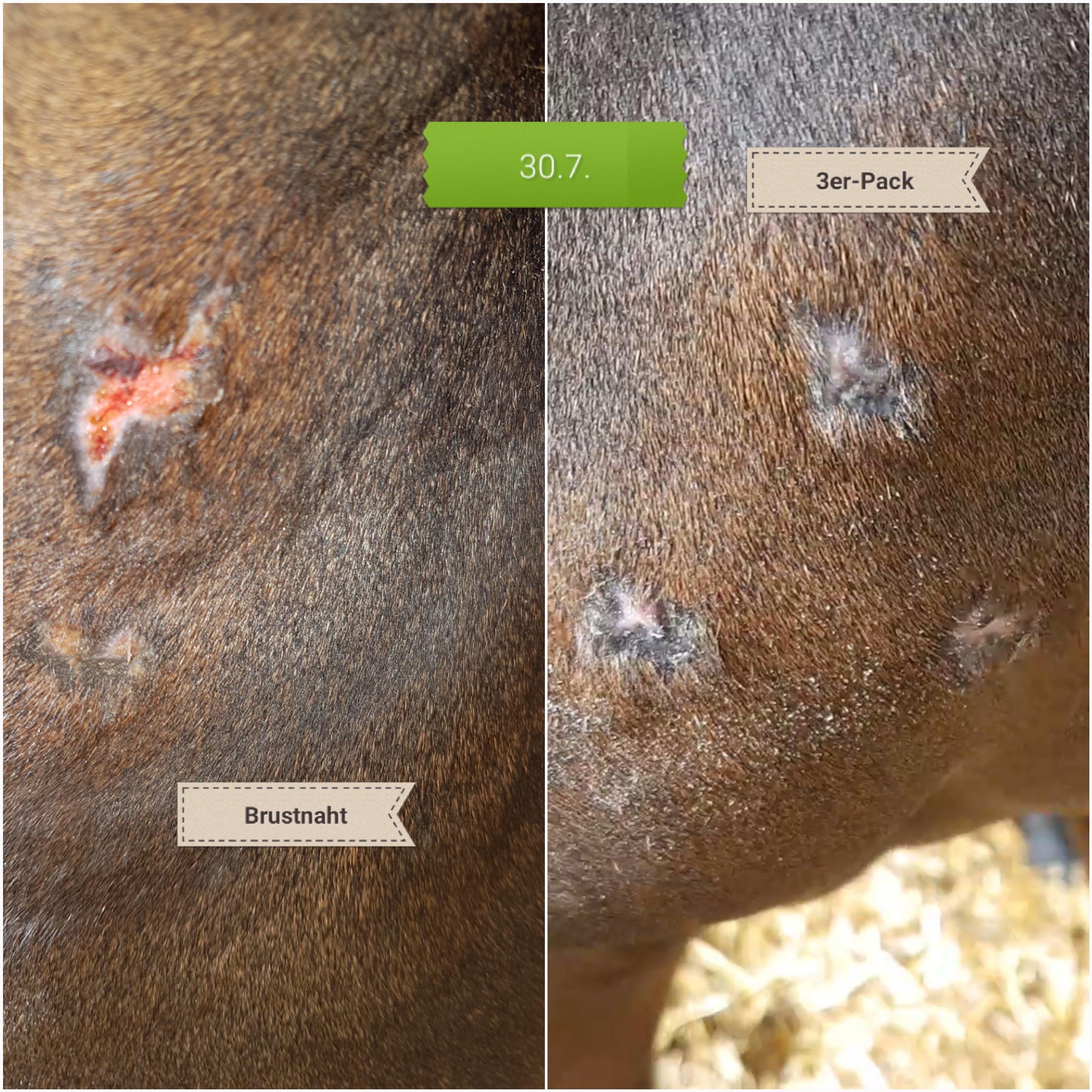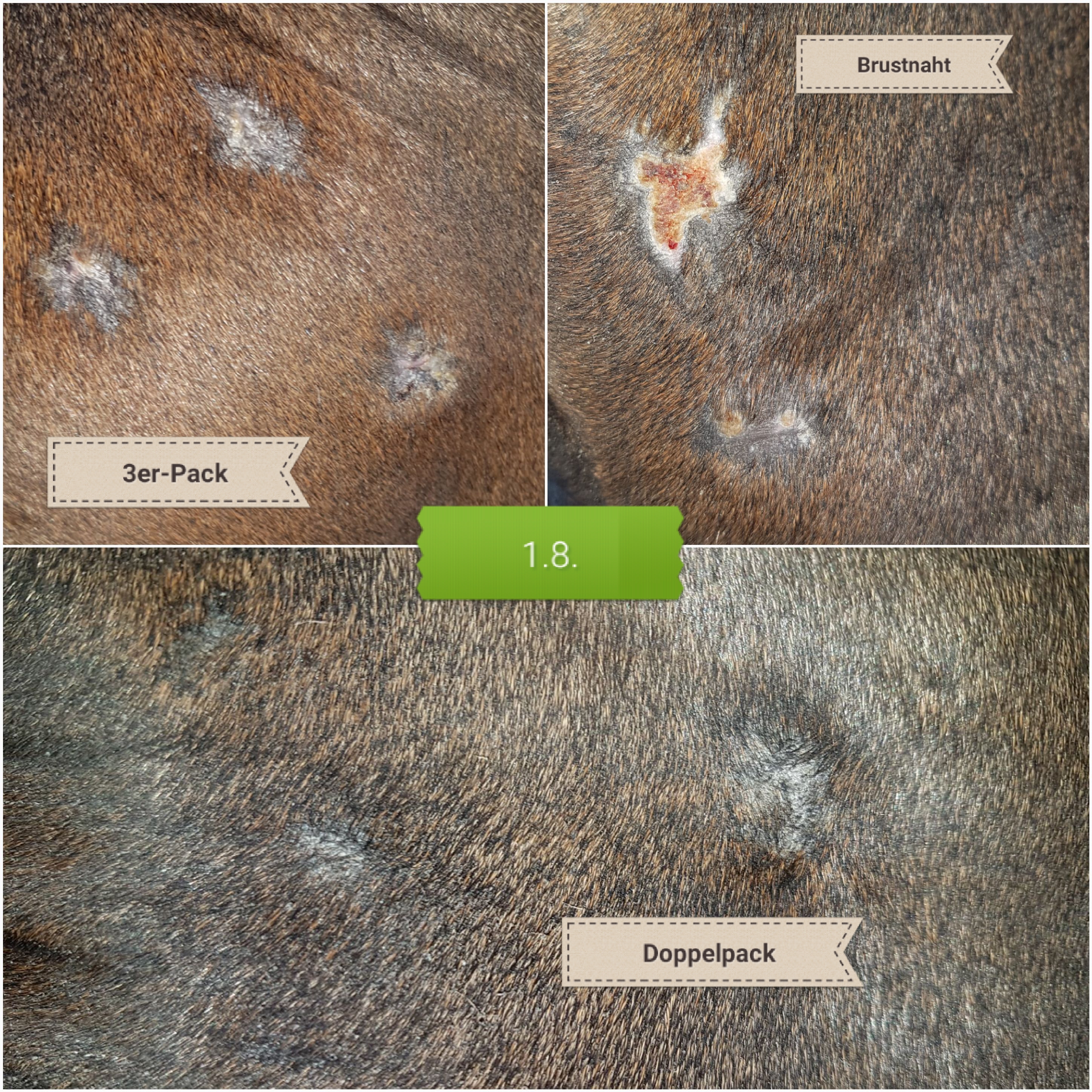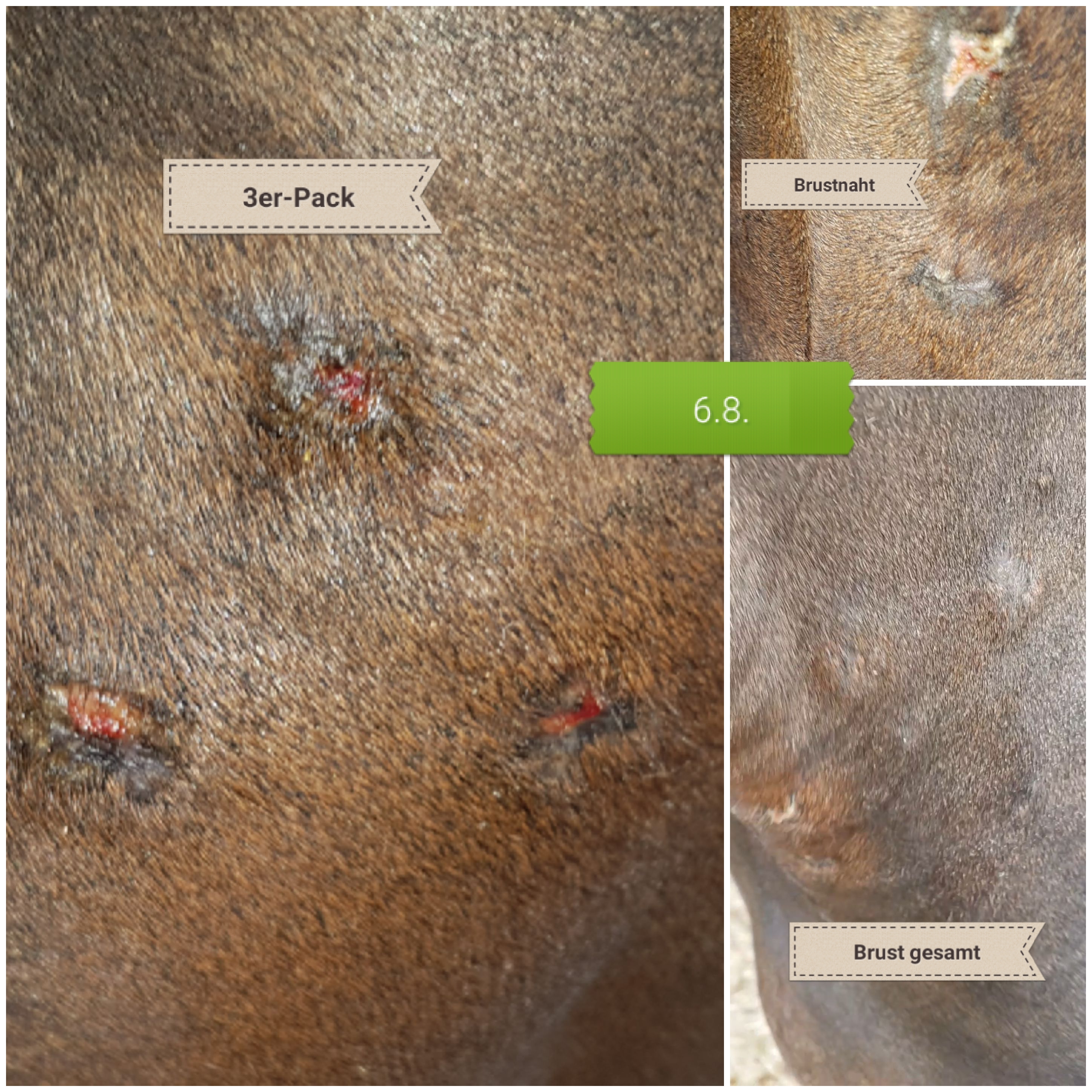 Stand heute: der 3er-Pack sieht etwas blutig aus. Die Fliegendecke hat die zarte, neue Haut "weggerubbelt".