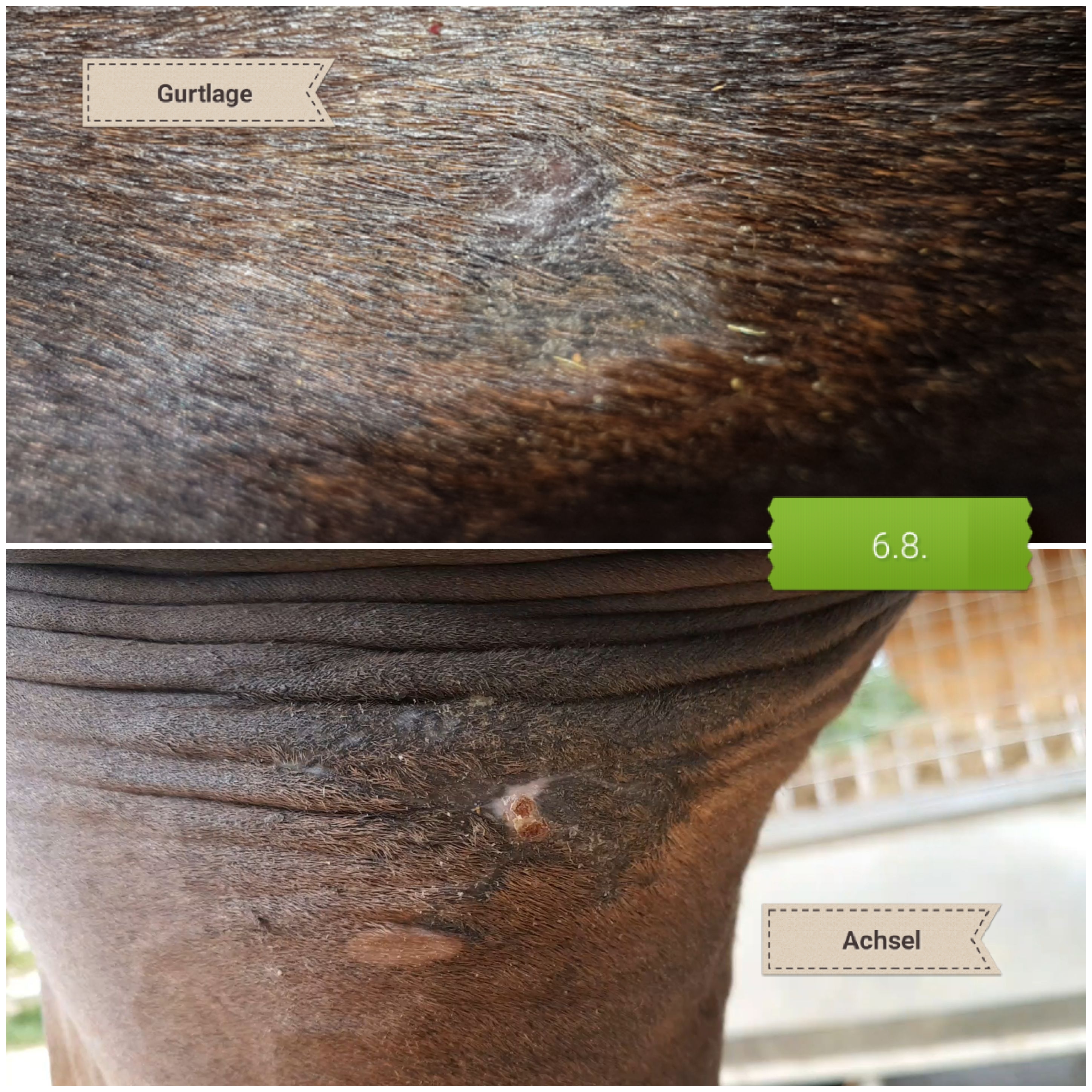 2-jährige Stute mit Sarkoiden in Gurtlage, Achsel u.a.Brust - Aciclovir jetzt CompX