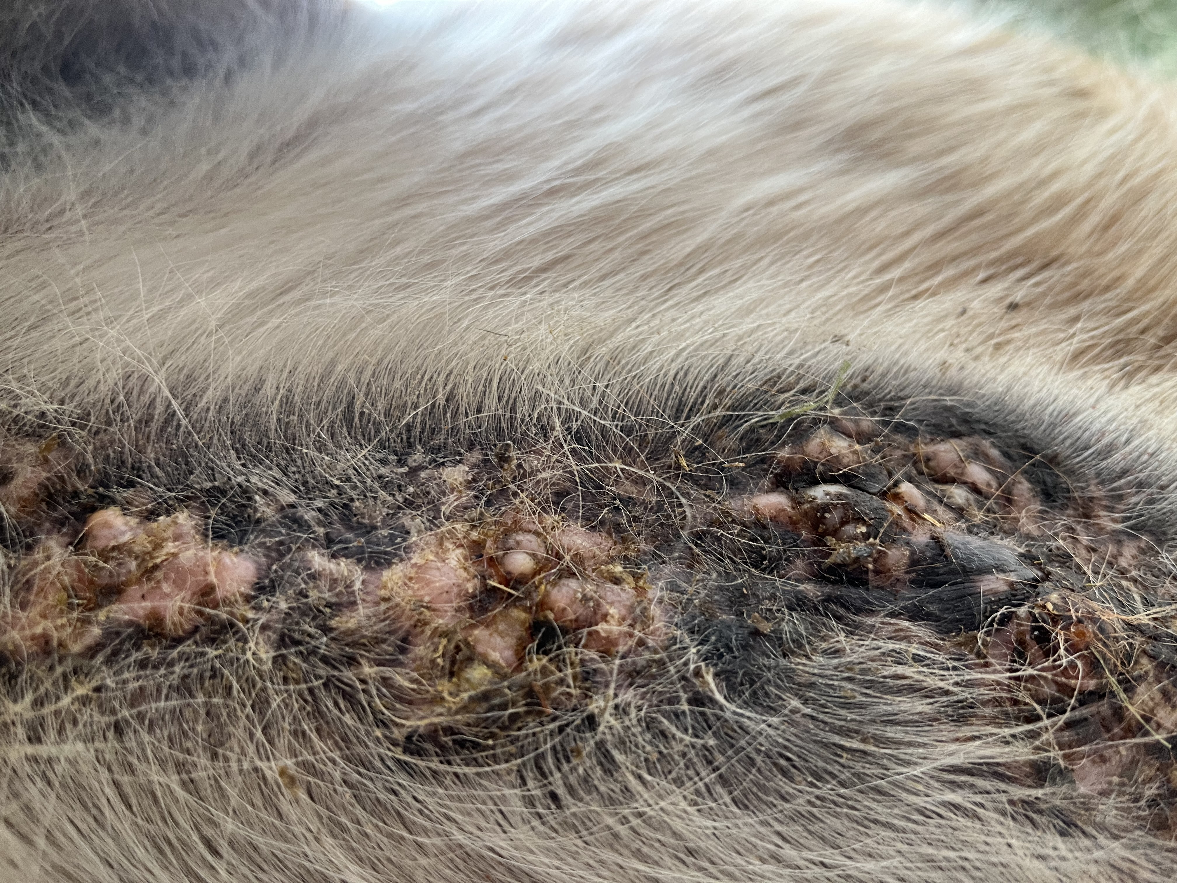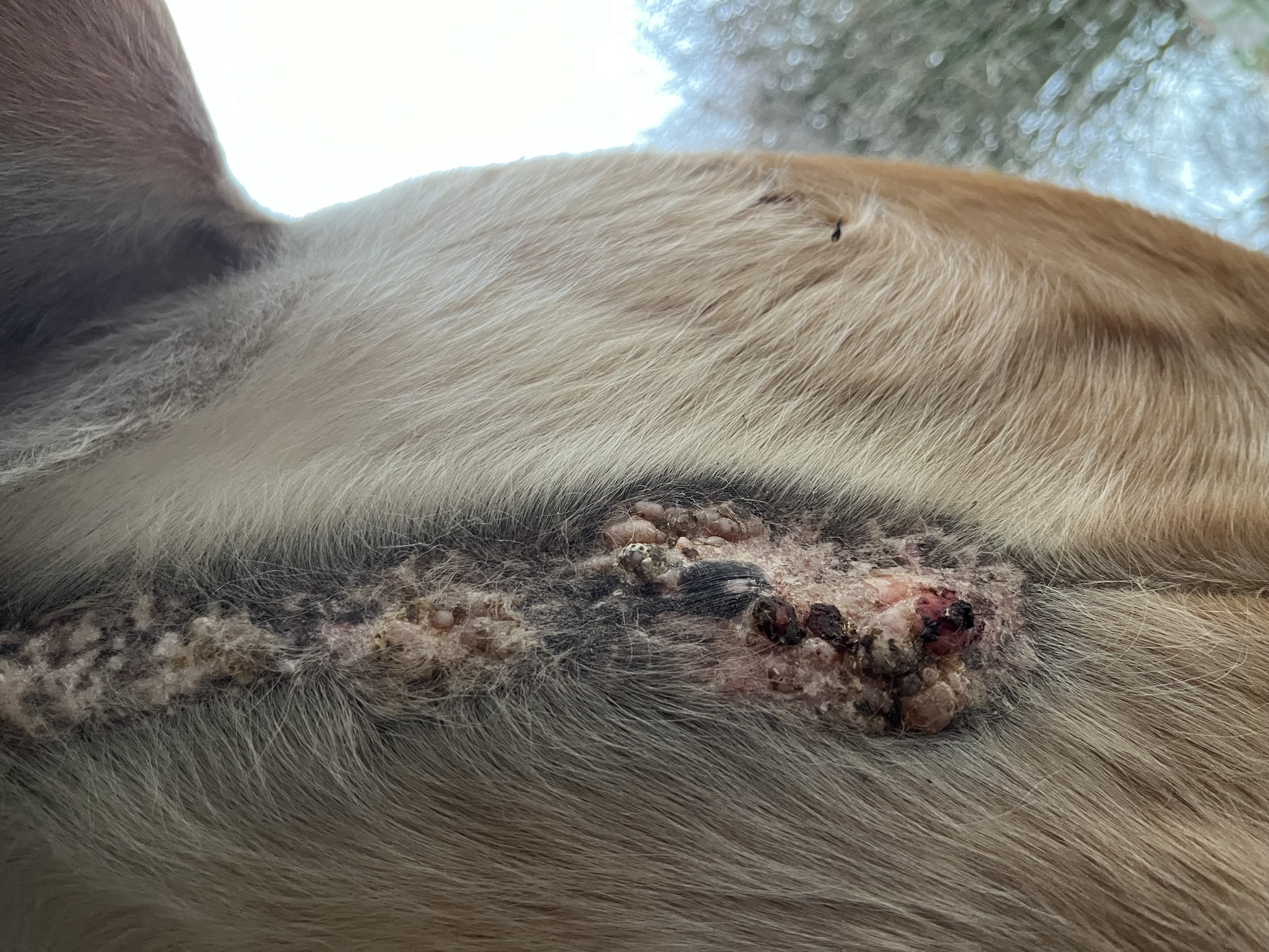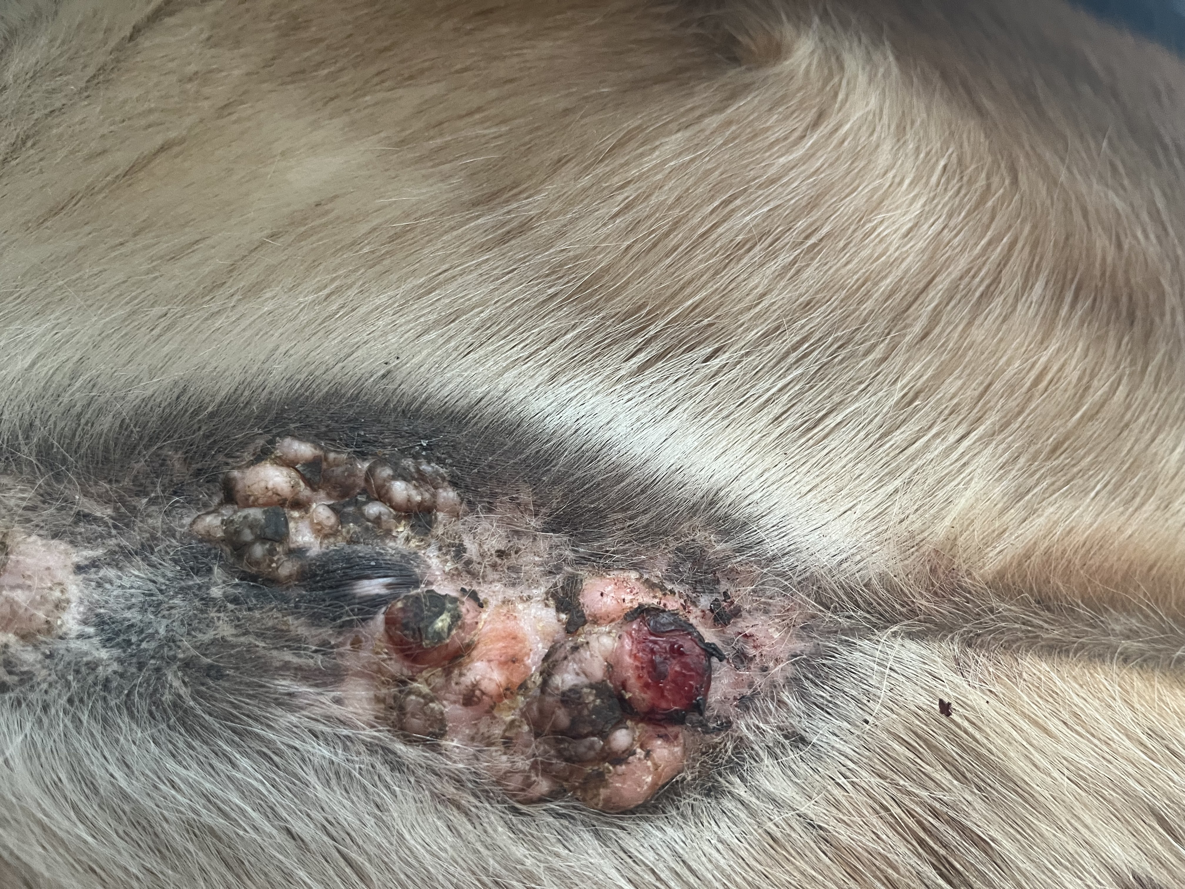 Der große Knubbel ist erst blutig geworden, jetzt ist er krustig und man kann theoretisch etwas unterfassen. So als ob sich an einer Seite etwas löst. Gut oder?